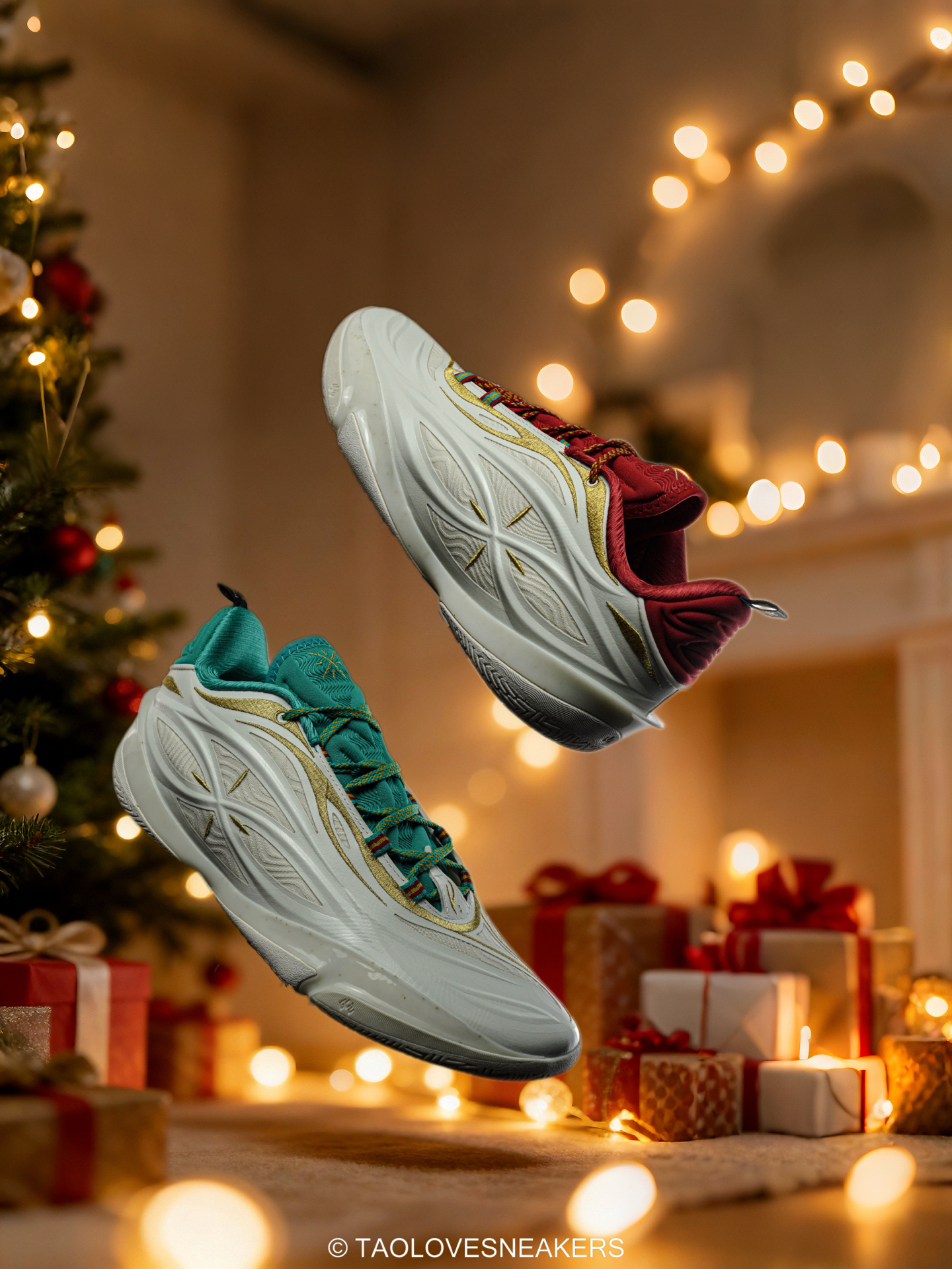 圣诞🎄马上到了,必须给自己安排一双节日战靴!这次我看中了这双李宁的808 5 Ultra V2的圣诞配色。 外观是淡雅的奶白色,配上红绿鸳鸯设计+金色细节点缀,个人感觉圣诞氛围直接拉满!鞋楦我觉得正常脚和瘦脚按平时码选就行。 我觉得上脚的第一感受是,中底真的很弹,䨻科技加持下启动响应也快,场地感挺清晰。V2版本的包裹我觉得比之前更贴合,适合秋冬穿。 大家都准备穿哪双鞋过圣诞呀? #2025得物...