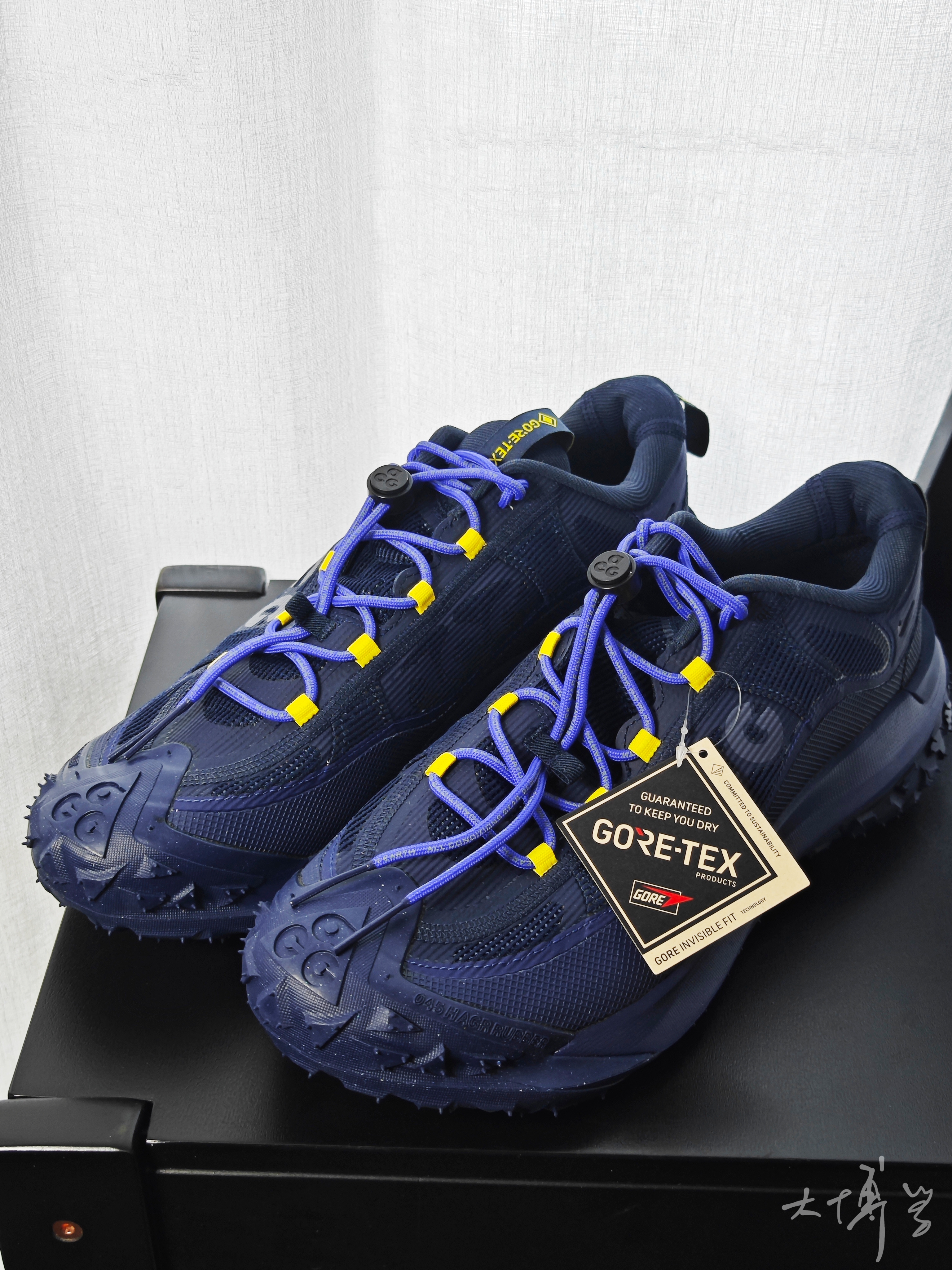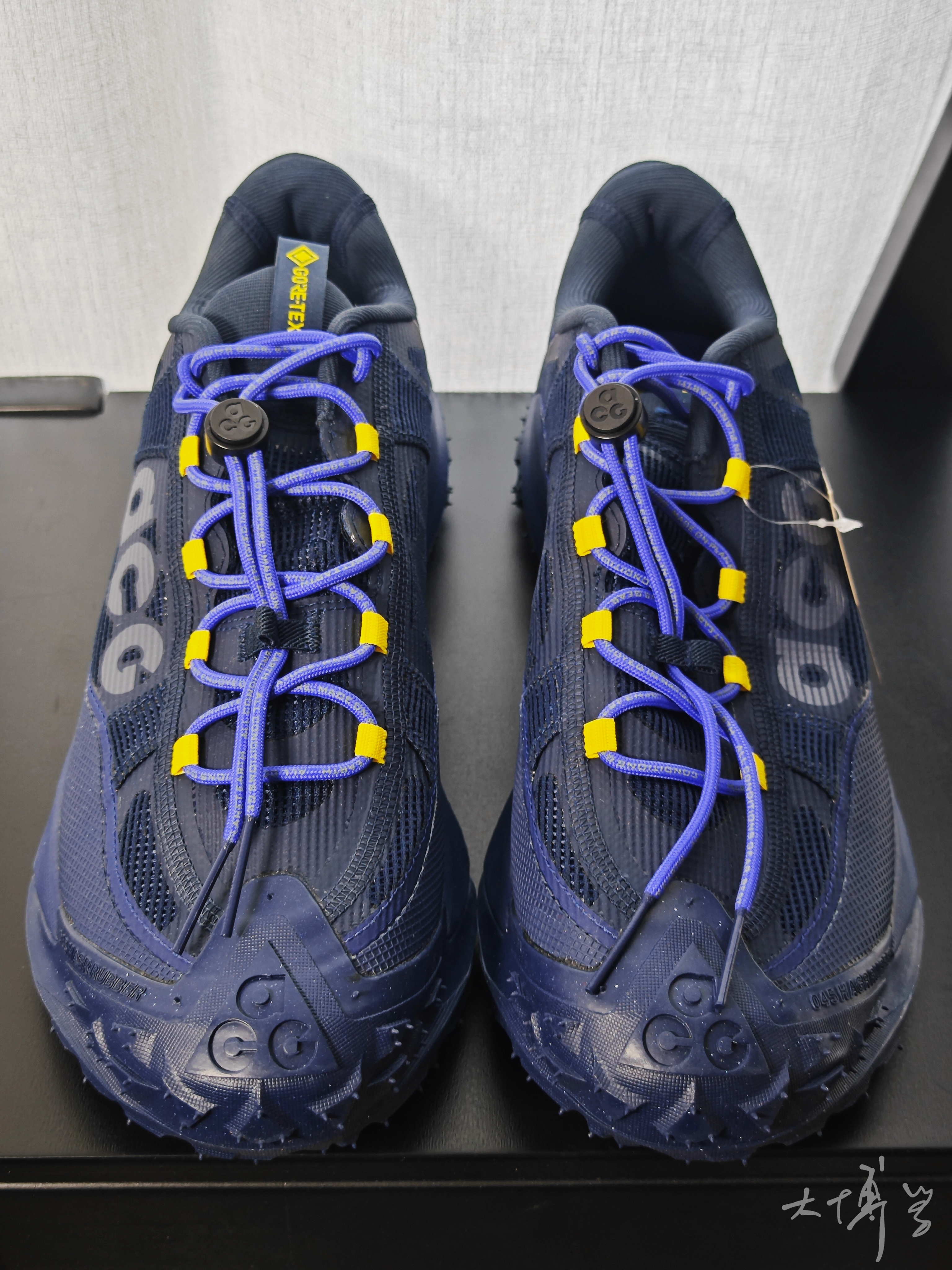 这个acg mountain fly 已经出了两代 初代我就很喜欢 高帮低帮都买过 隐藏式的鞋带和越野大颗粒的外底 给我留下很深的印象 而且还有gtx面料和普通面料两种款式 这双是2代的低帮的gtx版本 同样是大颗粒的外底设计 满足户外徒步或者越野跑步