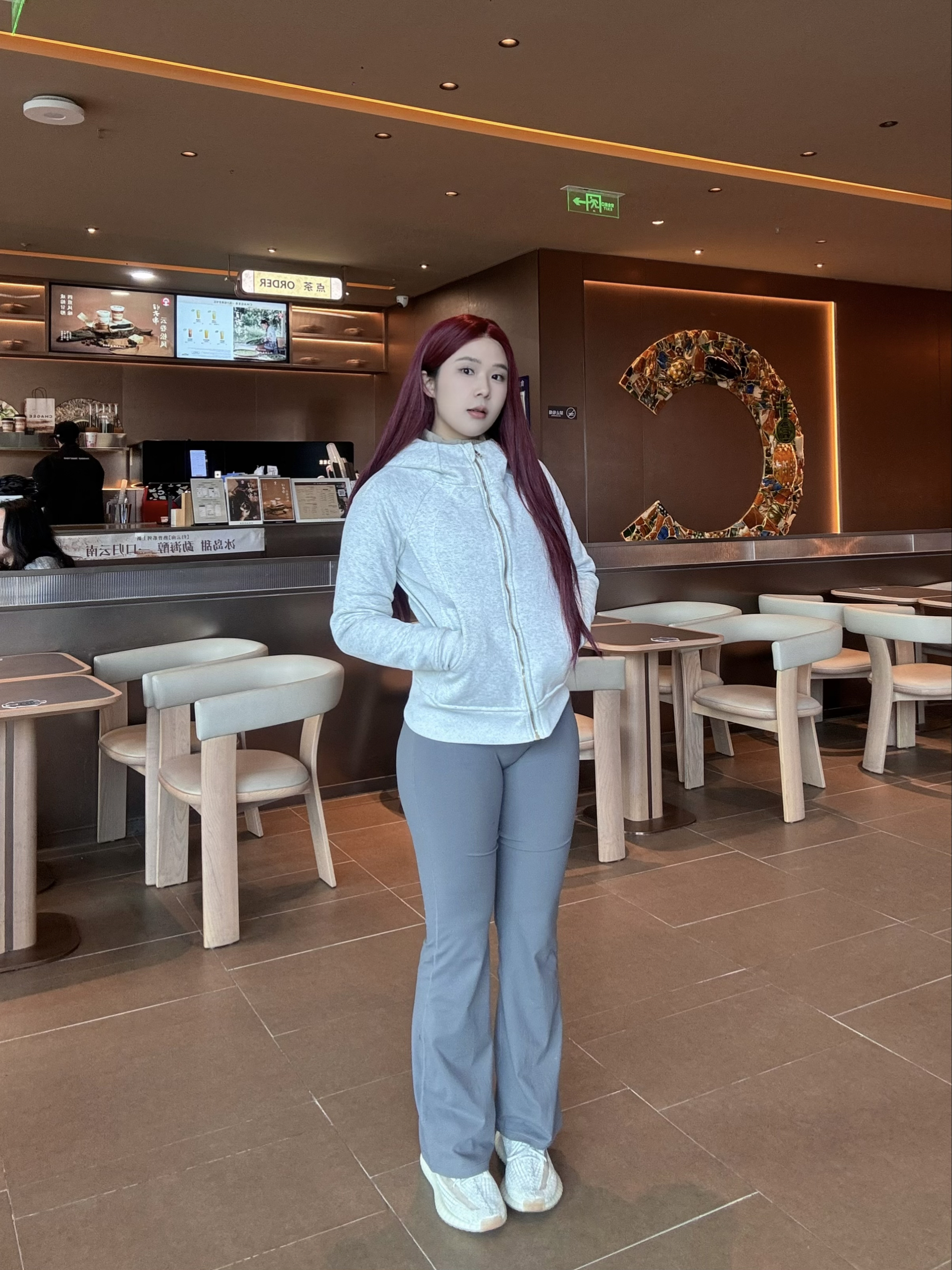 冬日运动穿搭 既要舒适也要保暖 lulu修身上衣搭配阔腿瑜伽 再来一双yeezy350 舒适轻便 出门运动了!