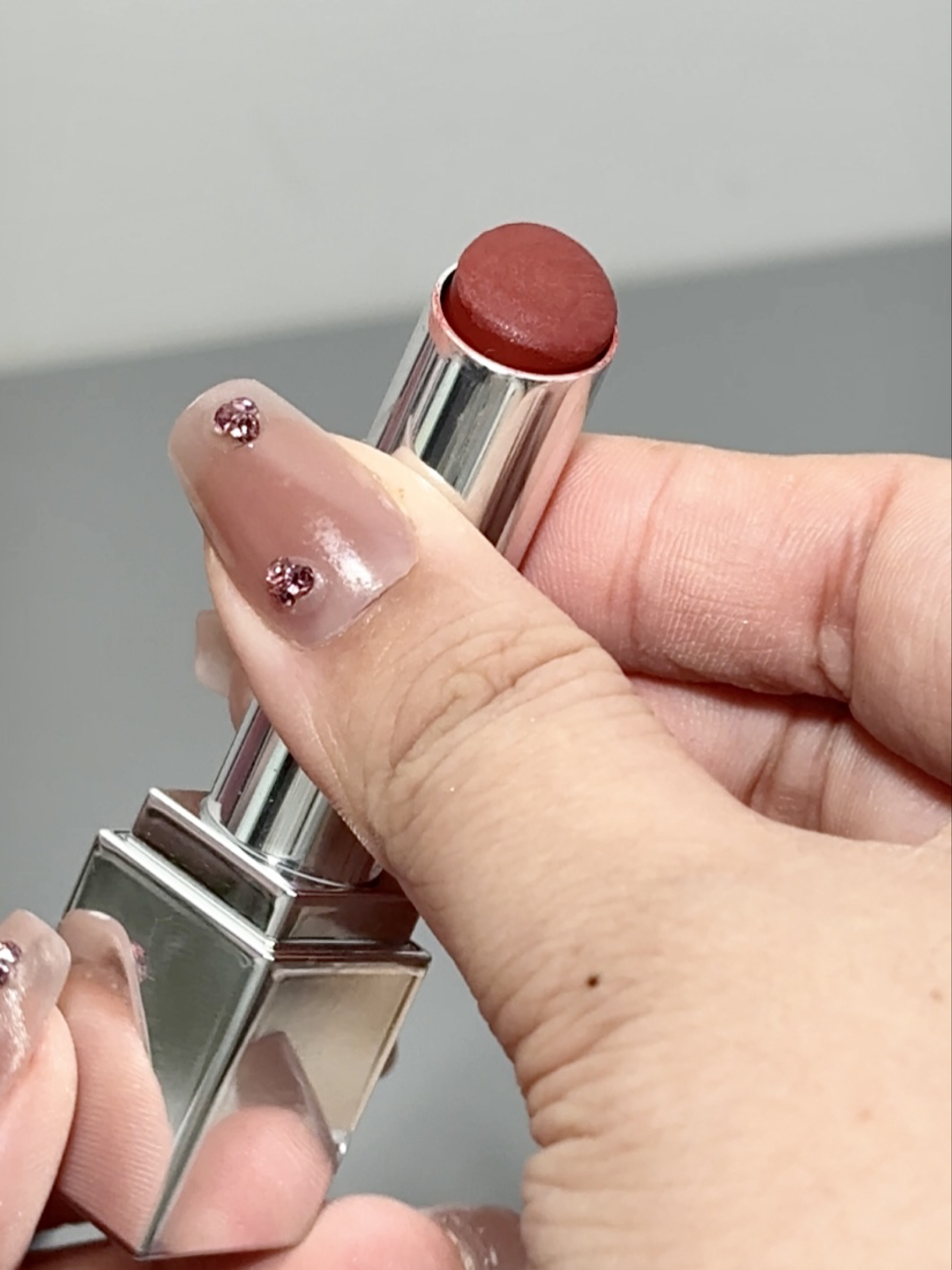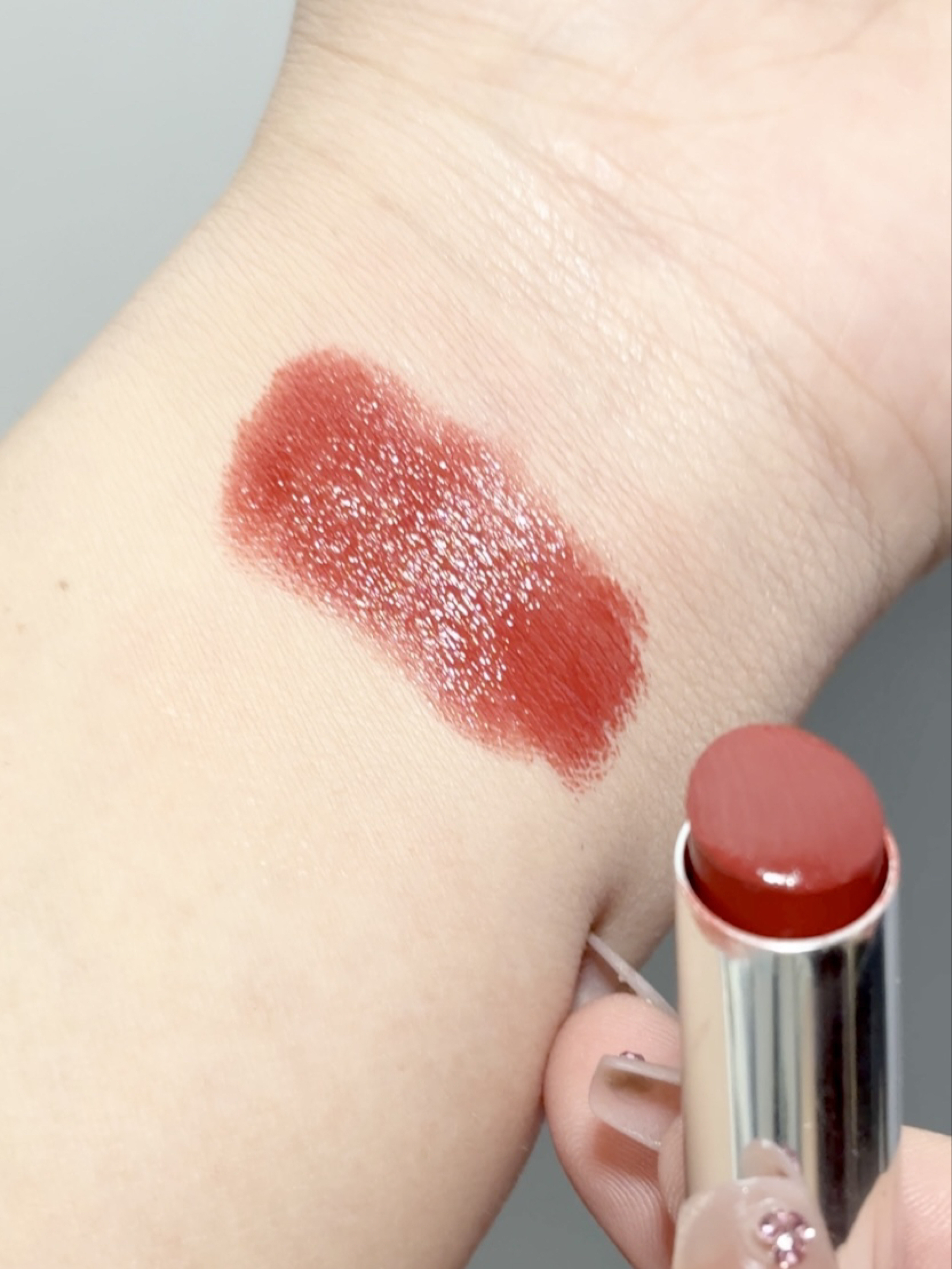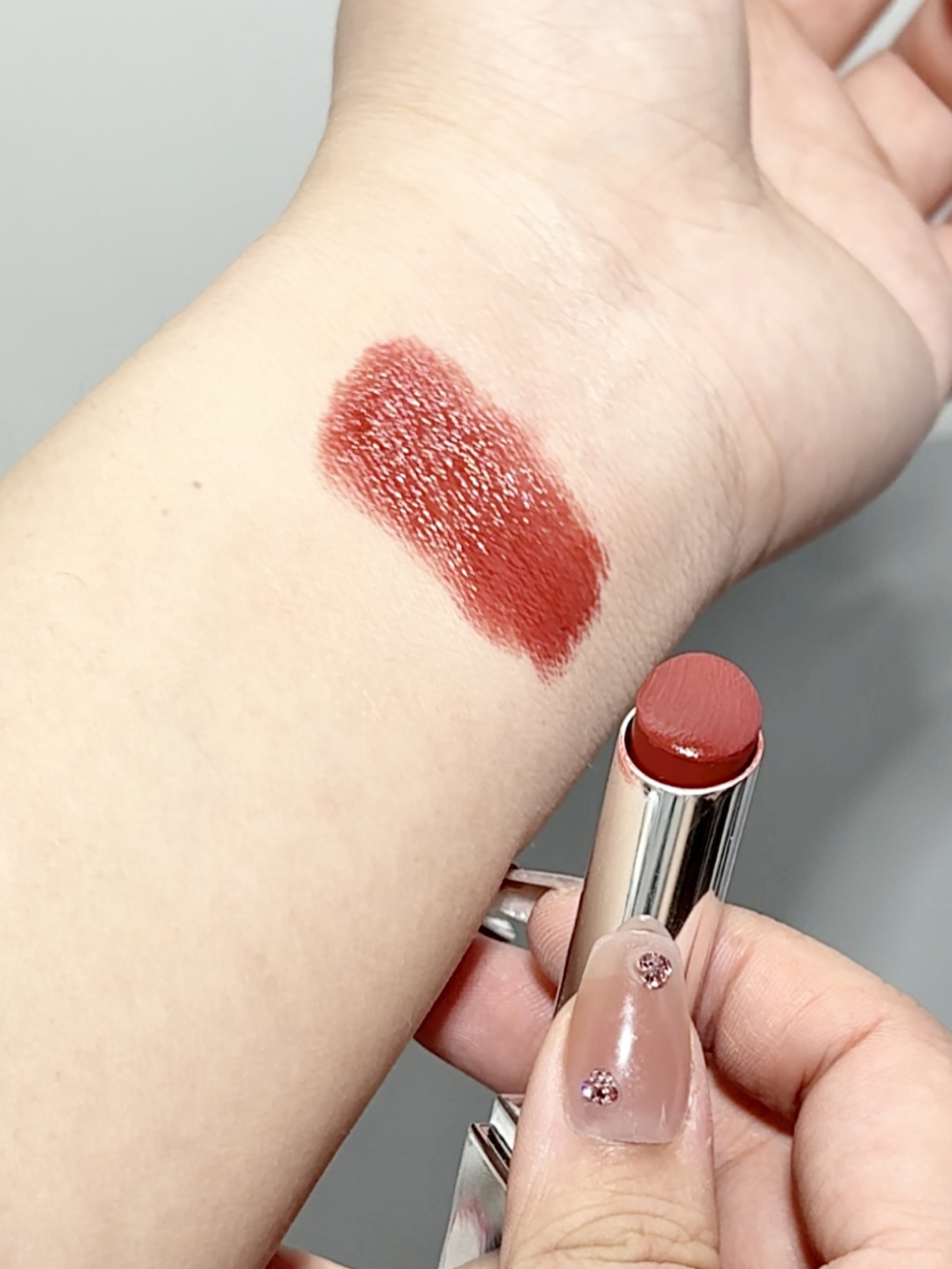 完美日记这支红棕调口红直接戳中秋冬的心巴🍂 银黑拼接的外壳质感拉满,拿在手里超有分量。质地是润润的镜面感,上嘴像涂了护唇膏一样,一点不拔干,成膜后还有嘟嘟的玻璃唇效果。 颜色是超正的红棕调,薄涂是温柔的焦糖红茶,厚涂是浓郁的复古红棕,黄皮涂巨显白,素颜也能驾驭,秋冬配大衣、毛衣都超有氛围感