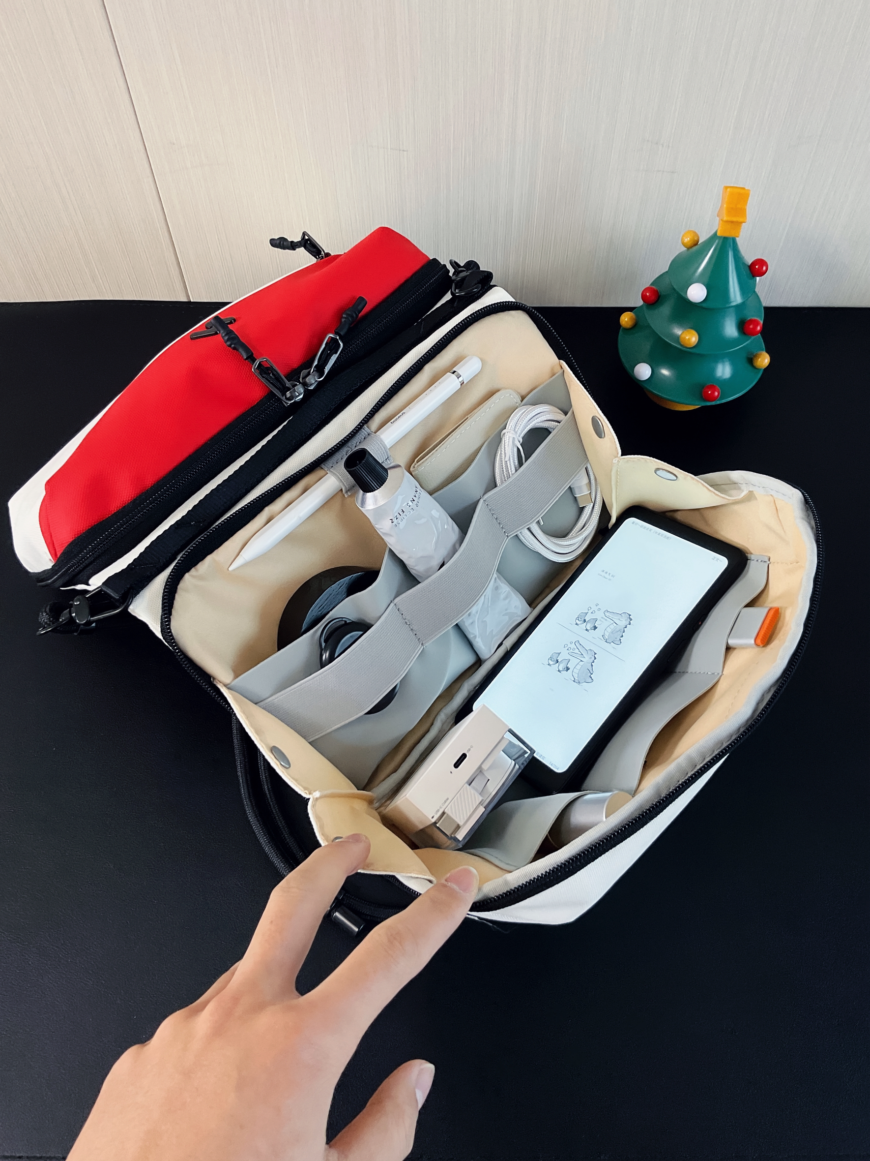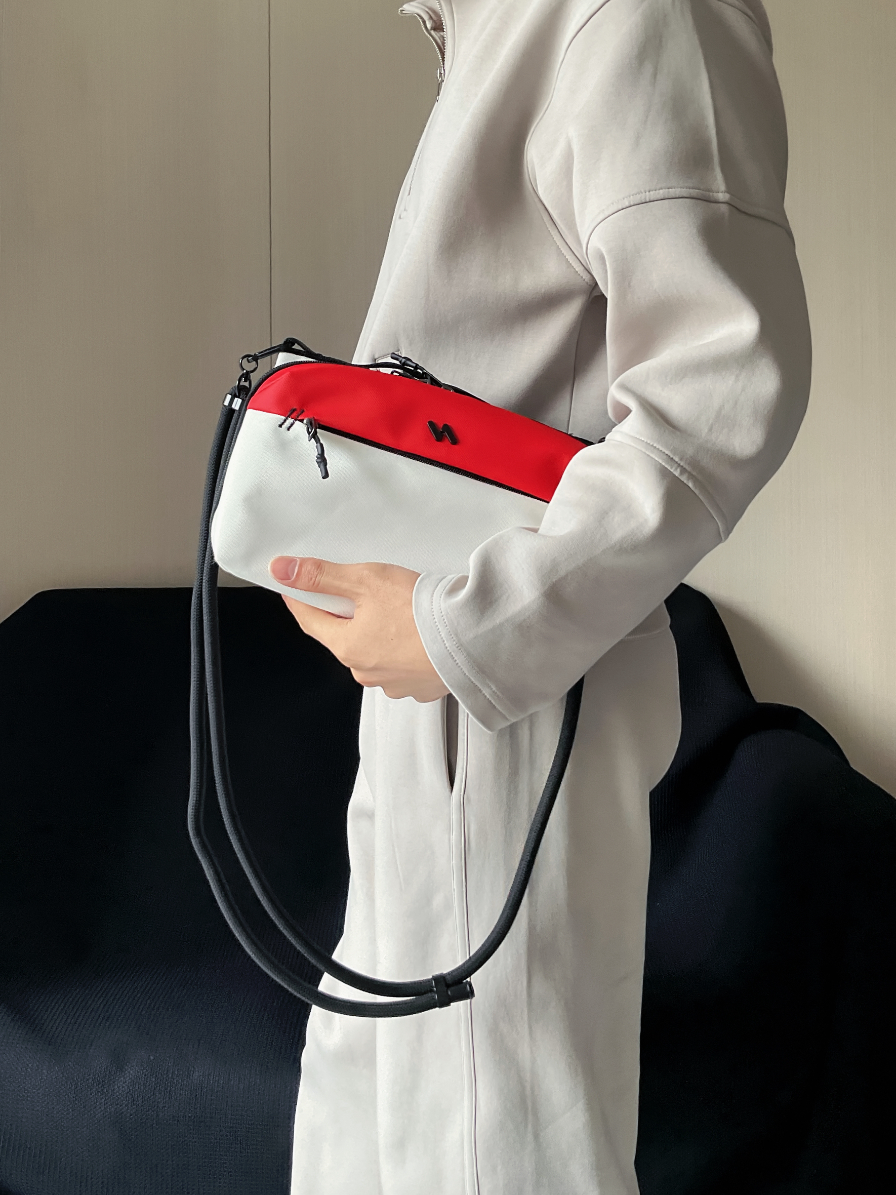 冬天出门,真的不想再背大包小包啦! 这两天一直背这个轻便小巧的斜挎包 通勤物品轻 松装下! 极简红白配色为沉闷的冬天增添一份活力感~ 力挺的包型,不易变形,背上身真的有型! 别看他身材小,肚量却超大! 内部多个收纳分区,物品整齐摆放不凌乱~ 大开口的设计,拿取物品也比较方便。 每天早上抓起它就能出门 那种一 切尽在掌握的从容感真的能给一整天的工作开个好头啊