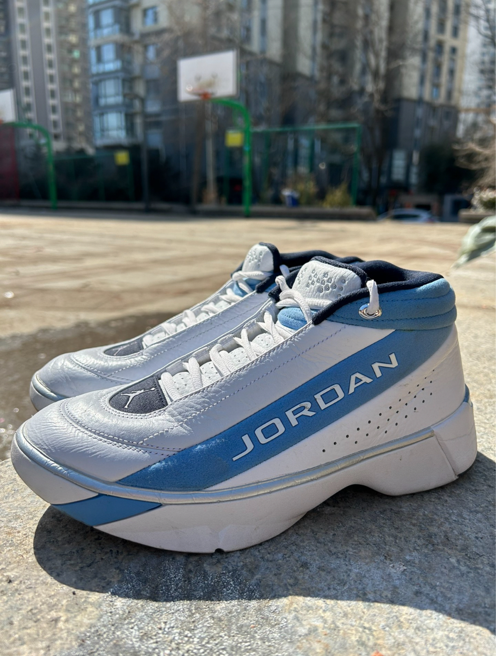 今天与大家分享上脚的球鞋是Jumpman Team Showcase白北卡蓝,这双鞋是在前几年复刻回归的一款Jordan Brand的经典Team篮球鞋,目前这双鞋压马路为主实战为辅,今天的测试场地是室外水泥地。 外观设计: 第一眼就能看出这双鞋是明显的千禧年左右的篮球鞋设计,做工扎实的皮质鞋面,以AJ15为设计灵感,当年流行的MP3播放键元素以及鞋身的字母线条设计很有速度感,虽然对比如今的球鞋鞋...