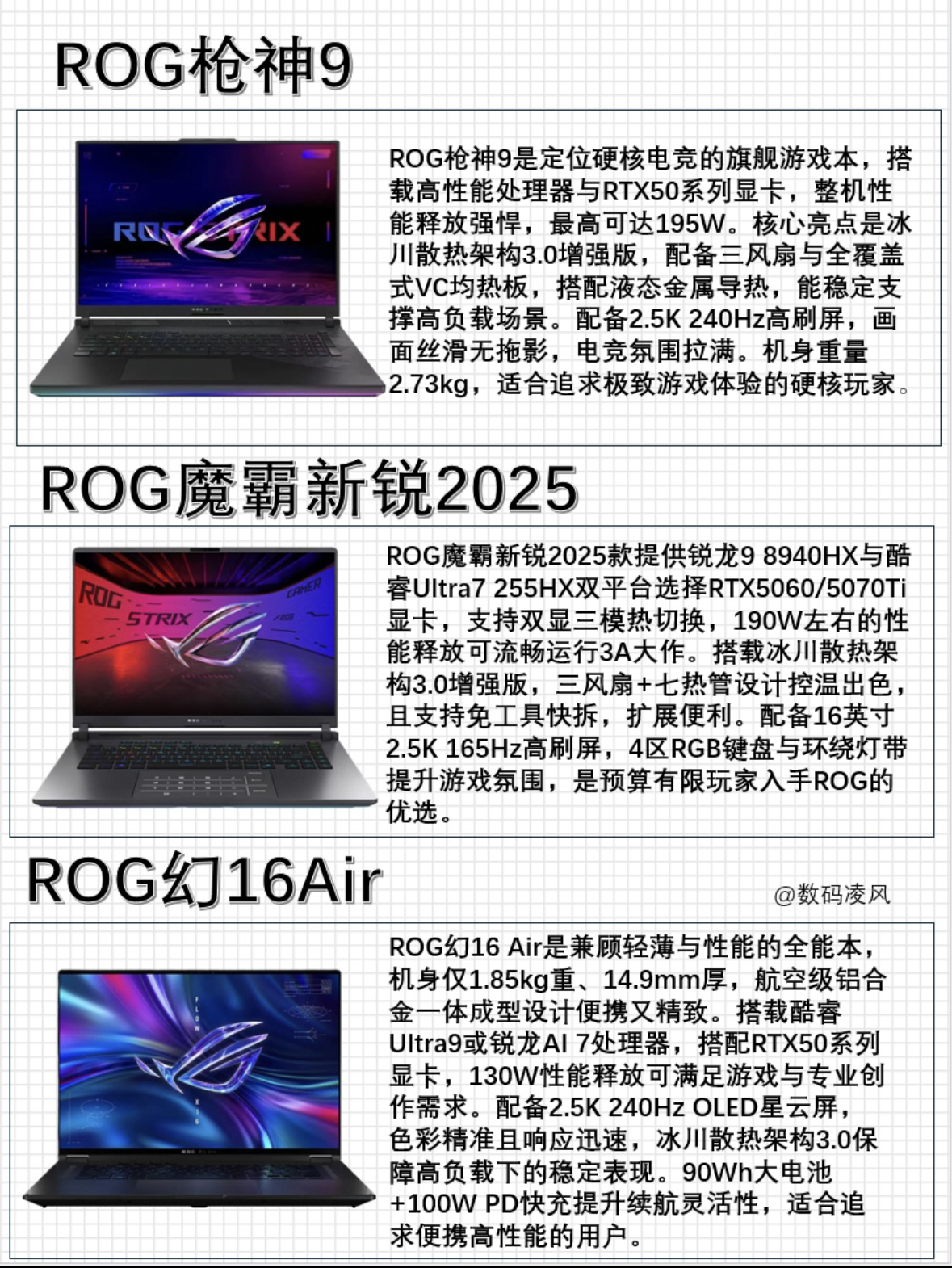 大家好我是数码凌风,今天继续来给大家整理ROG笔记本电脑的选购指南🧭 ROG作为高端笔记本的代名词适合那些预算充足,重度游戏,看中性能与品质的小伙伴。但是还是有许多小伙伴不知道ROG各个系列的游戏本哪款适合自己❓那么我们废话不多说直接看图文💪 希望本期选购指南可以帮助到大家🥰感谢大家支持