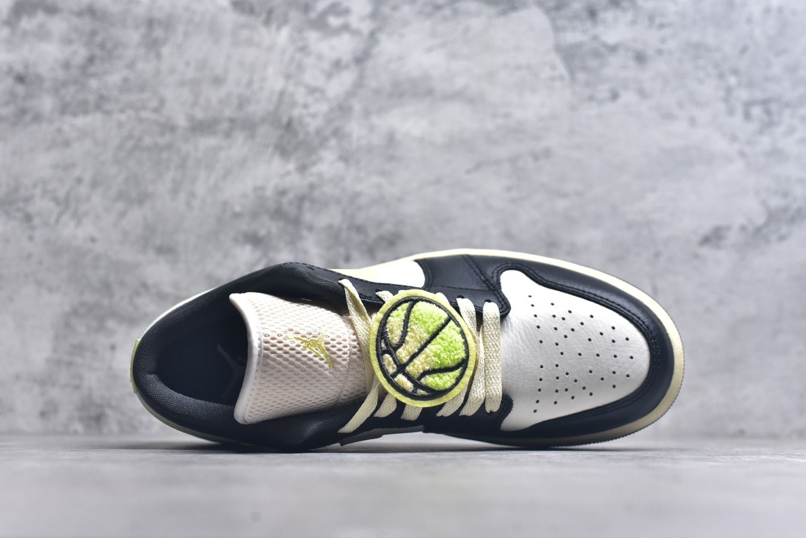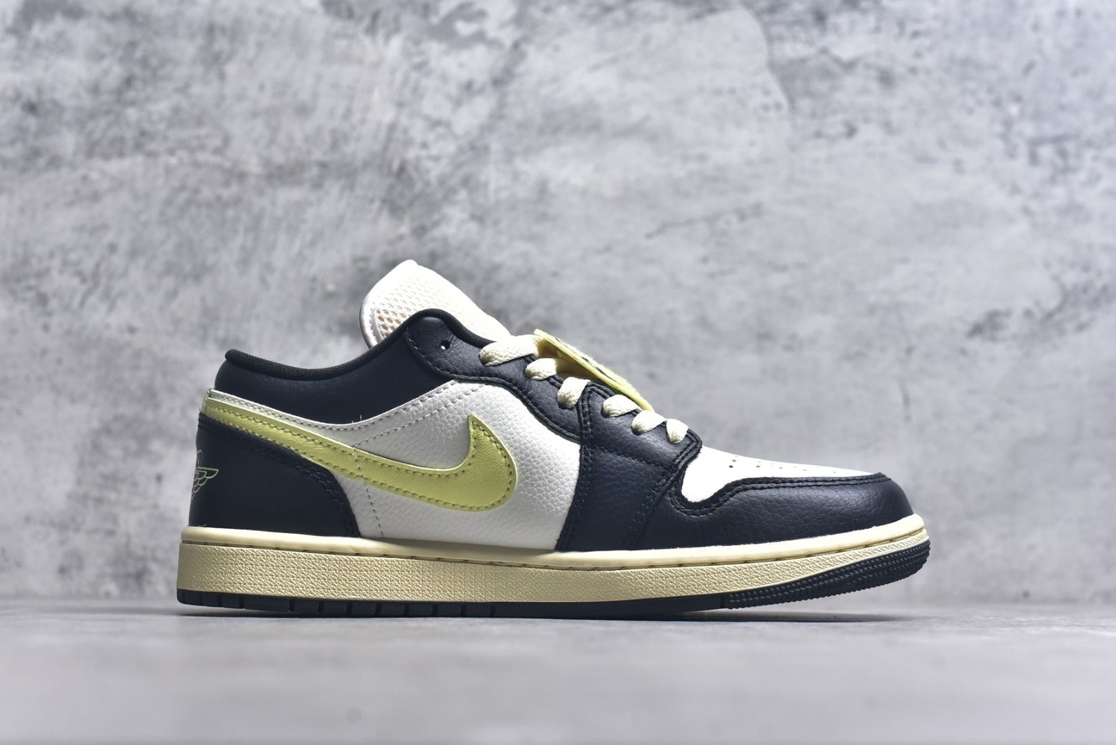 黑白皮革拼接勾勒经典鞋型,奶油黄Swoosh与做旧中底揉入复古质感,鞋身的篮球挂饰更是点睛之笔。AJ1 Low 这双奶油黑黄配色,把复古氛围和细节巧思拿捏得死死的,上脚自带随性腔调,日常搭配也超百搭~