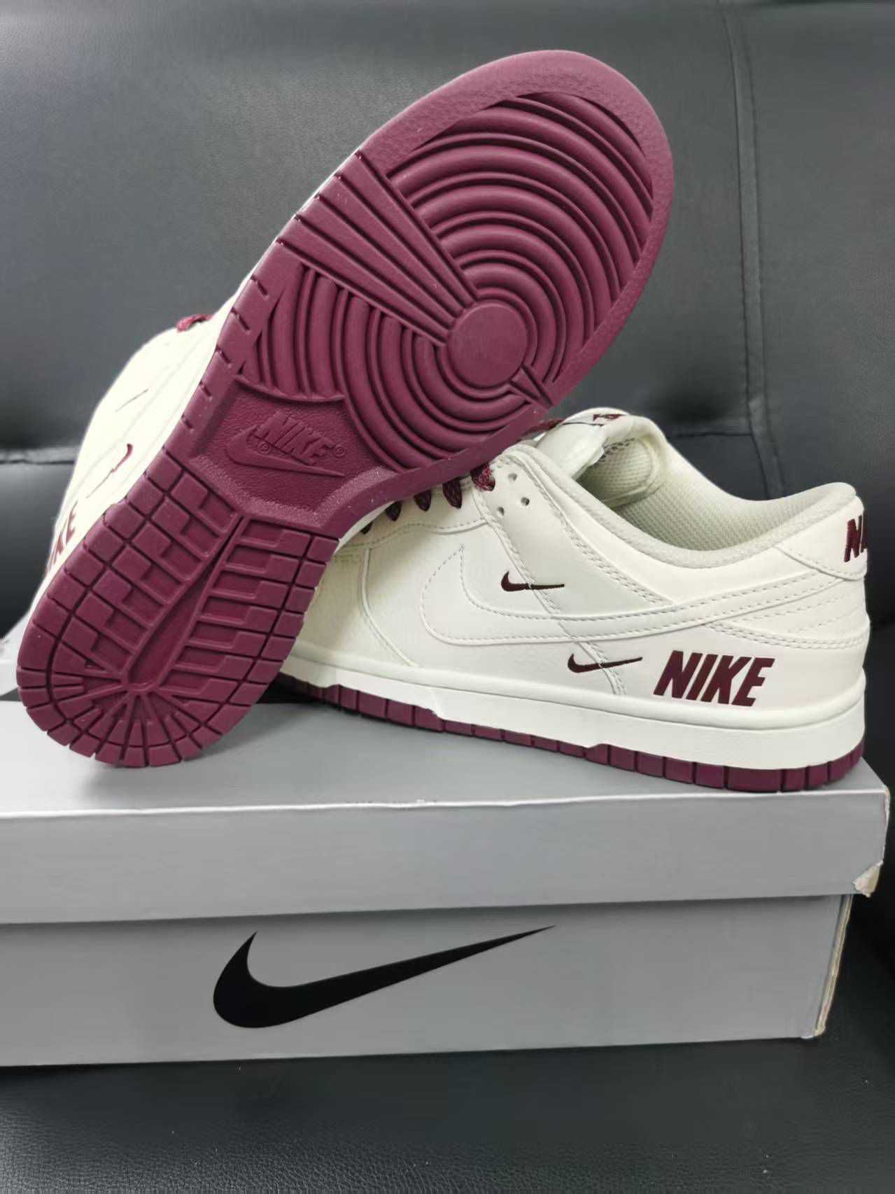 真心觉得这双AF1超赞!和常见的酒红小勾款完全不同,灰色鞋底让鞋子更有格调,双层钩子设计超有细节感,而且耐脏,再也不怕穿酒红鞋弄脏了