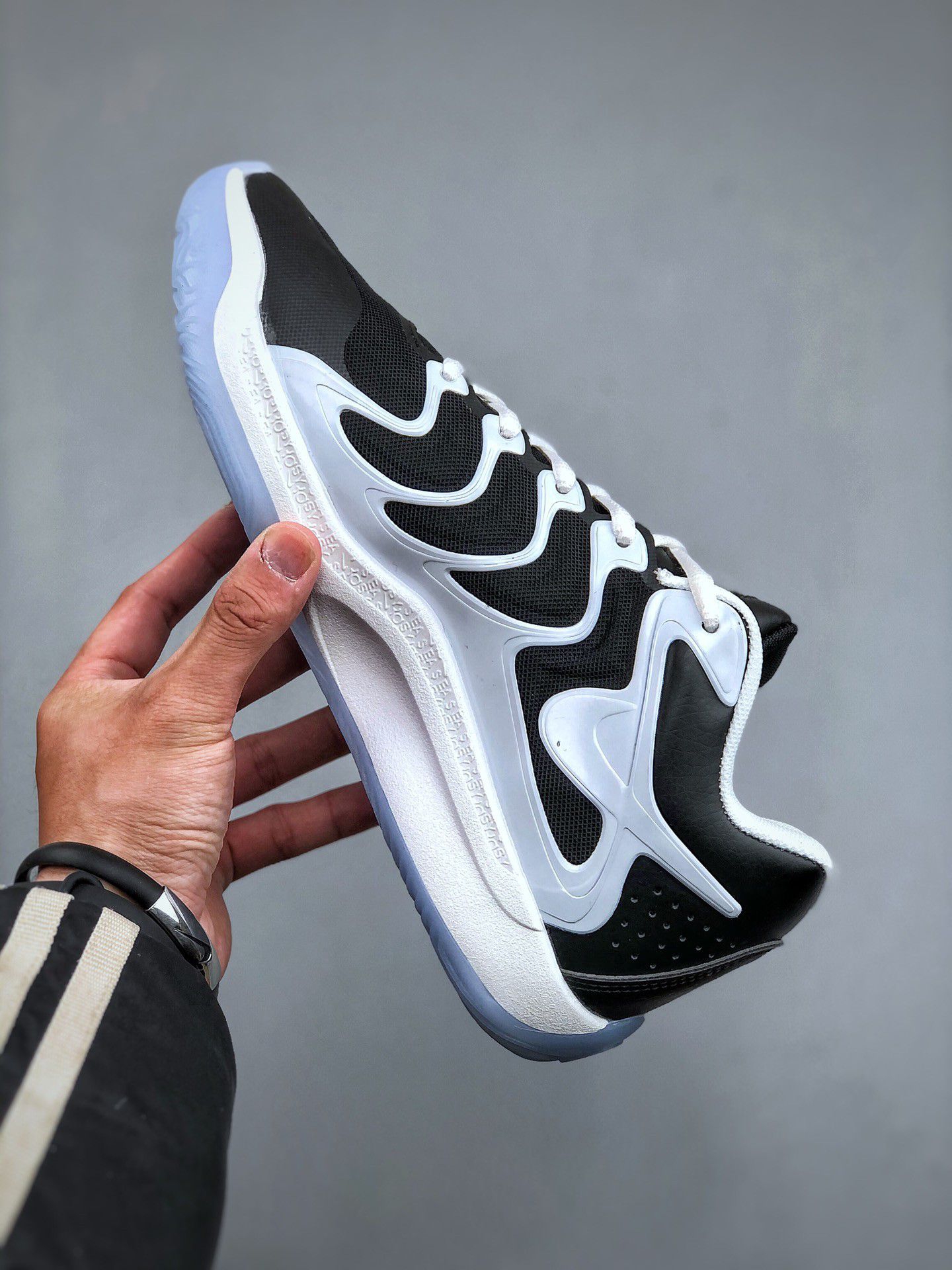 **专业测评|这双黑白银灰配运动鞋,是极简主义的高级答卷!** 在纯灰背景的极简画布上,这双流线型运动鞋以「黑白碰撞+浅蓝呼吸感」瞬间抓牢视线!鞋身哑光黑与冷调银灰的拼接,精准复刻工业级切割工艺,每一道缝线都像被尺规丈量过;浅蓝半透明大底却暗藏玄机——踩踏时透出若隐若现的冰蓝光晕,仿佛把晨雾揉进了鞋底。 **实测亮点:** ✅ **视觉减重术**:黑白主色压缩体积感,3D飞线编织鞋...