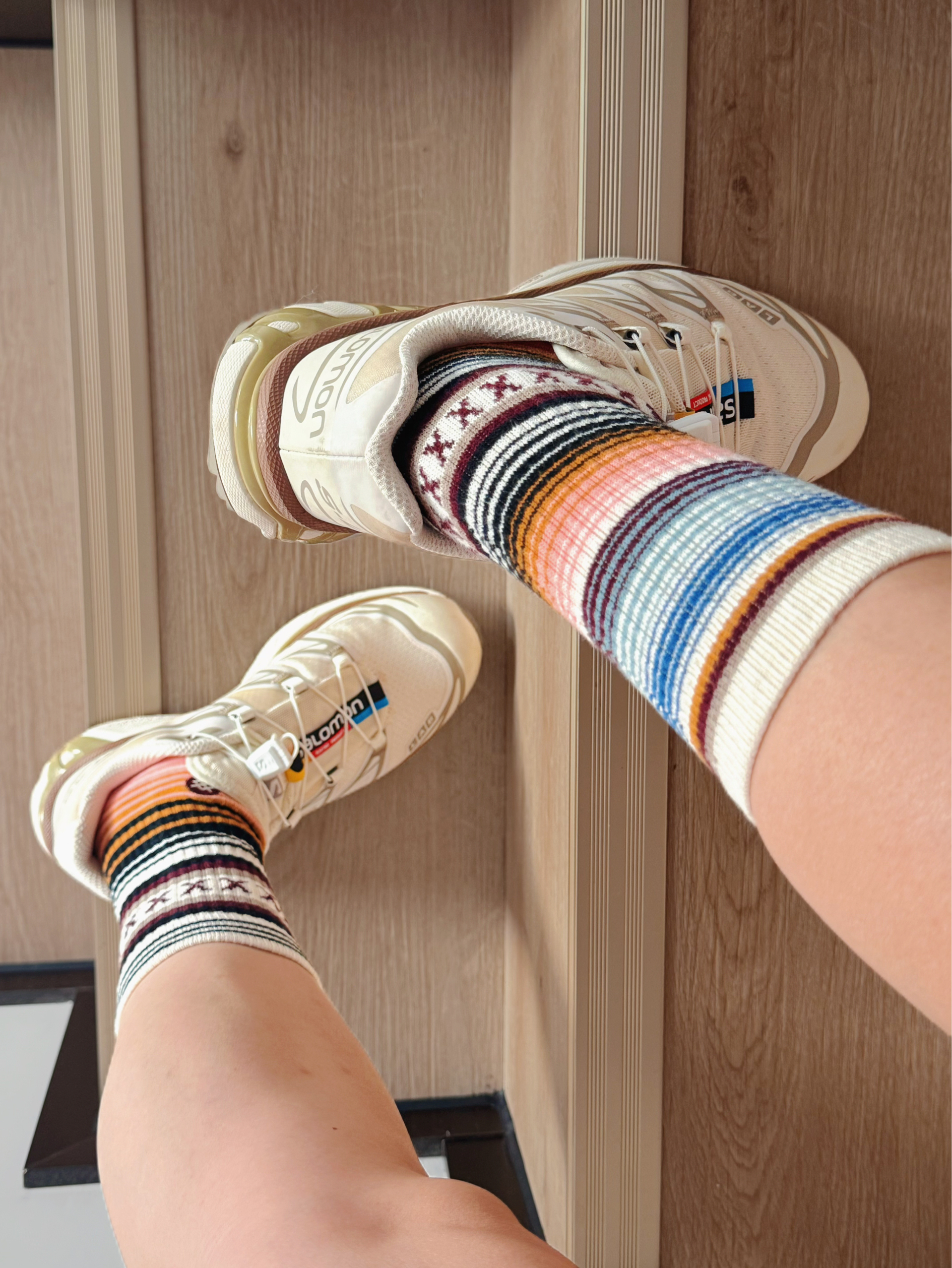 是我非常喜欢的两个品牌 萨洛蒙XT6除了好穿还非常好看 还没火的时候买了很多 个人觉得古早配色更漂亮 Stance蓝球袜除了小贵没啥毛病 脚上这双已经穿了五年了