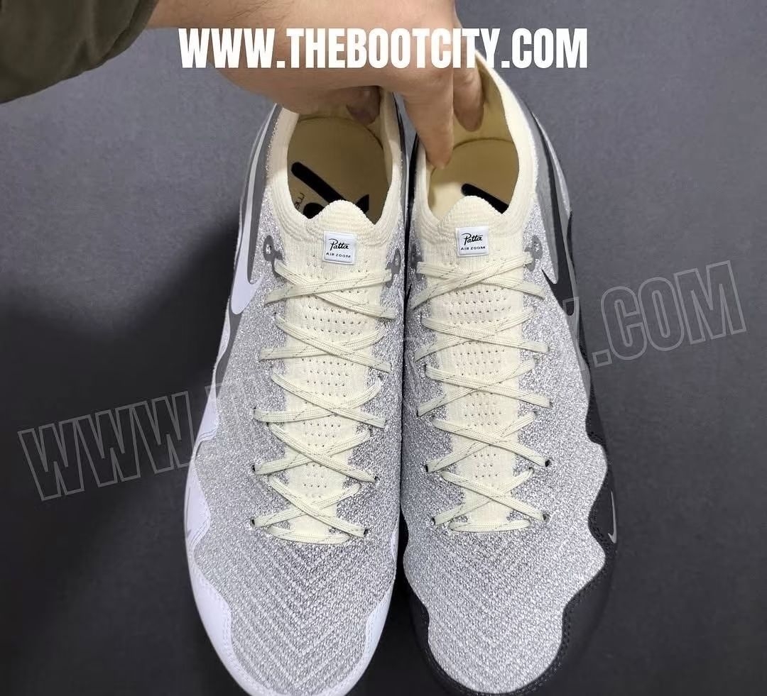 荷兰街头品牌 Patta 相信潮流玩家一定非常熟悉。他们和 nike 做的很多潮流联名都让人印象深刻,包括 aj1 和 air max 1 在内的多款作品都兼具人气和销量。而 nike 即将把合作延伸到足球领域,这款 Patta × Nike 的刺客 16 足球鞋看起来延续了 air max 的设计细节,采用白色和灰色的结合,甚至还很有可能是鸳鸯撞色。鞋身侧面的挡泥板设计非常有 Patta 的风格...