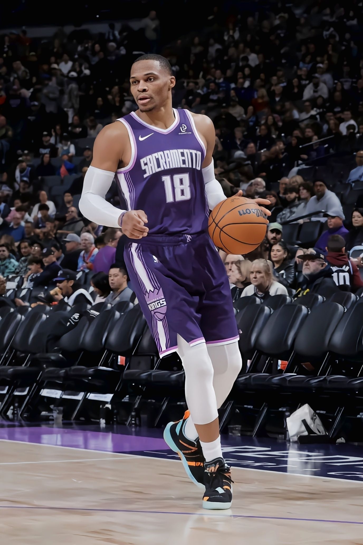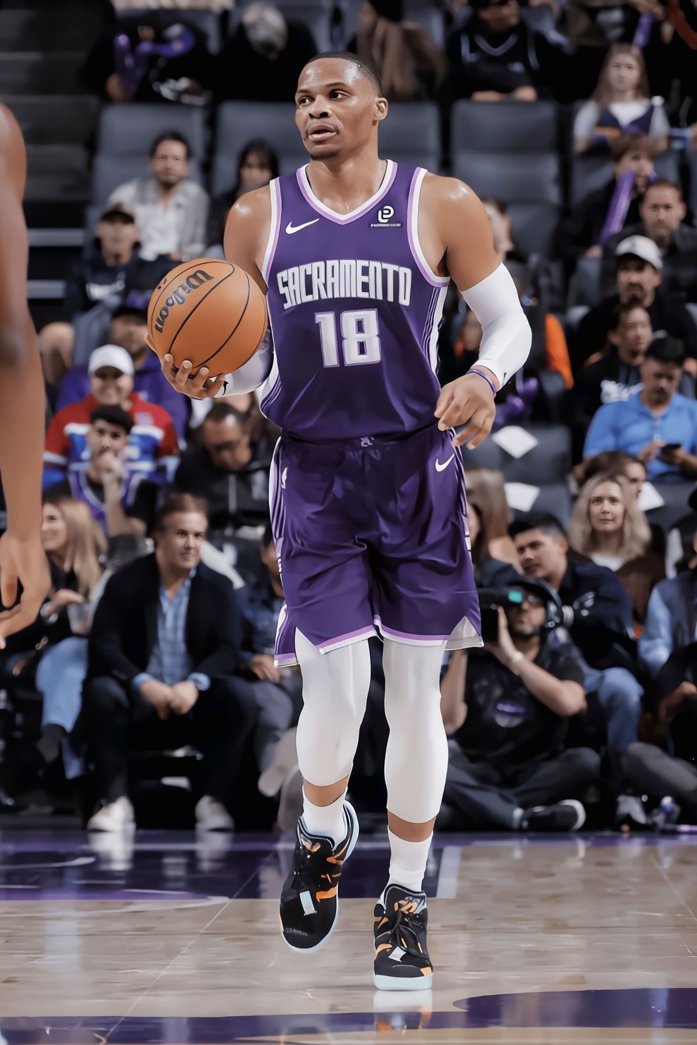 国王对活塞的常规赛看得人有点唏嘘,球队127-136输了球,但威少的表现依旧拼劲十足——38分钟上场时间,21投9中砍27分6篮板4助攻2抢断,三分线外还扔了12个进4个,那份冲劲真的没减。 目光下移,发现威少脚上踩的居然是Jordan Why Not Zer0.4 PE,这双鞋也算是他的经典战靴了。黑蓝橙的配色在球场上特别亮眼,鞋身的轻量化设计和缓震配置,配上威少的突破节奏,还是当年那味儿。...