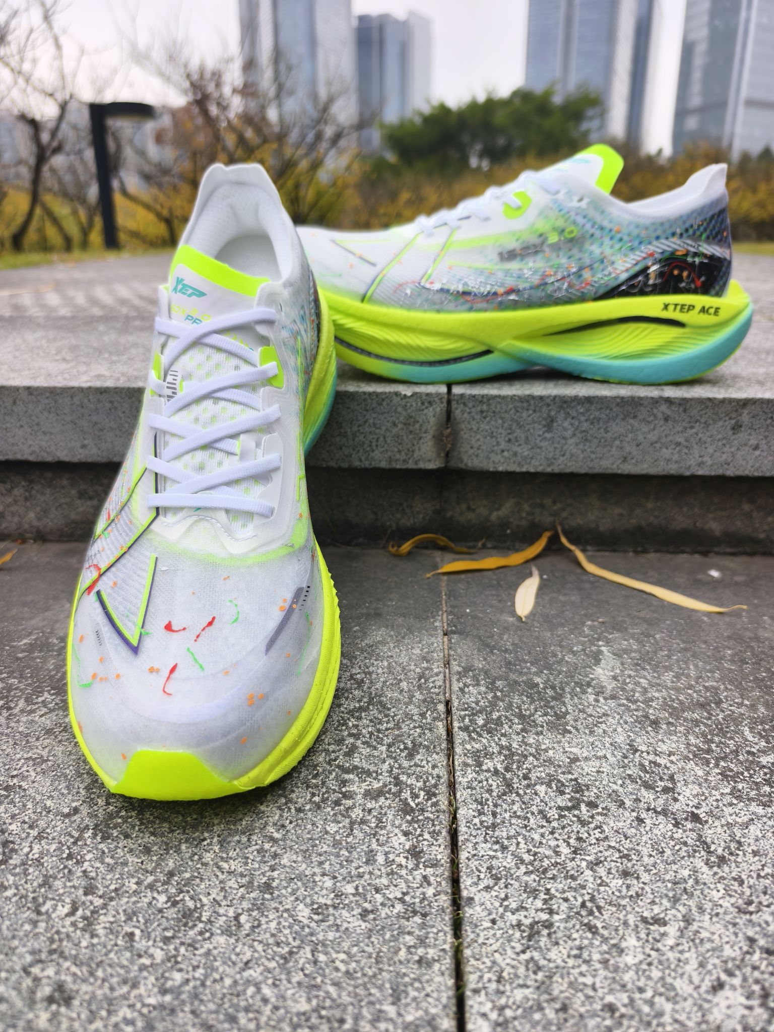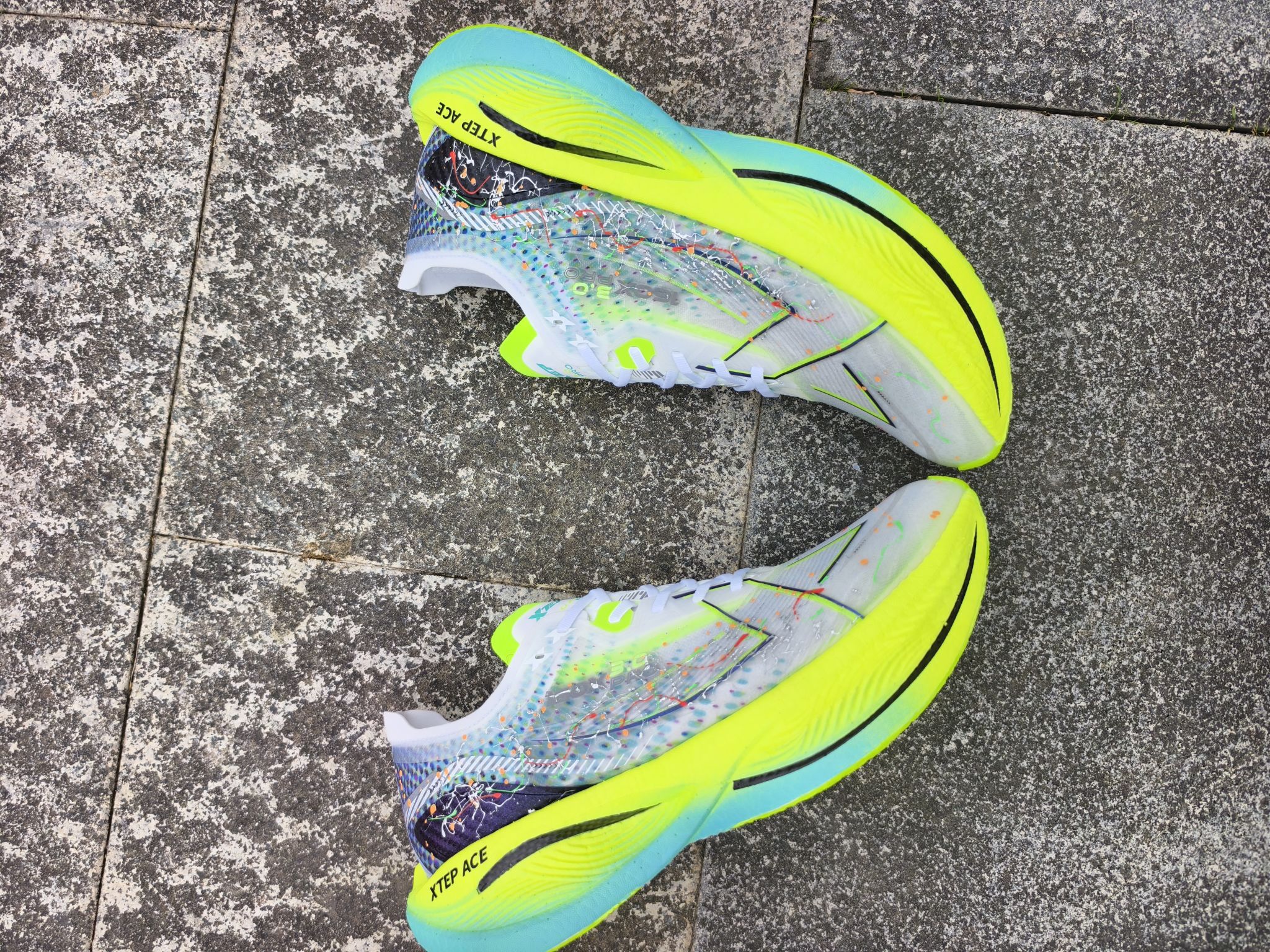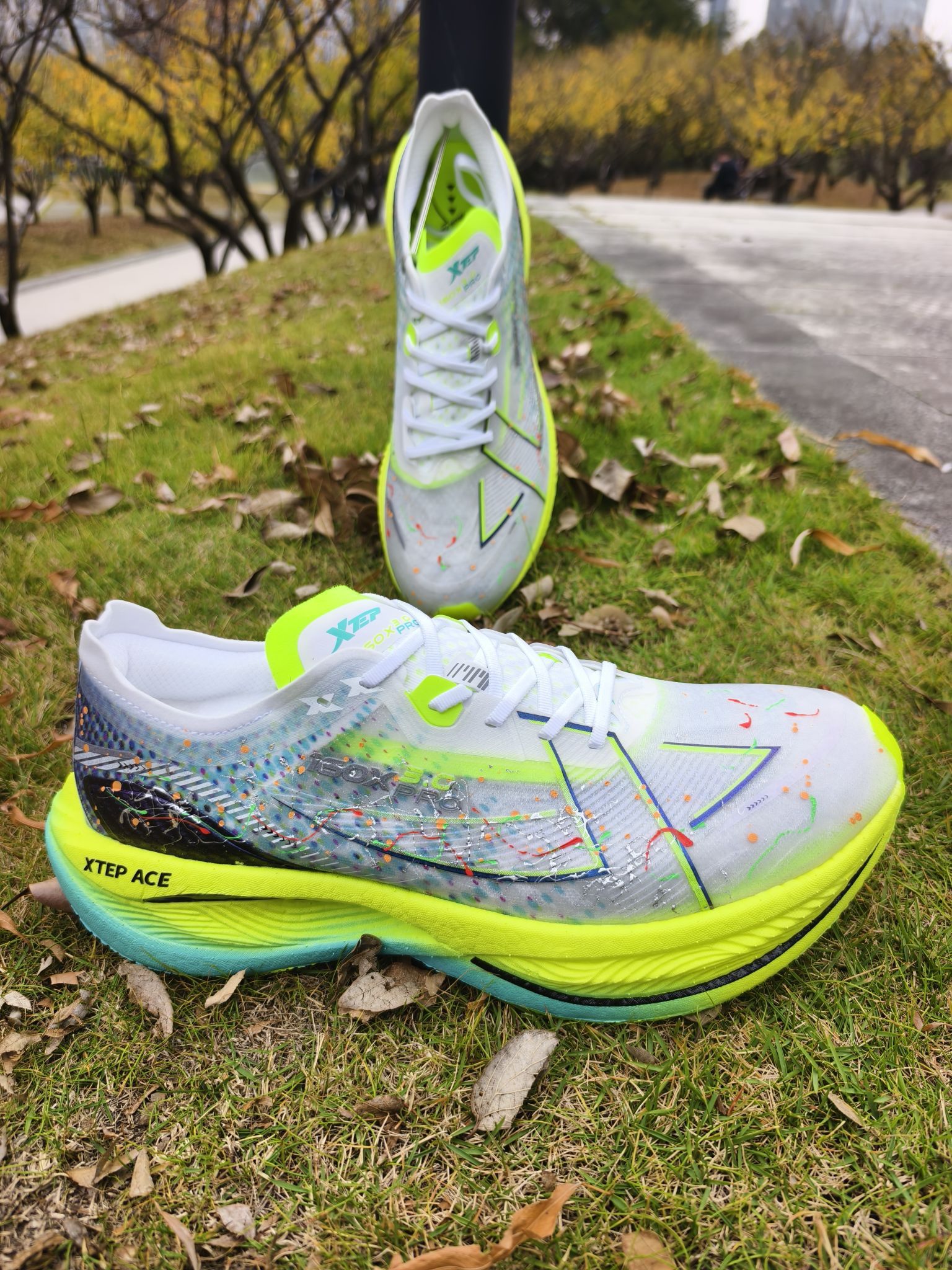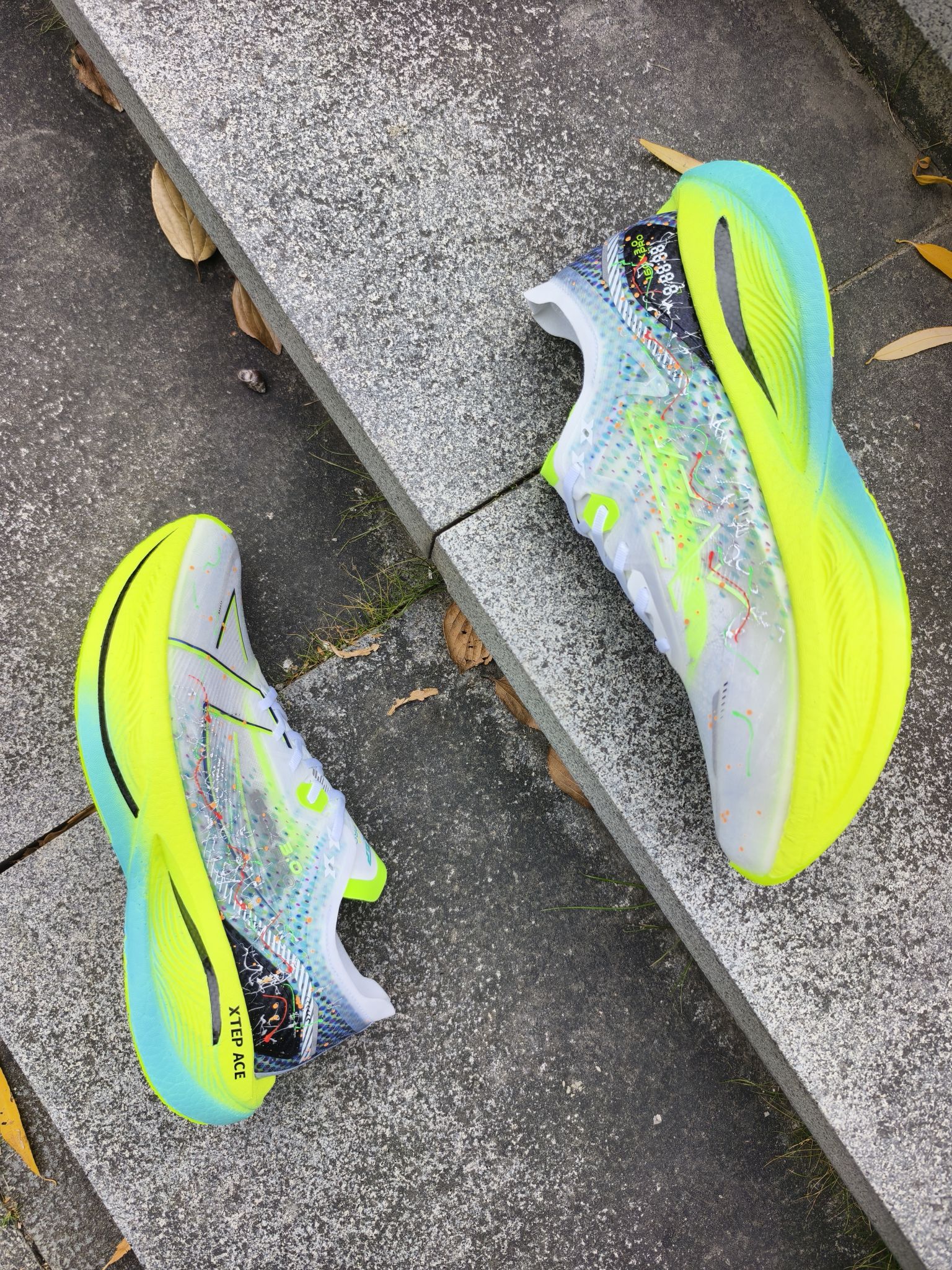 🏃♂️特步160x3.0pro 号称跑步界的神鞋,因为想体验一下,特地入手了一双! 🎨上脚的第一感觉就是💨轻,鞋面是那种带彩色泼墨的透网材质,荧光绿的中底配渐变青蓝,撞色超亮眼! 👟今天早上试了一下这双3pro 前面是慢跑,感觉就是不软,比较弹但是前掌很厚,也不是很硬但是会有板脚的感觉!慢跑有点难受,可能和状态以及力量有关吧,入门还是有门槛的! 👣让我体验难受的一点就是鞋带,这个设计我有点...