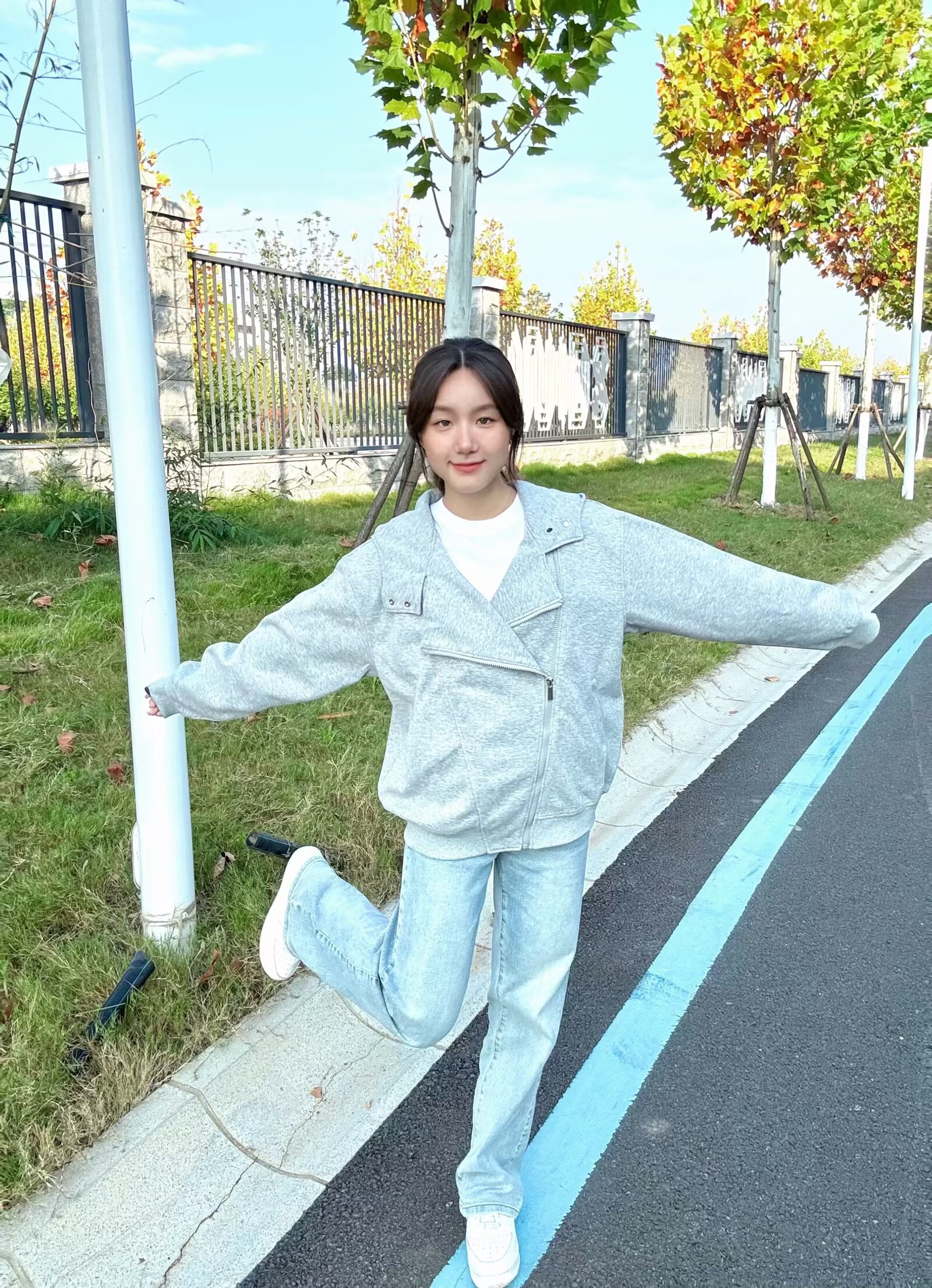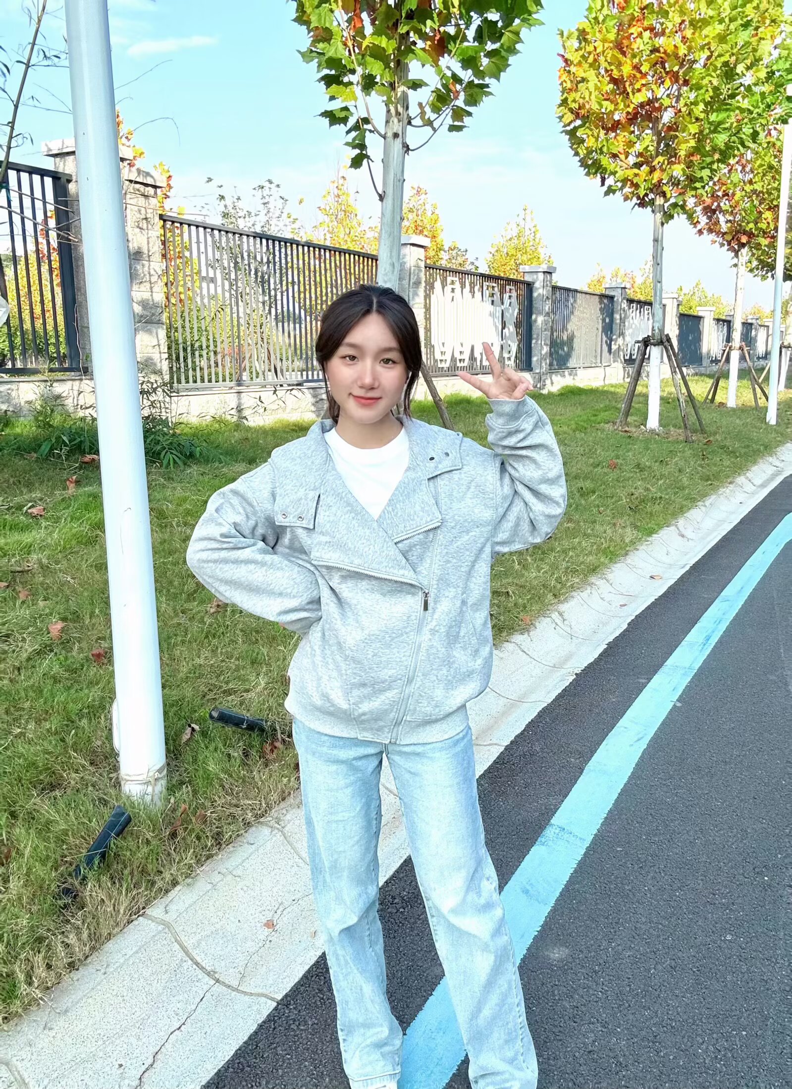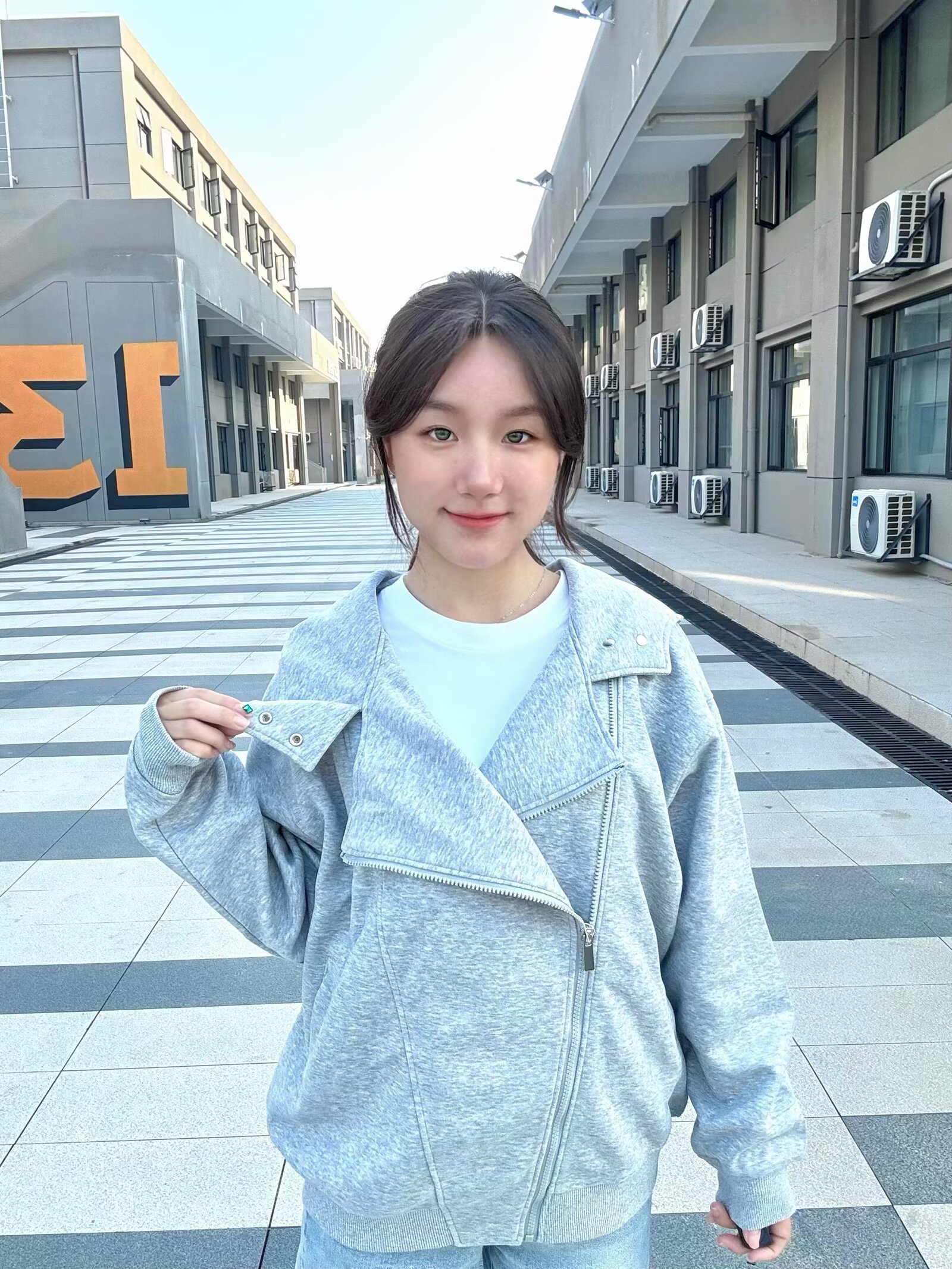 这件灰色拼接拉链外套真的超酷呀!😎斜襟拉链+按扣细节,打破普通外套的单调~磅数很够,我穿身上真的超有质感!宽松版型超藏肉滴~随便穿一件白色内搭和牛仔裤都超有感觉!不用费心搭配,早八通勤穿超方便,满足我想快速出门又不想随便穿穿哈哈哈🤣