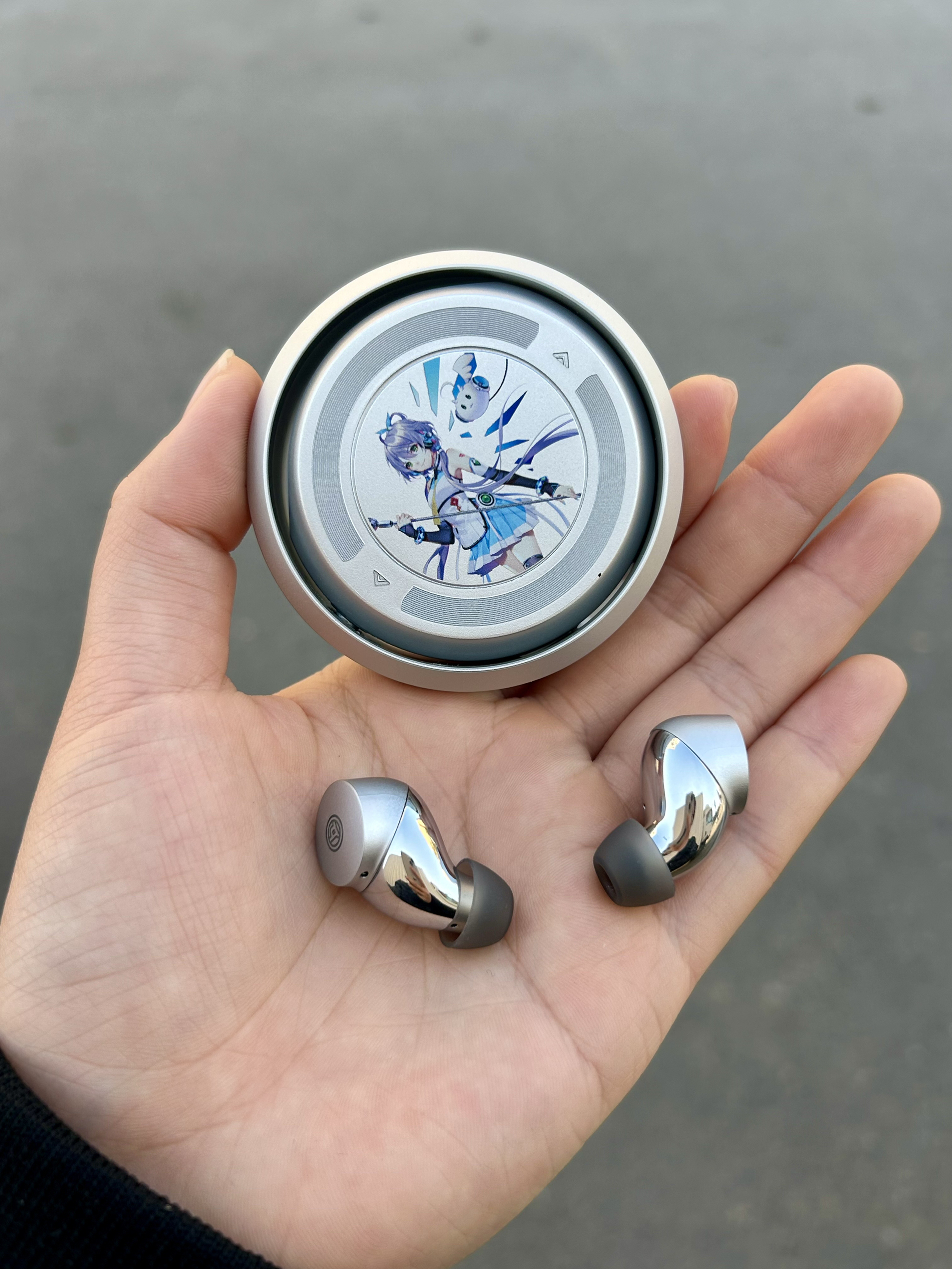 哈喽👋兄弟们👬 这里是小刘默爱奋斗💪 喜欢洛天依的兄弟有福喽! 最近挖到一款洛天依联名耳机🎧 第一眼看到它就被拿捏了🫴 圆形旋转设计超酷的!封面就是洛天依图案,真的超好看😍! 它的触屏超丝滑,可以切换不同音质模式,有降噪,环境音,普通。入耳很舒适,音质夜很不错👍 还赠送了洛天依徽章,超喜欢!