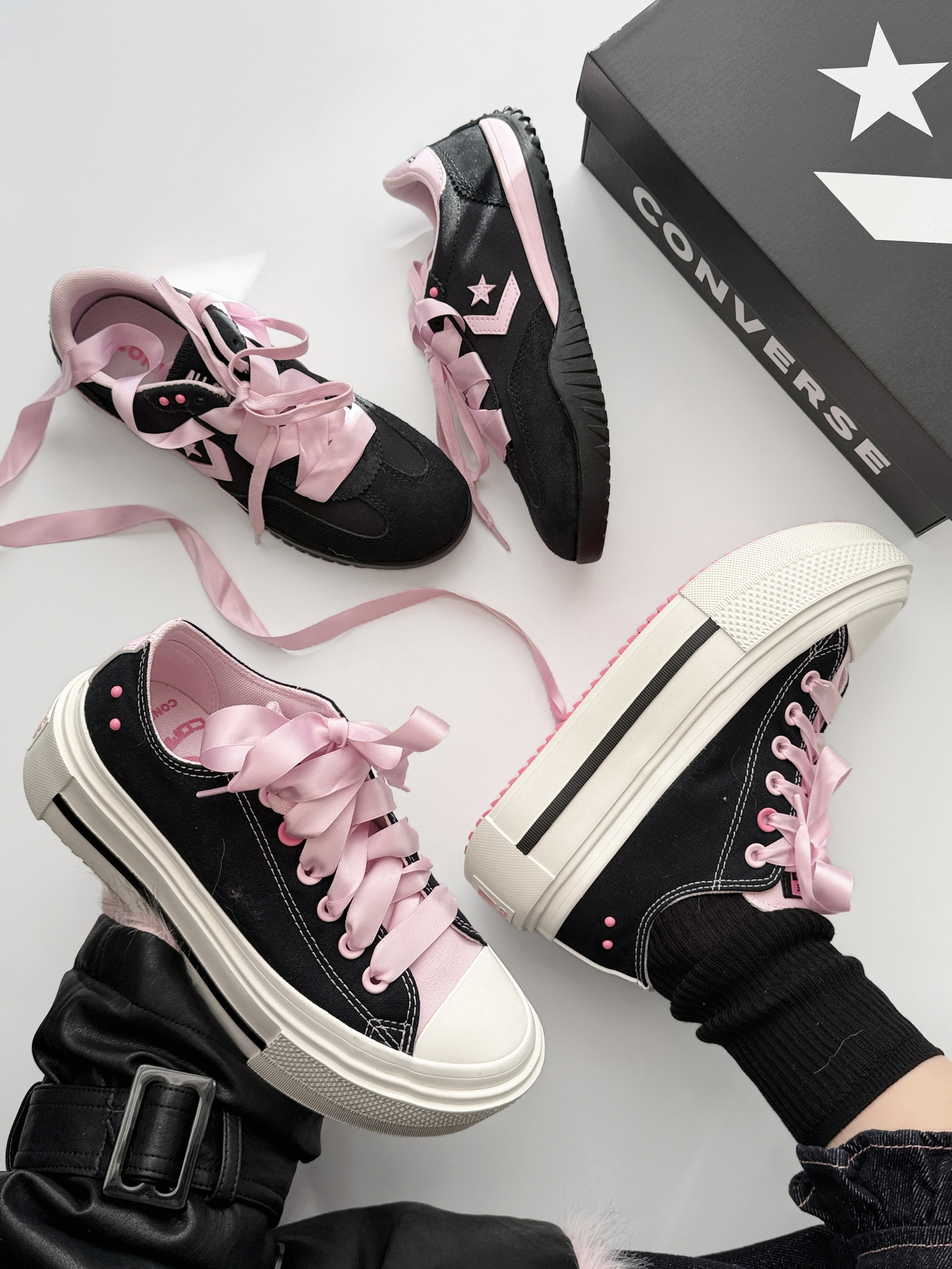 本篇笔记关联了Converse/匡威 Run Star Trainer 流星 德训鞋 运动休闲鞋 防滑耐磨舒适轻便平跟复古 黑色/粉色、Converse/匡威 All Star Lift Double Stack 休闲 运动 双层厚底鞋 帆布鞋 黑色/粉色等商品,为用户提供真实的使用体验和购买参考。