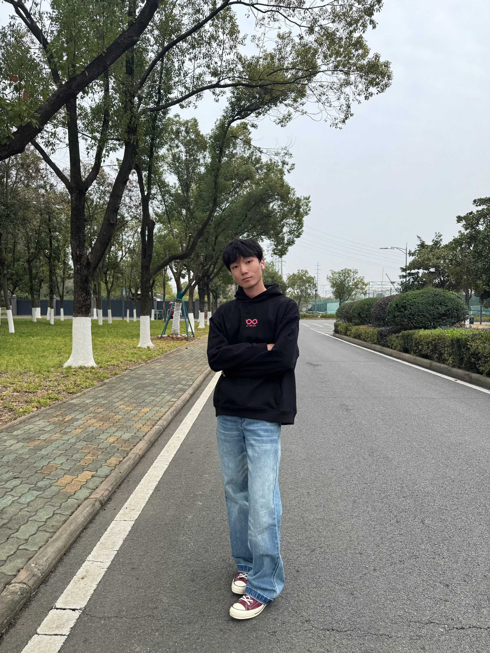 今天上身的是 BIPOLAR 家的连帽刺绣🪡卫衣 设计感真的很在线。 黑色+粉色的配色又酷又有点甜,帽檐的刺绣细节把个性拿捏住了。 版型宽松不挑身材,遮肉显瘦,随便一套就能出门。 面料柔软亲肤,日常通勤、逛街、上课穿都很舒服。 搭牛仔裤是休闲风,搭短裙就是甜酷风,一件搞定多种穿搭。 小帅身高178体重115穿M码
