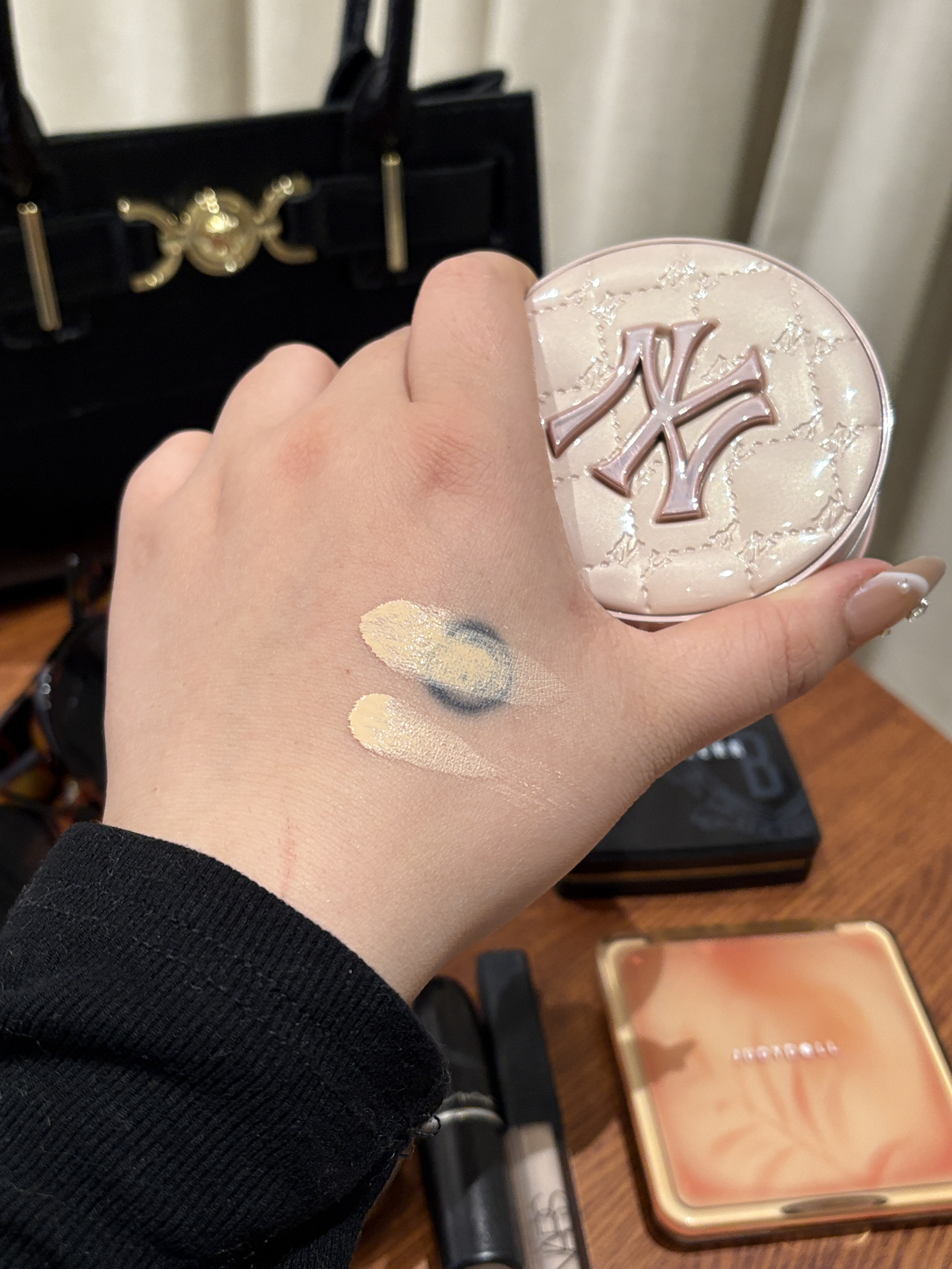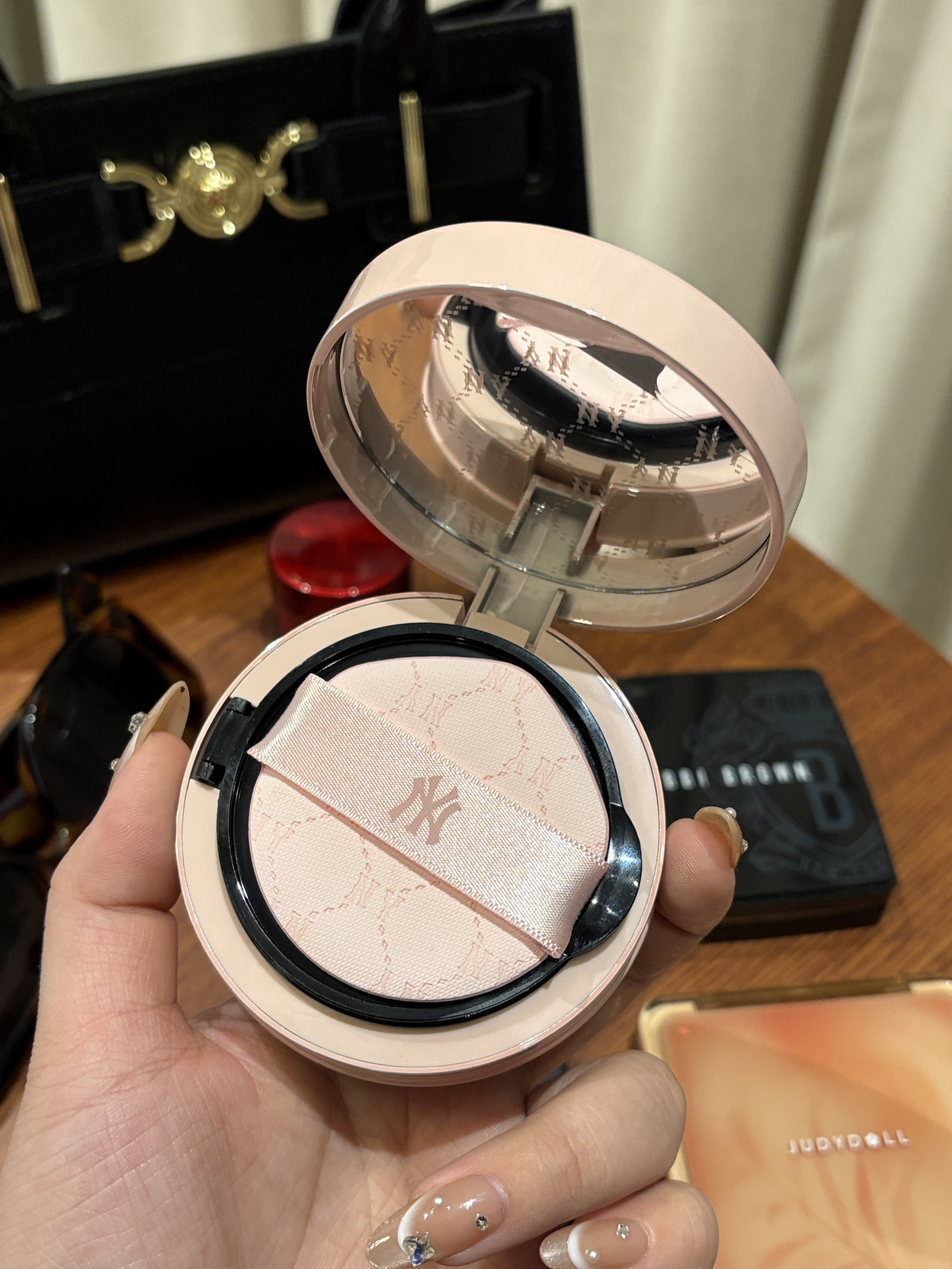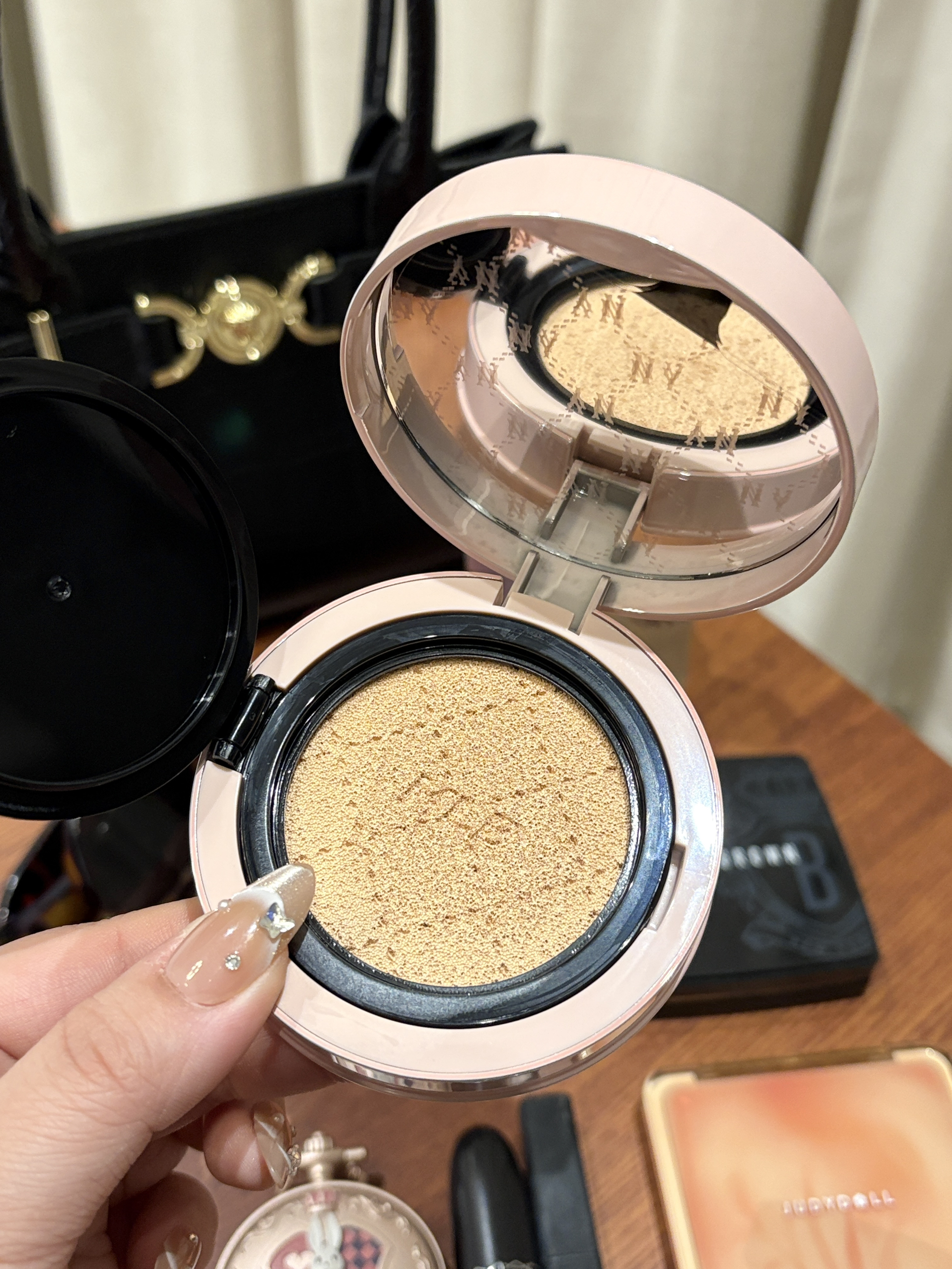 谁能拒绝颜值和实力双在线的气垫啊! MLB这款粉金气垫直接戳中我的心巴💘 外壳是高级的大理石纹+立体NY标 拿在手上补妆都超有面儿~ 上脸是那种自然的奶油肌妆效, 持妆力也很顶,混油皮出门大半天 底妆还是牢牢扒在脸上, 只有T区轻微出油,整体妆面依旧完整 新手也能轻松上手用 小小一个放包里,补妆也超方便