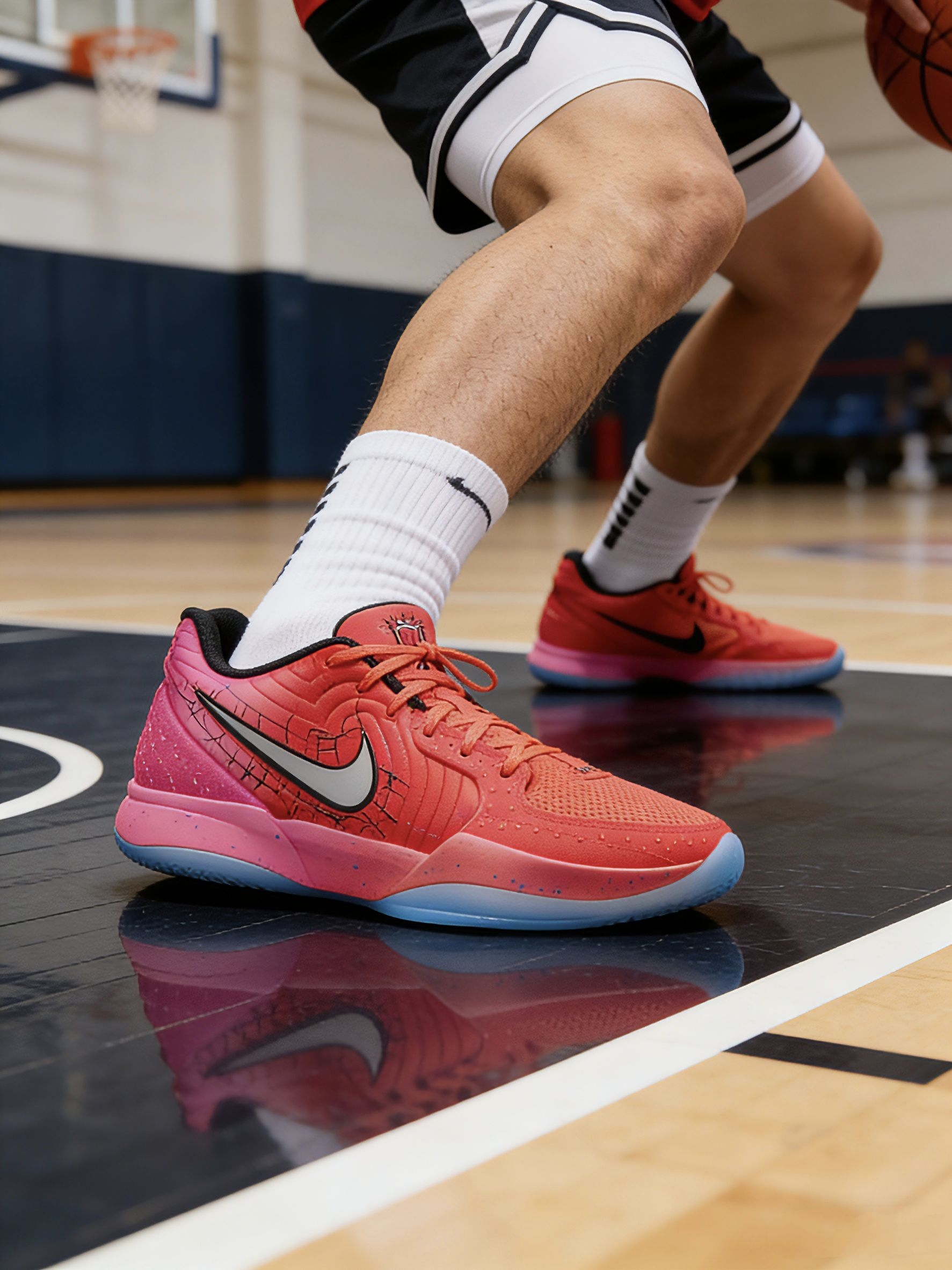 谁懂啊?渐变熔岩红+冰蓝蛛网中底,鞋面暗藏蛛丝暗纹,银勾标秒变超级英雄徽章! Nike云感中底+透气针织,球场变向像荷兰弟飞檐走壁,逛街暴走如踩曼哈顿晨曦~重点:联名款把蛛网元素玩出花,隔壁漫威粉已蹲守截图! 小众到宇宙的英雄战袍,穿上它连红绿灯都在倒计时等你COS!