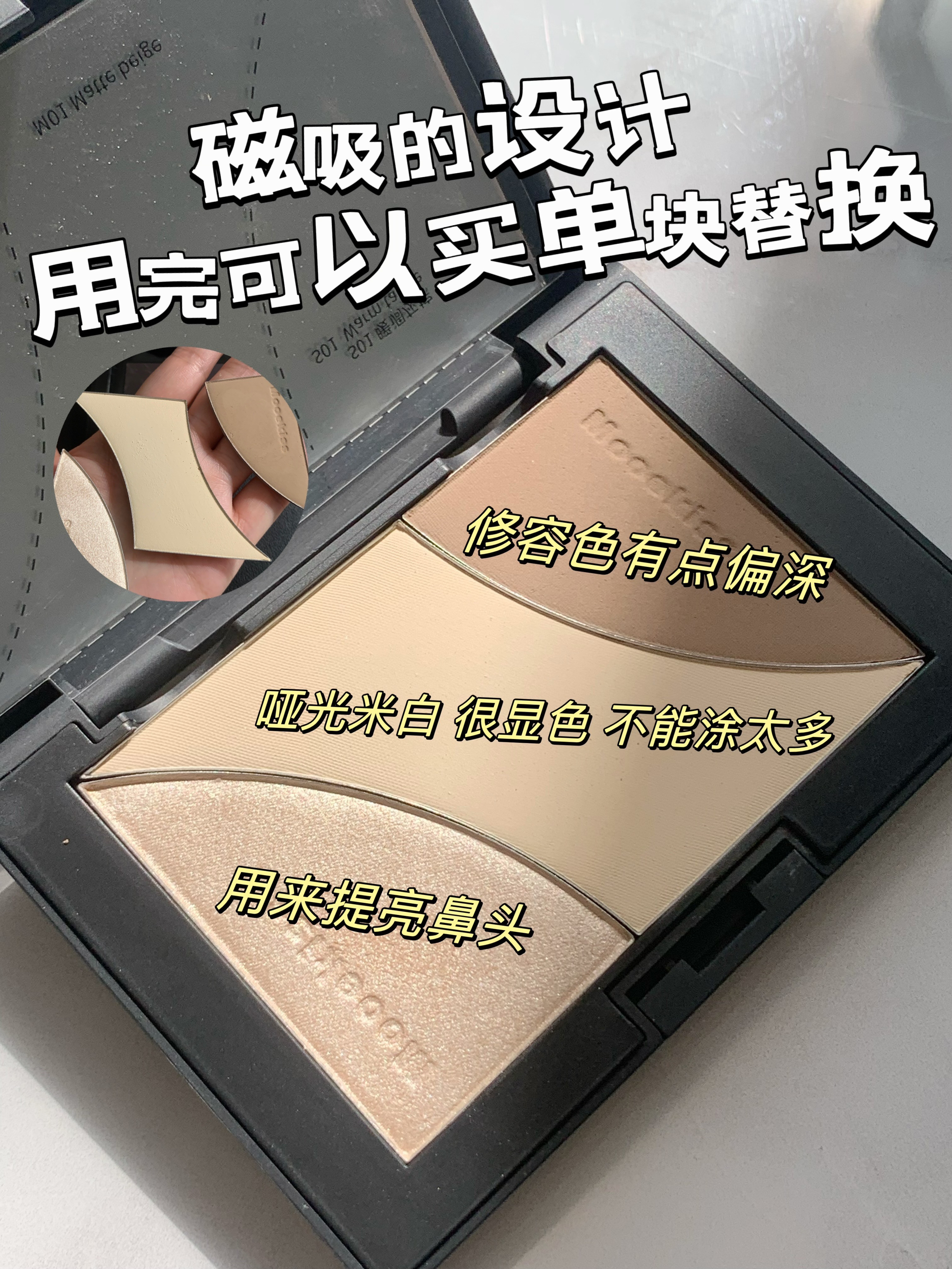 本篇笔记关联了MAC/魅可 小金盒生姜高光提亮修容盘 细闪哑光 7g DOUBLEGLEAM+OMEGA、Judydoll/橘朵 高光修容阴影综合一体盘 哑光提亮面部鼻影侧影三合一 9g 01波影盘、3CE/三熹玉 双色修容盘 哑光 8.6g 灰棕色ASH BROWN等商品,为用户提供真实的使用体验和购买参考。