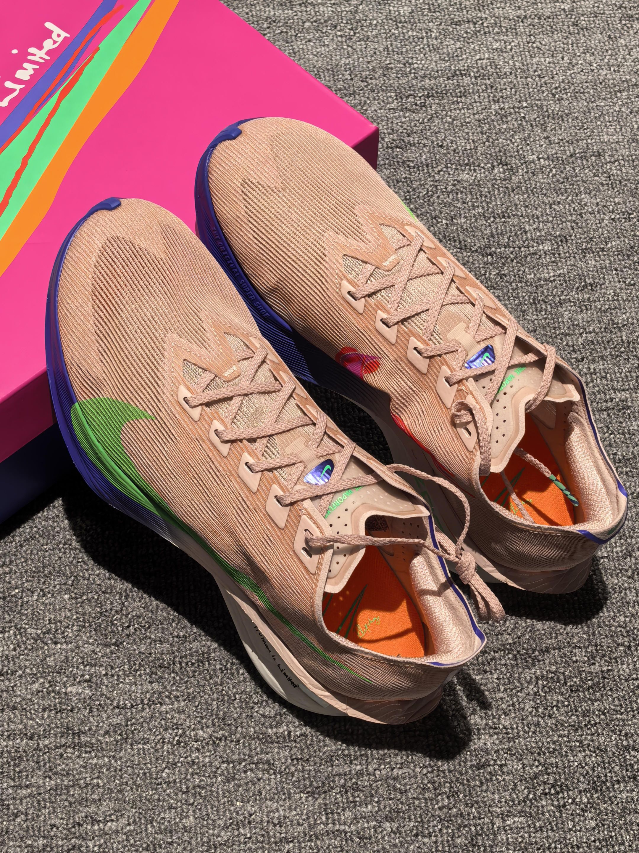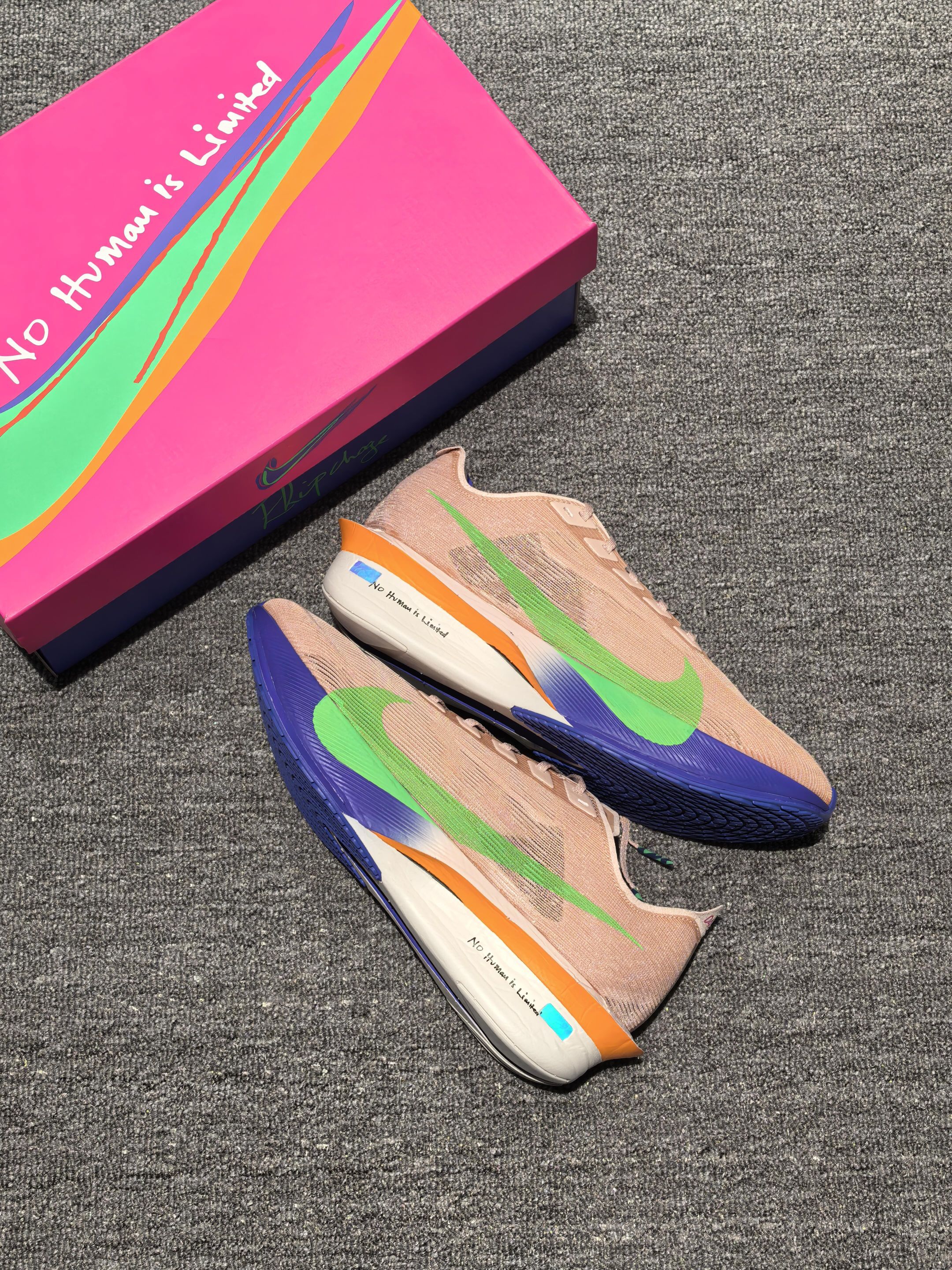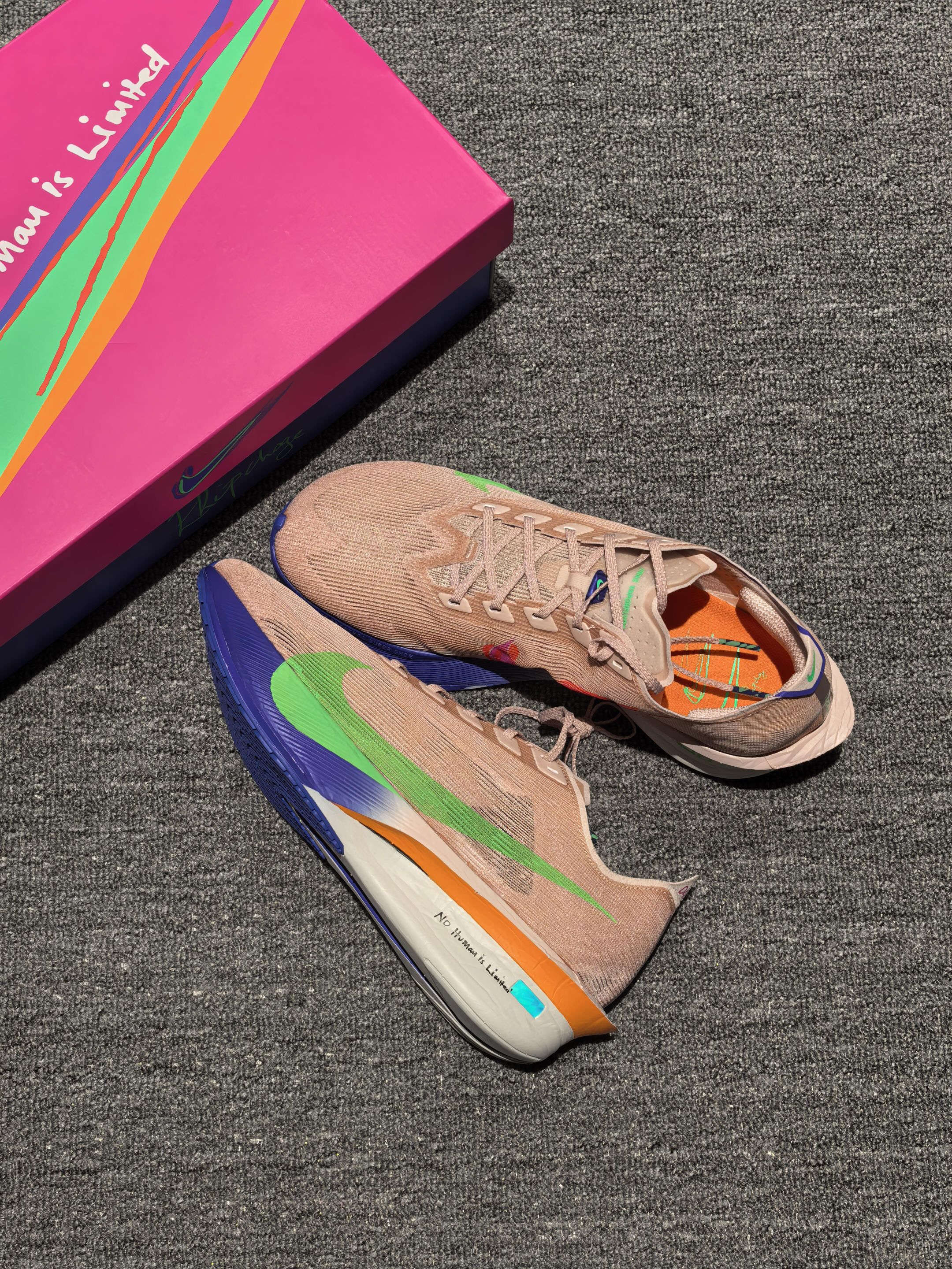 这双Nike Vaporfly 4基普乔格专属配色也太顶了吧! ZoomX中底+全掌碳板推进系统,能量反馈超级明显! 试穿它跑起来真的有种“人类没有极限”的感觉~
