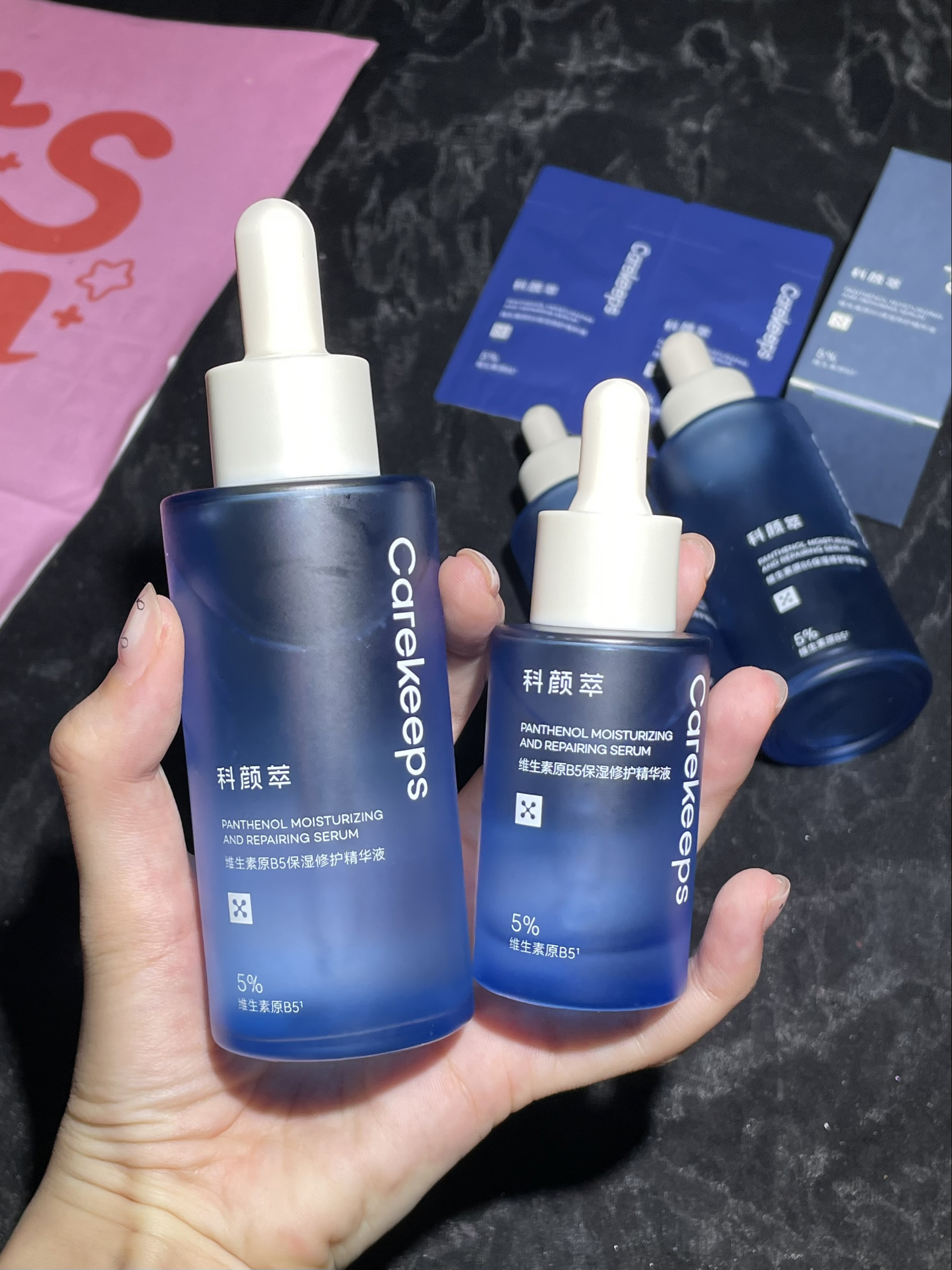 之前一直用不来B5精华 大部分使用感都不好 用起来黏黏腻腻的 直到我用到科颜萃的B5修护精华才发现 肤感是真的好 像水一样流动性的质地 上脸完全不黏腻 很清爽也好吸收! 看我空了这么多瓶就知道是真爱用啦! 100ml放家里用 这次又回购了瓶30ml的带出门刚刚好!