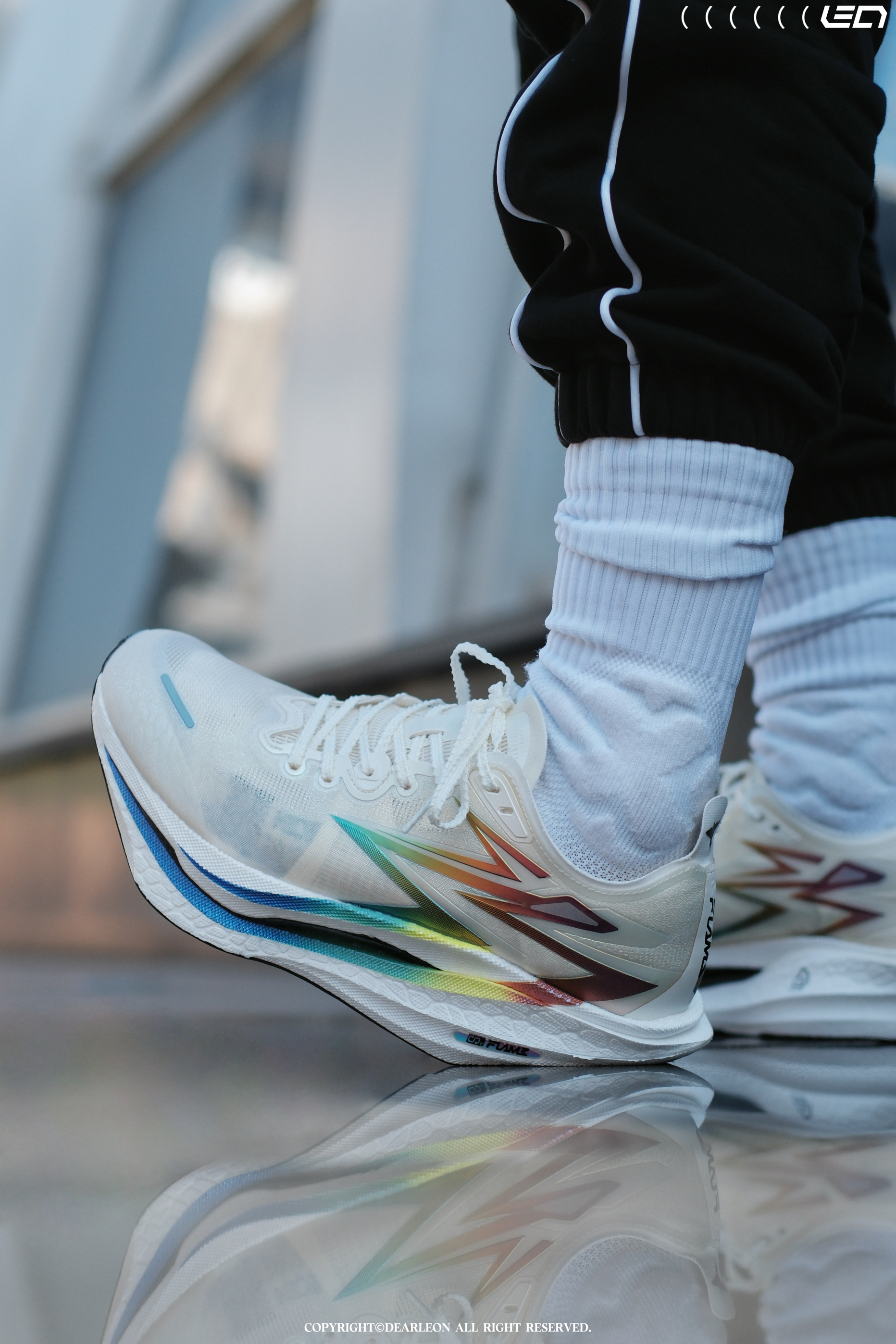 - 今天上脚361都 飞燃4 “MIRO”配色👟 在我的年终跑鞋盘点里,飞燃4是可以上榜的一双跑鞋,前面也分享过这双鞋其他配色👋整体是一双要适合有一定跑步基础的跑者及专业跑者的鞋🔝 外观方面🗣️这次的MIRO配色是蛮靓眼的,尤其是鞋侧身类似彩虹的Logo及多色渐变中底点缀🌈整体的视觉辨识度蛮高的👀加上碳板镂空的中底,也是蛮激进的了~ 跑步方面🏃🏻♂️绞综鞋面加入了碳丝,强度是足够的,而且轻量...