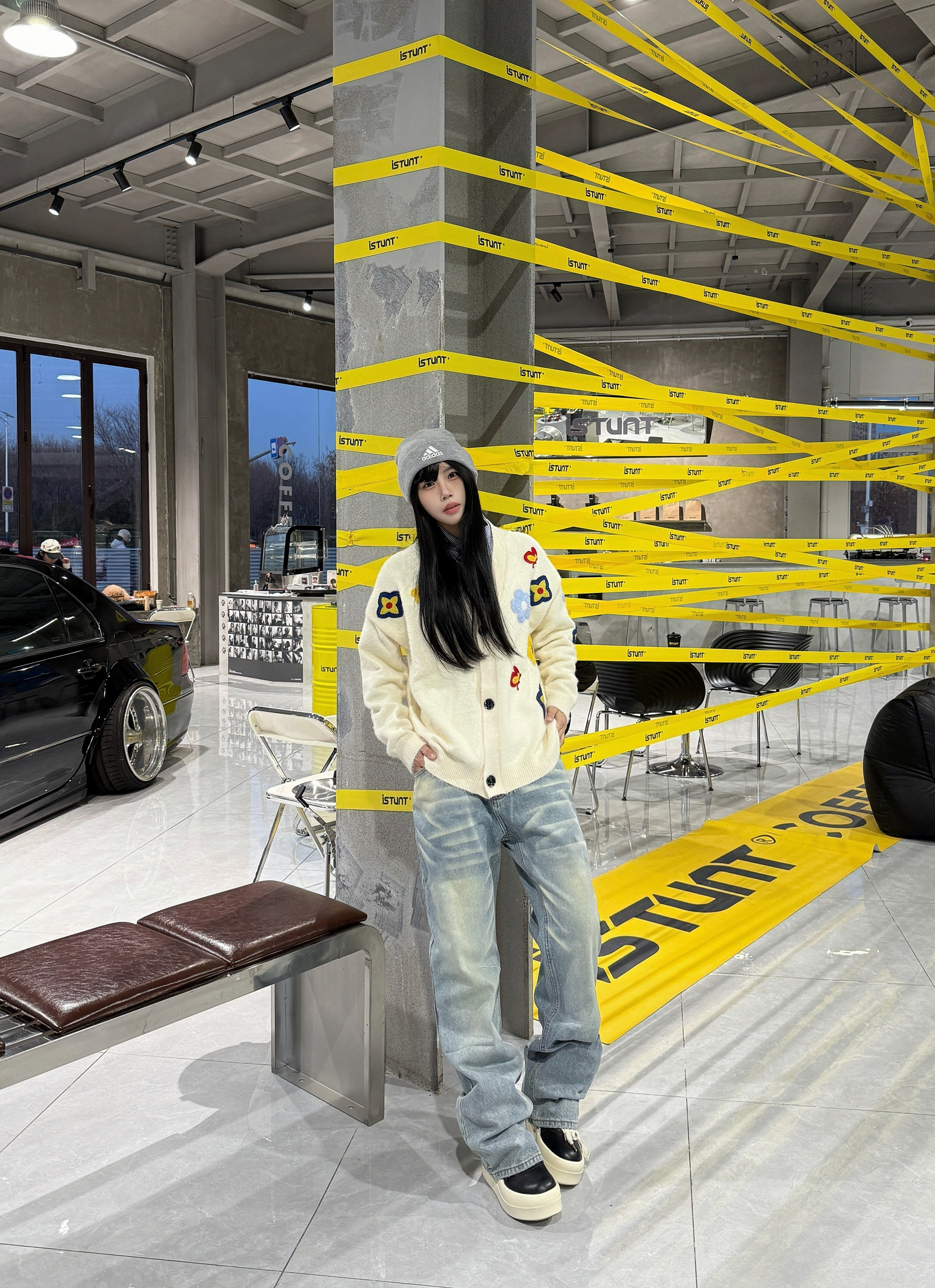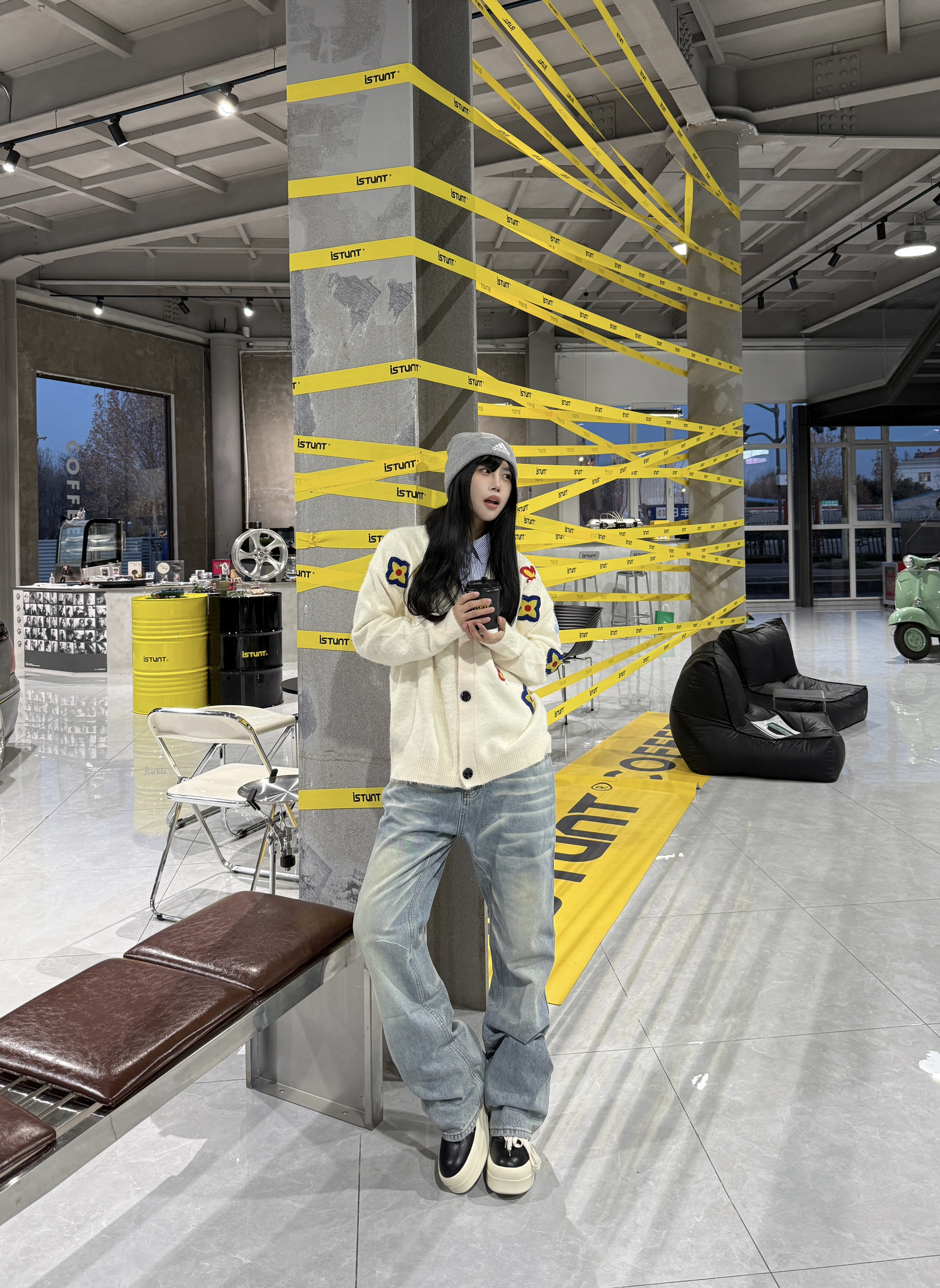 今年圣诞节的OOTD分享来咯 👔上衣穿了一件美式慵懒开衫毛衣 绣花设计和圣诞节的氛围很配哦🎄 软软糯糯的材质穿起来也舒服 👖浅色系的核心重点就是干净 搭配了一条水洗蓝牛仔裤刚好合适 最后再戴一个冷帽增加氛围感 这套美式街头感look你学会了吗