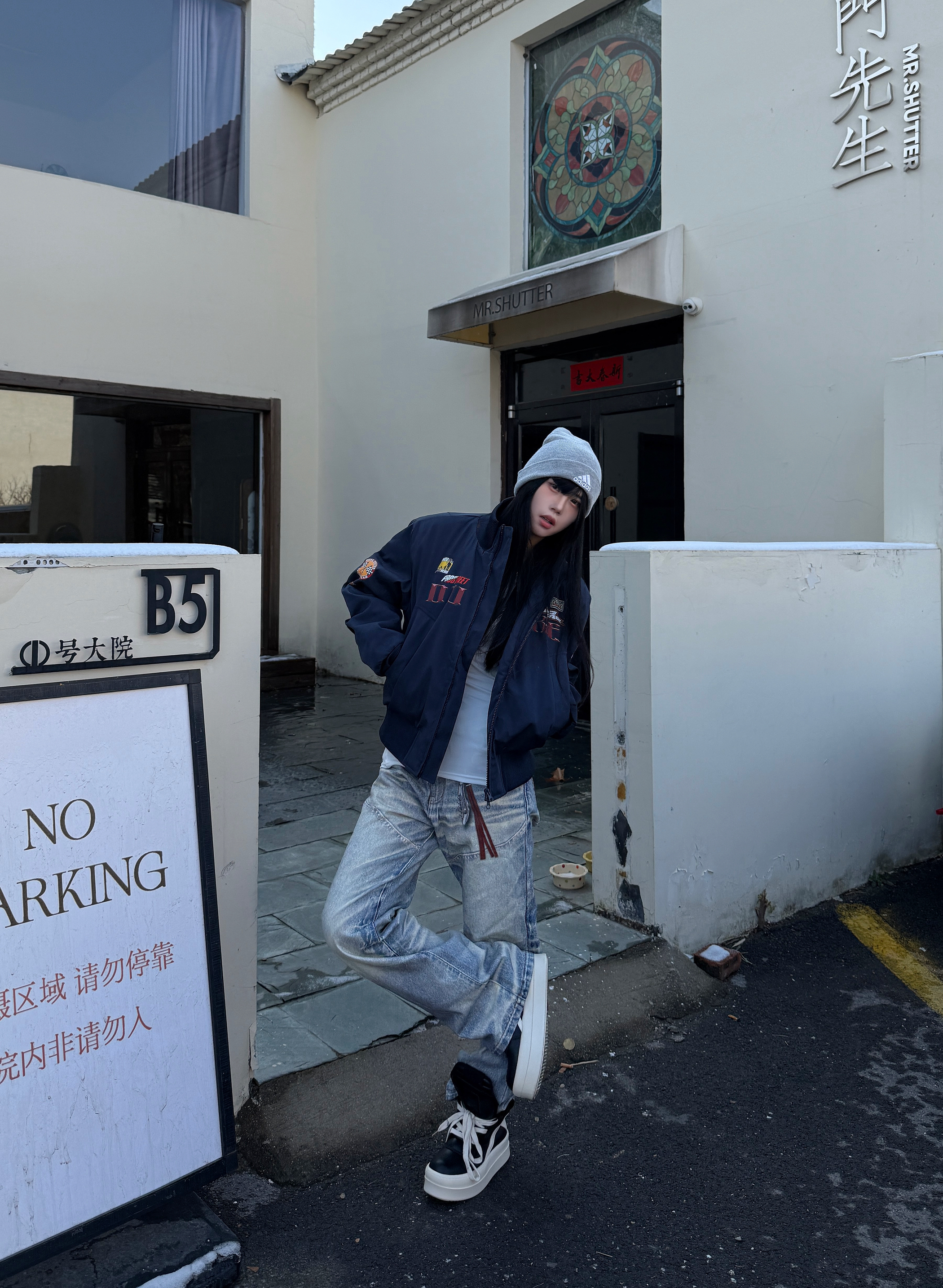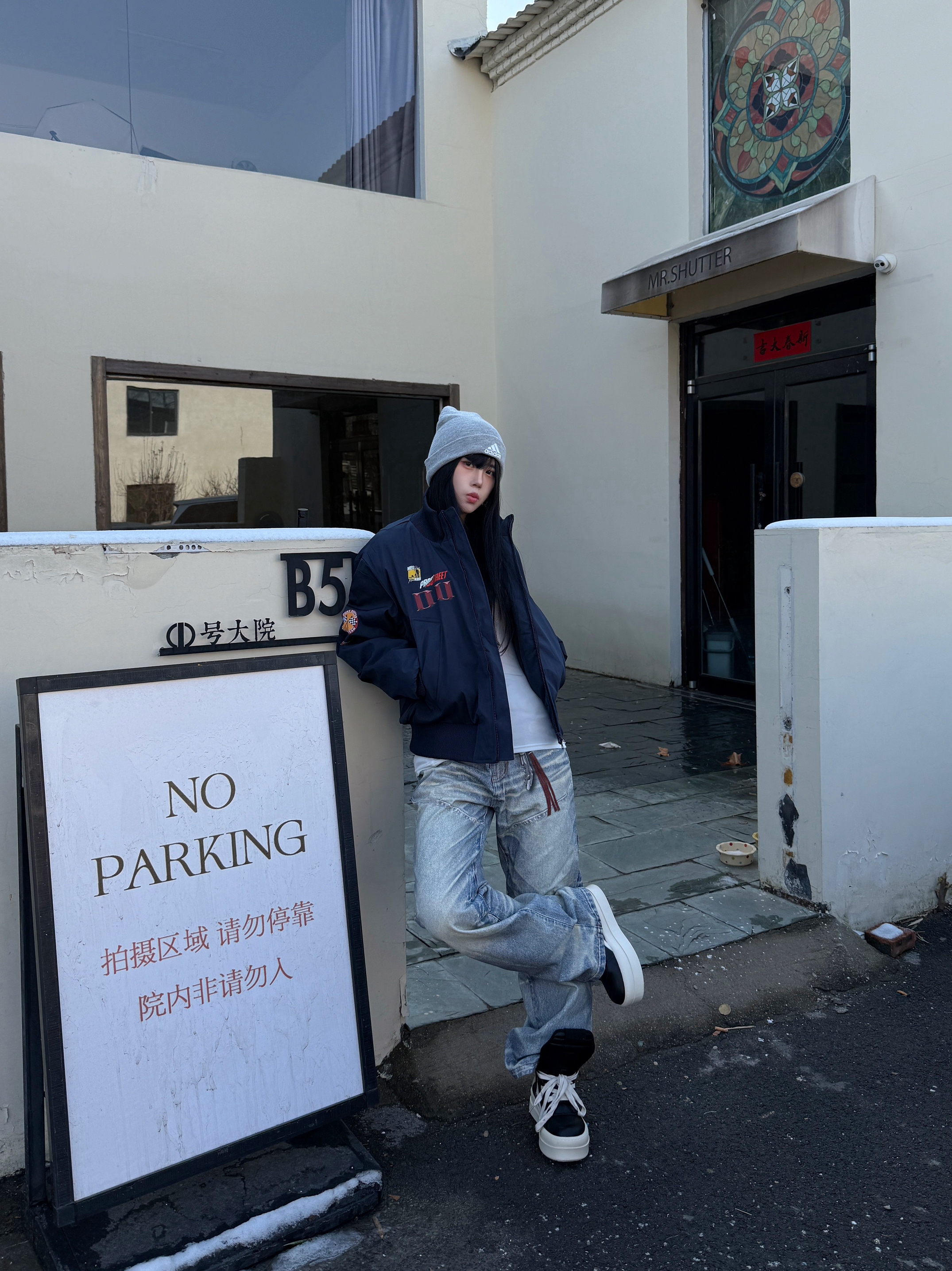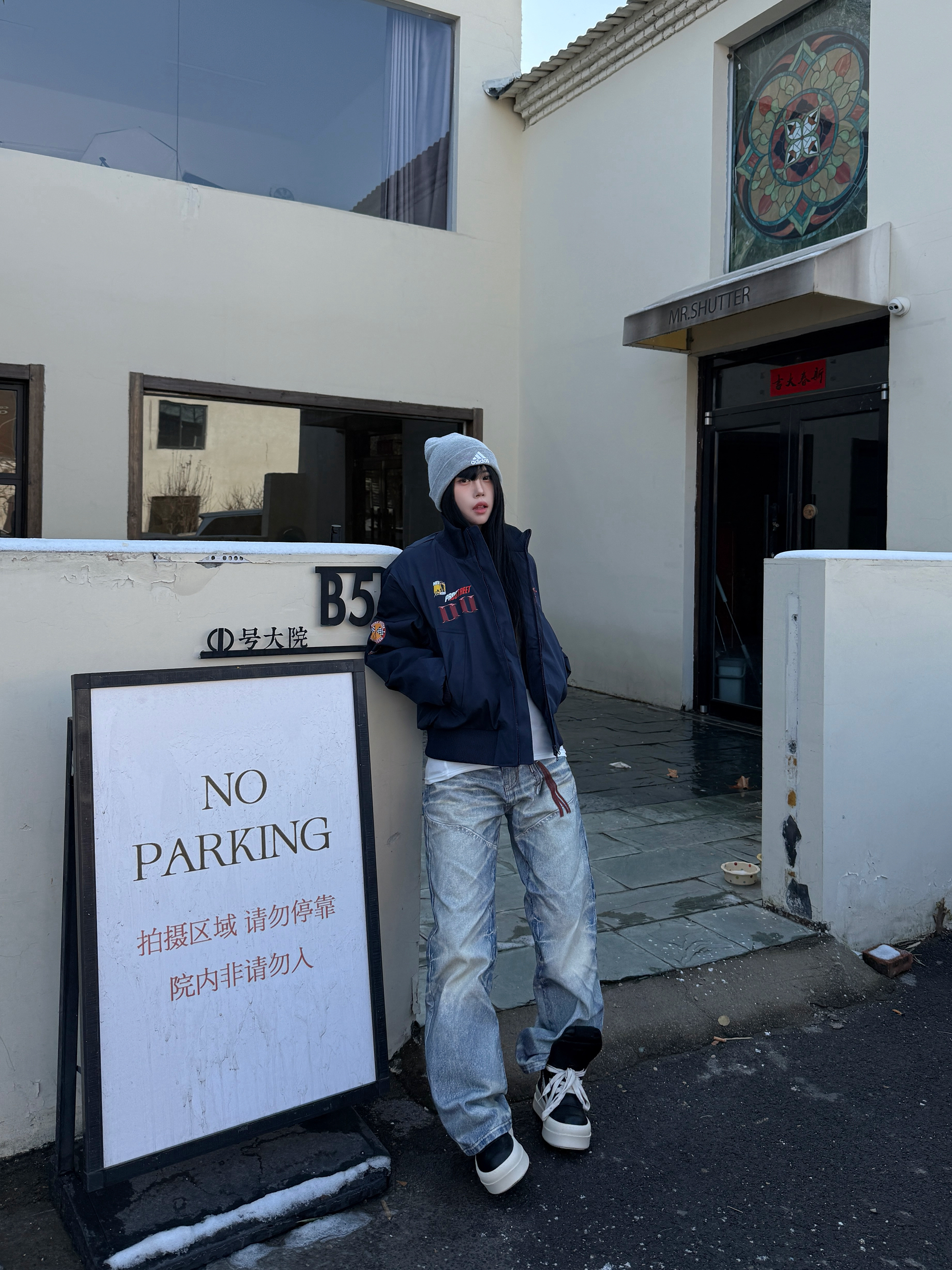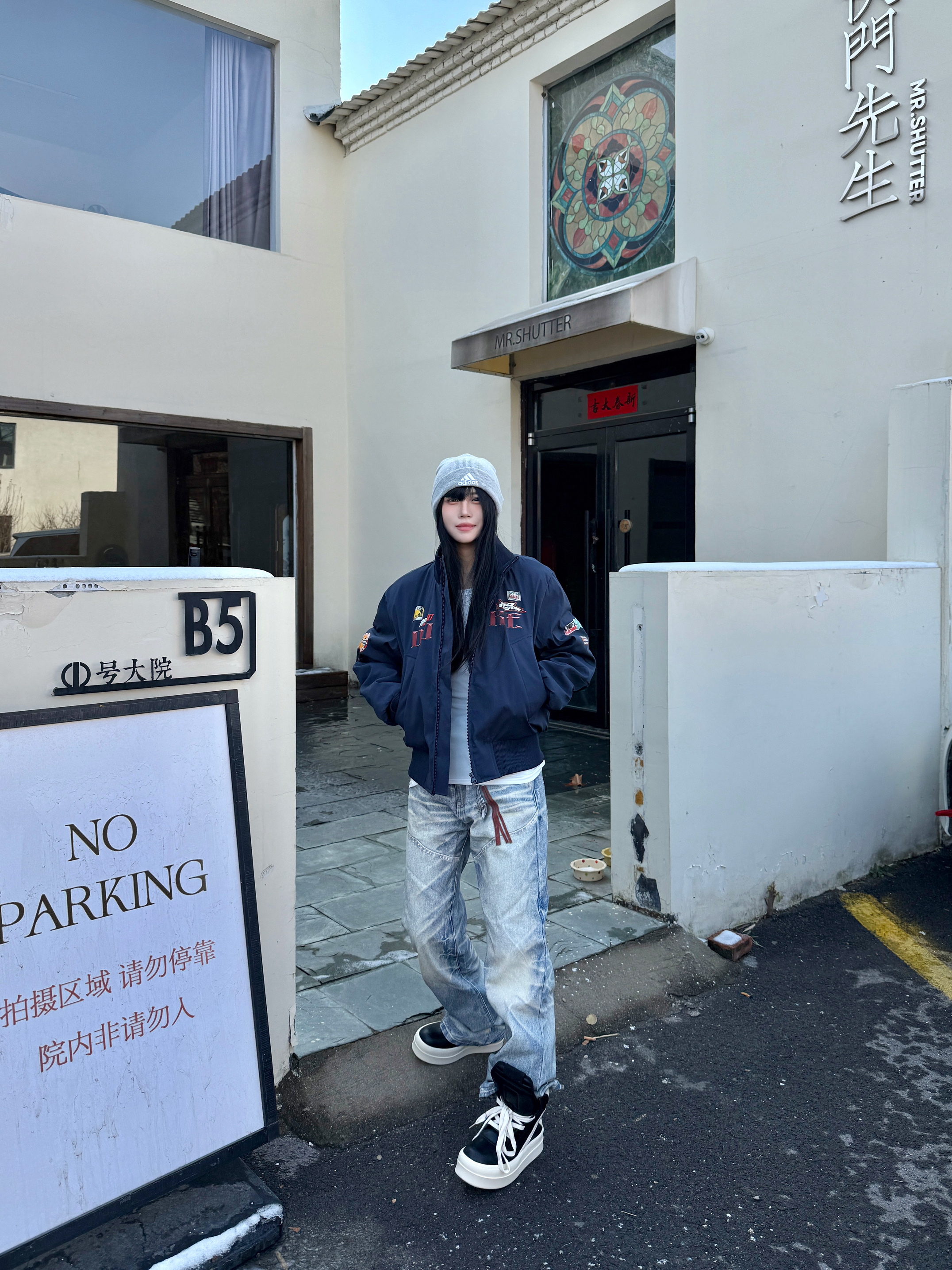 秋冬穿的有风度也要有温度 👔上衣穿了美式飞行员夹克 藏蓝色经典高级不会过时 字母印花街头感十足 加棉的内里设计就很保暖 👖搭配一条印章牛仔裤很帅 秋冬这样穿 真的帅