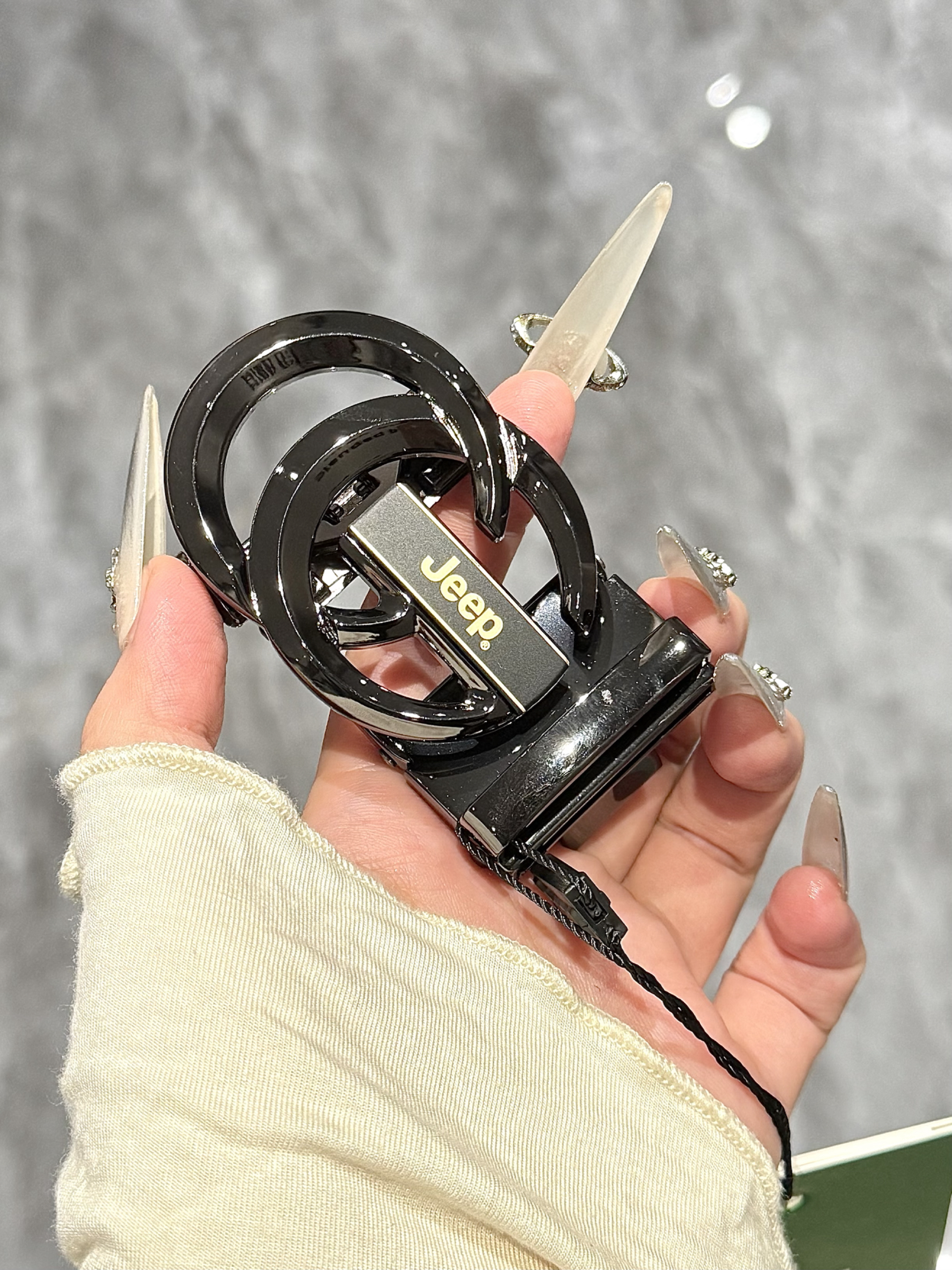 不愧是jeep的皮带礼盒啊 打开就感受到质感满满了 双C的扣头精致又高级 皮带是牛皮材质 光滑的皮身摸起来很不错 扣头是自动扣的 可以调节腰围 还是礼盒礼袋装 我觉得送男孩子很合适呀!