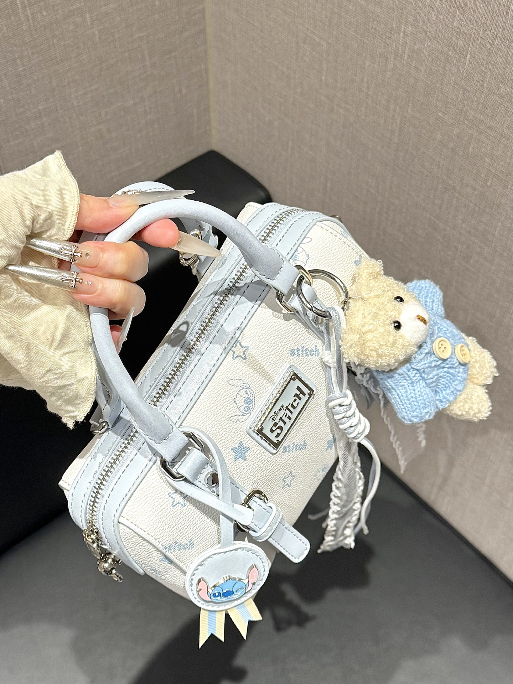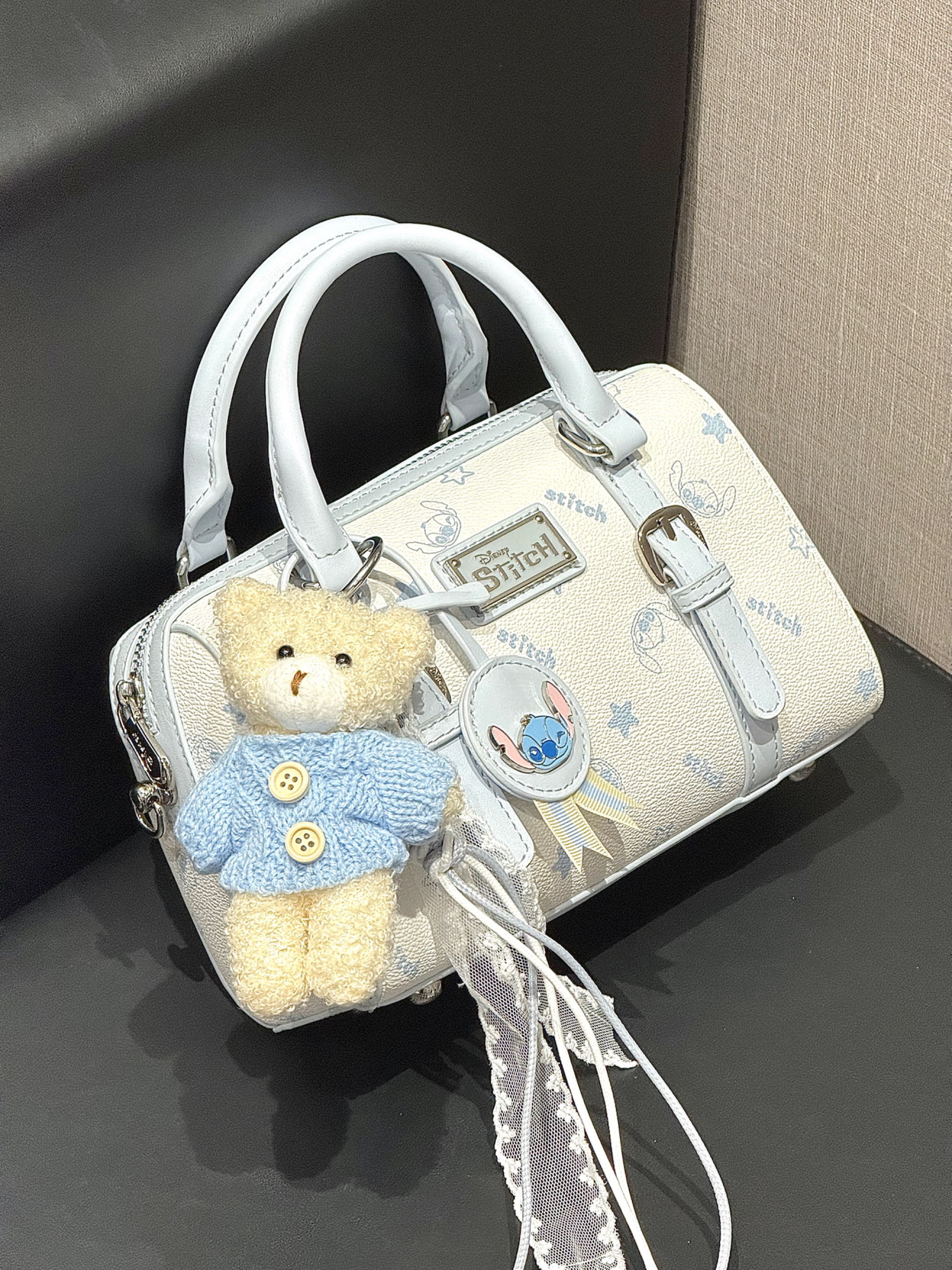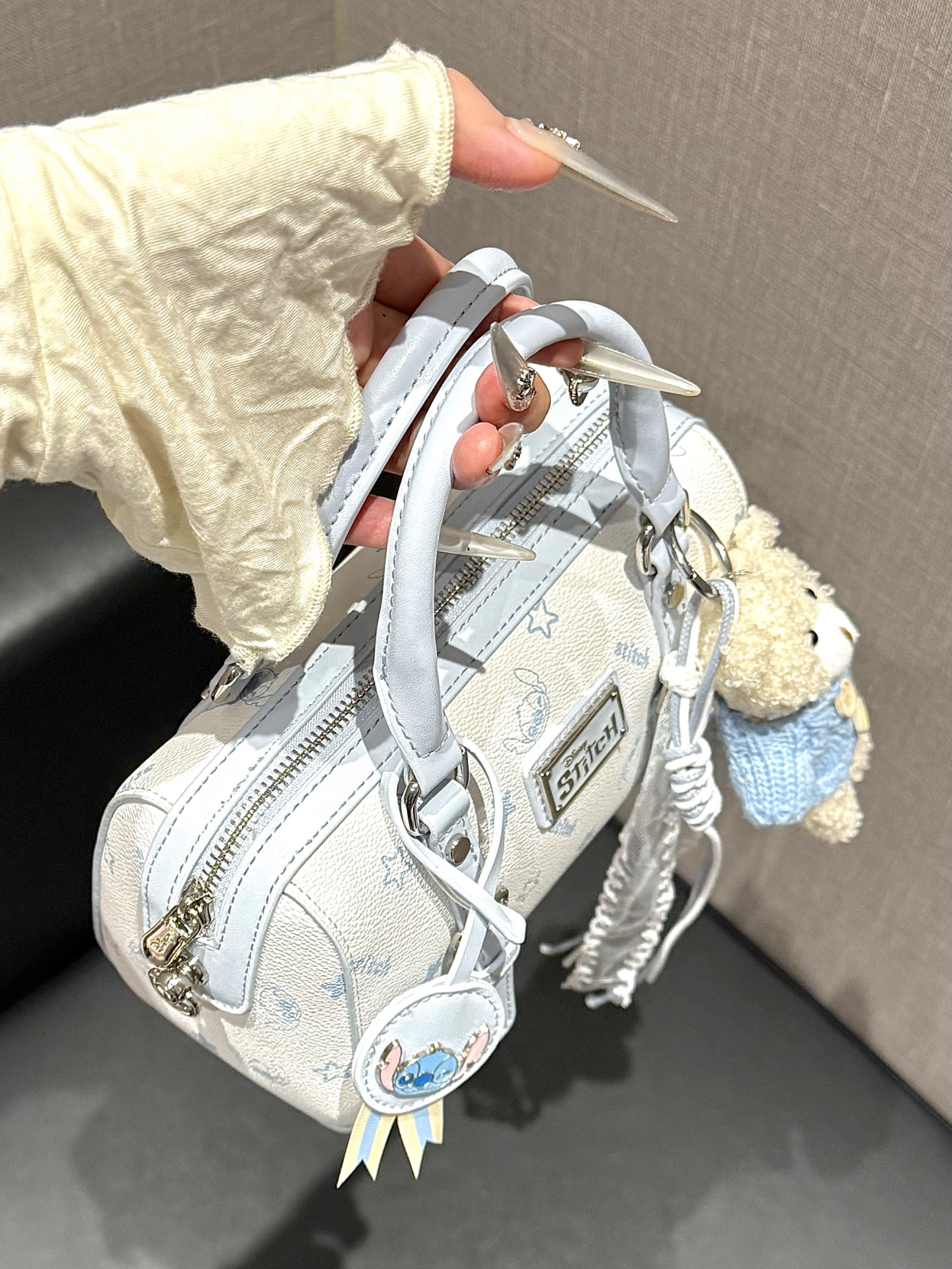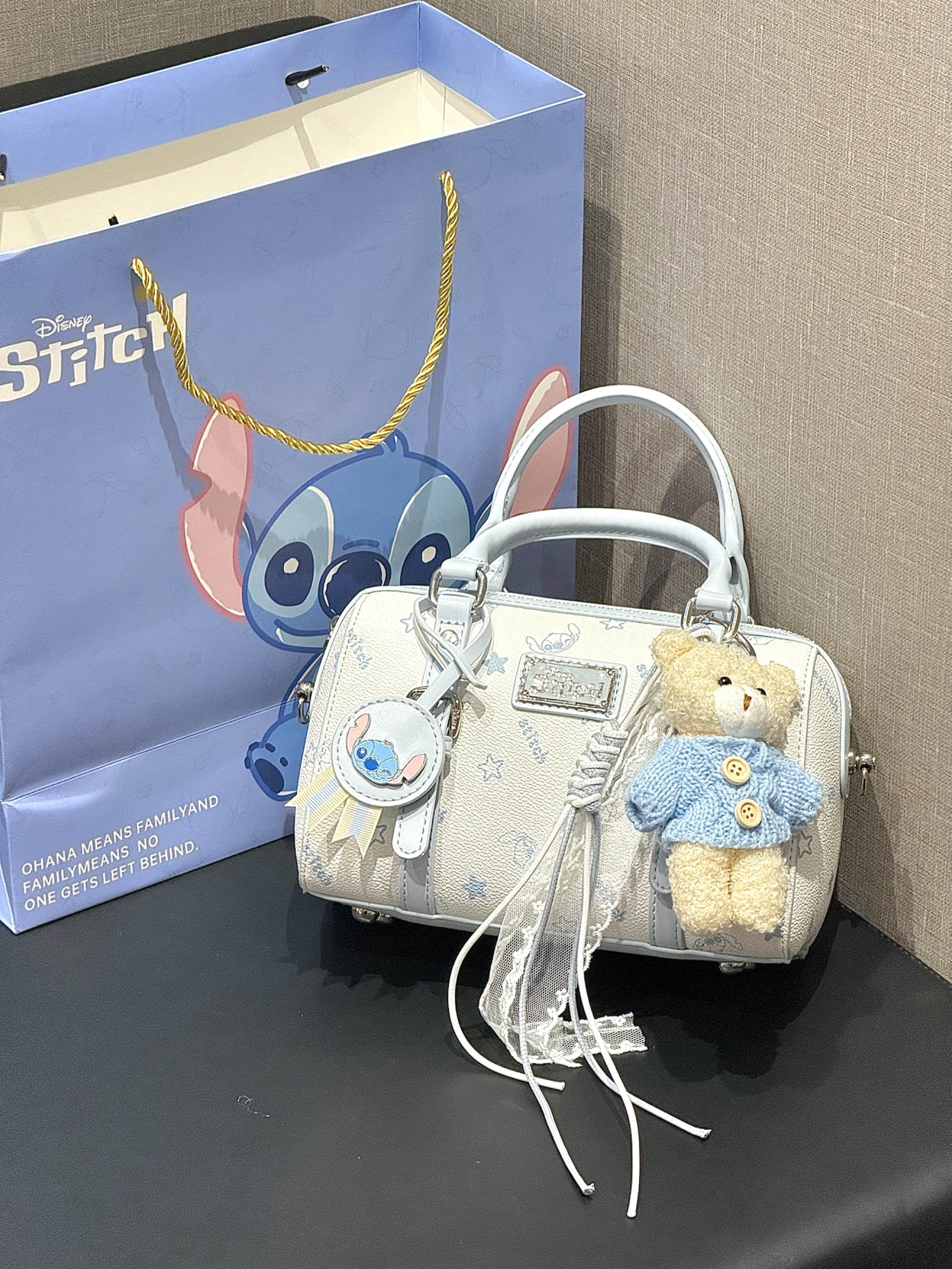 奶蓝没蓝的史迪仔包包我好喜欢呀 包身上印满了史迪仔的图案 还搭配了小熊的挂件吼吼看 容量也挺不错的 可以装日常出行的东西 我觉得出游或者通勤背都挺不错的呀!