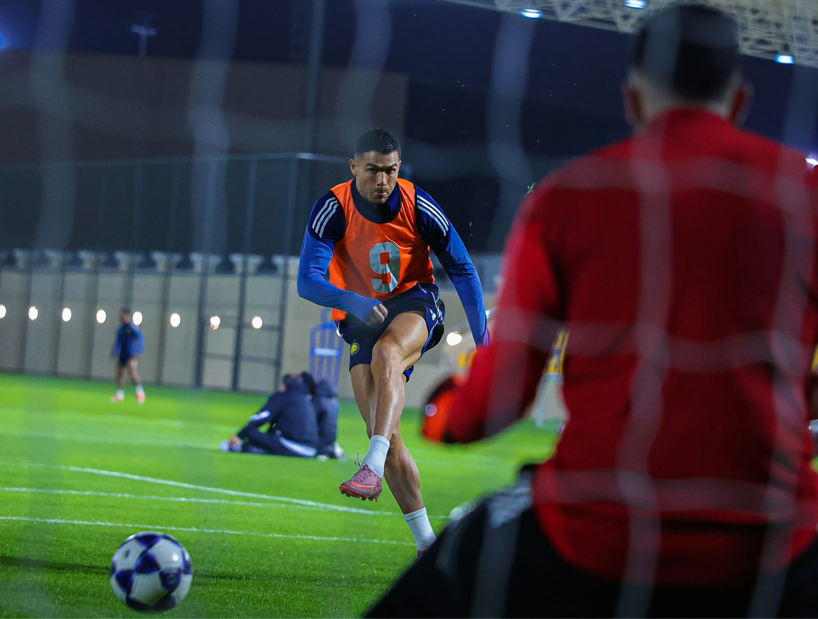 利雅得胜利的备战时刻满是故事感,更衣室里球员们身着深蓝队服并肩而立,C罗双臂交叉的神情透着对比赛的专注;训练场上画风切换,C罗穿着橙色训练背心射门的动作凌厉,菲利克斯高举双臂庆祝的模样尽显团队欢乐。深蓝主调搭配黄、橙训练背心,勾勒出球队张弛有度的备战节奏,每一个画面都是利雅得胜利向胜利进发的缩影~#利雅得胜利 #C罗 #菲利克斯