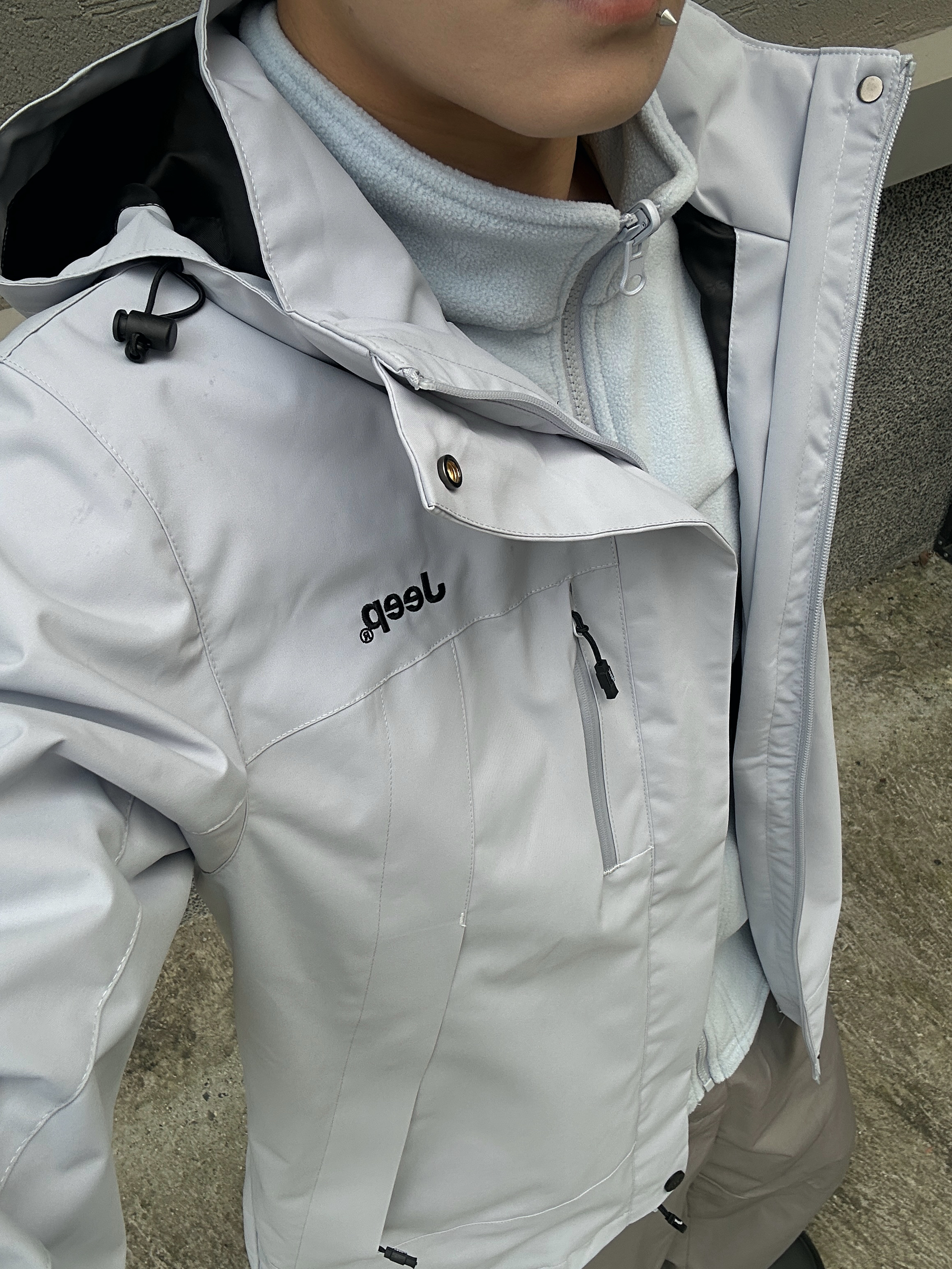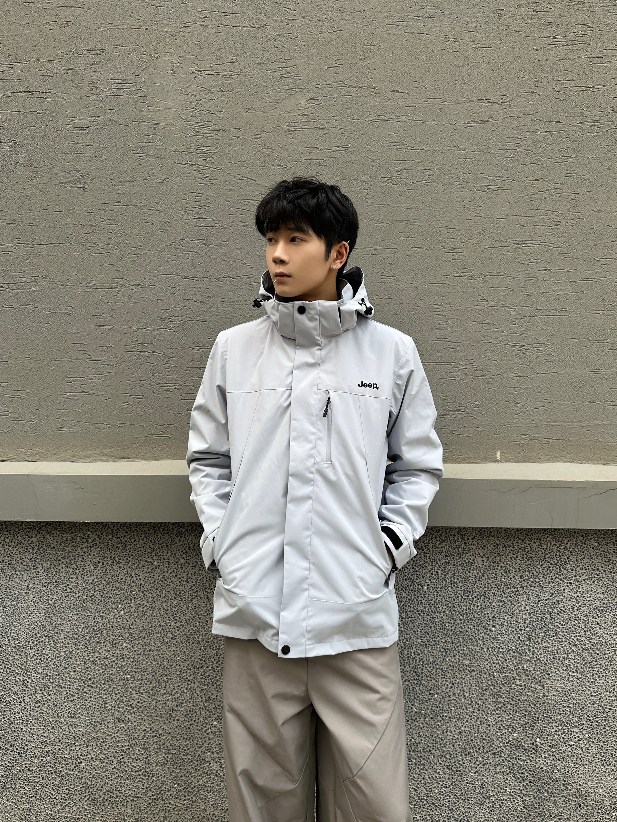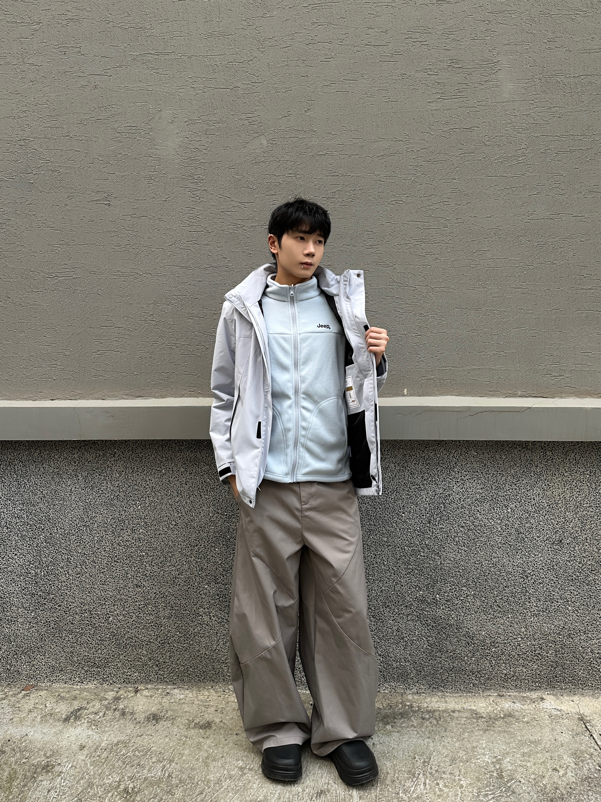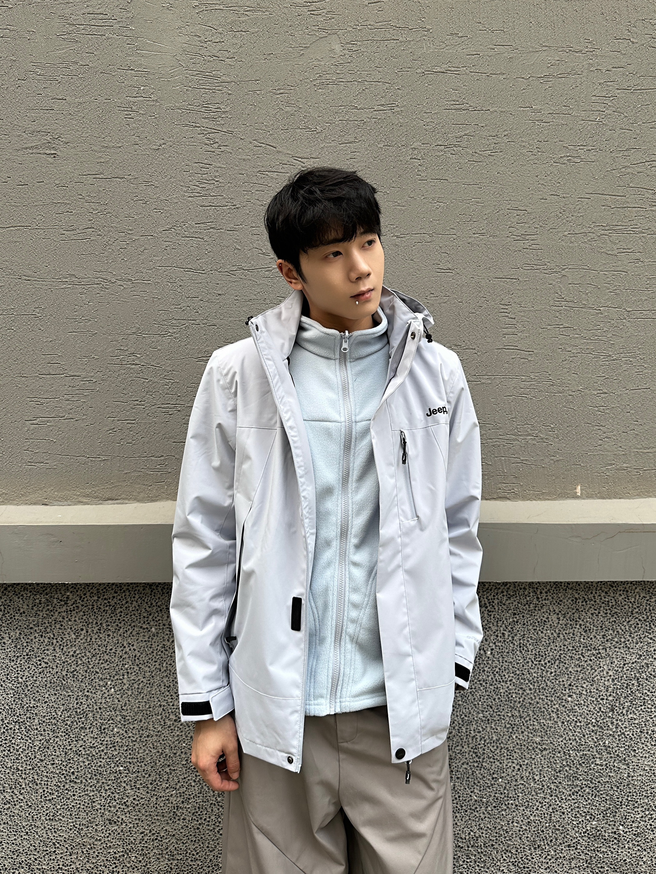 Jeep月光蓝冲锋衣直接焊在身上了! 清冷配色自带高级感 搭卡其阔腿裤+黑面包鞋,简约又时髦 抓绒内胆是可以拆卸的 外壳使用的防泼水面料 户外运动或城市通勤都能穿 一件的价格相当于有了三件衣服 我180/65kg穿的L码,感觉微宽松