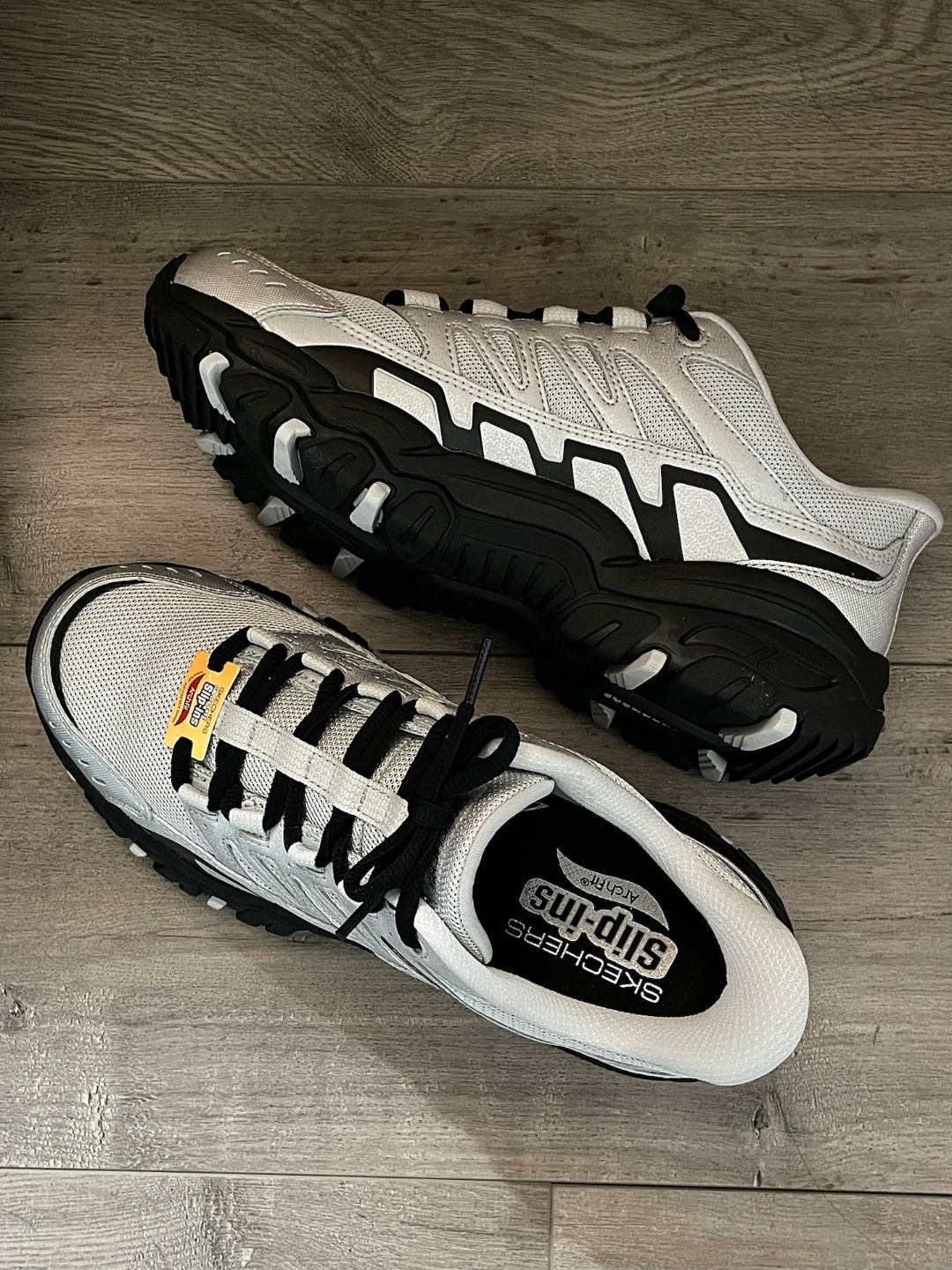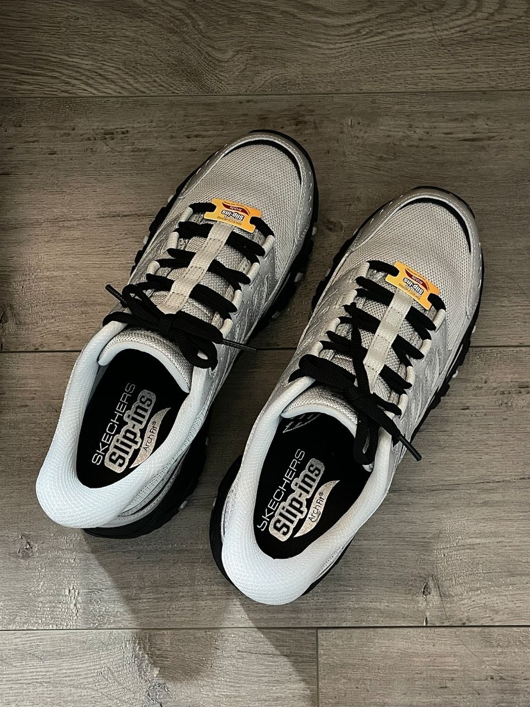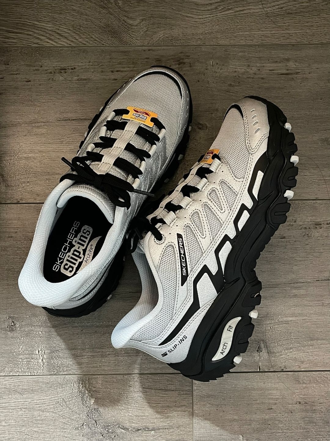 黑灰撞色的户外机能风,鞋身的网面材质透着清爽感,搭配工装裤、牛仔裤都超百搭,日常出街随便穿都不踩雷,简约又有设计感! #Skechers 上脚体验: ▫️穿脱巨方便:Slip-ins一脚蹬设计,不用解鞋带,出门秒穿,赶时间的时候太香了! ▫️脚感软到离谱:Arch Fit鞋垫的支撑性绝了,踩下去像踩在云朵上,暴走一万步脚底板都不酸,中底的缓震反馈超明显! ▫️透气不闷脚:大面积网眼鞋面,夏天...
