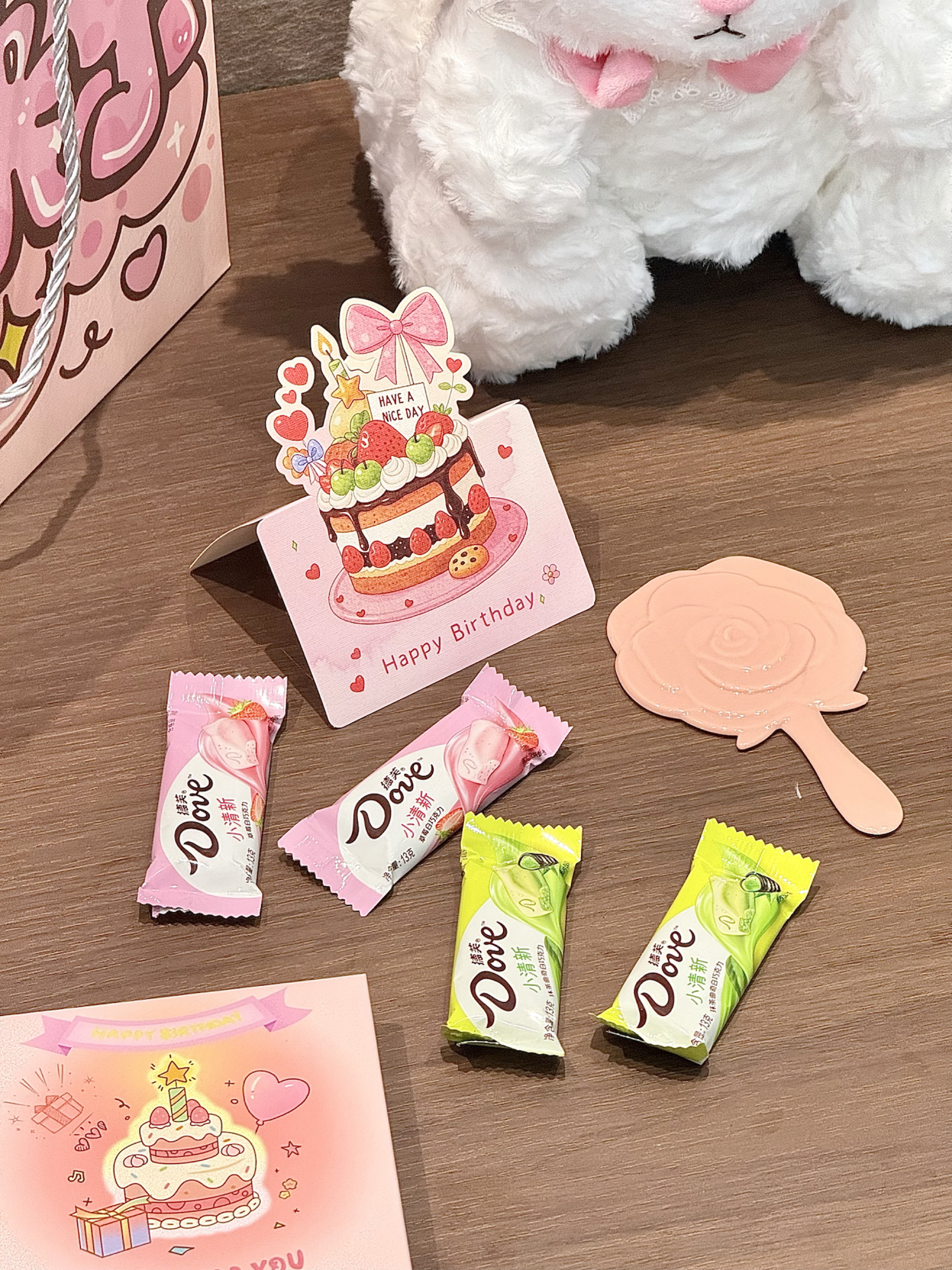 不愧是德芙啊也太懂女孩子了 打开里面是巧克力和小熊玩偶 小熊软软的好好rua 巧克力的口感也很丝滑 礼袋包装也是很有仪式感 我觉得这才是女孩子期待收到的生日礼物!