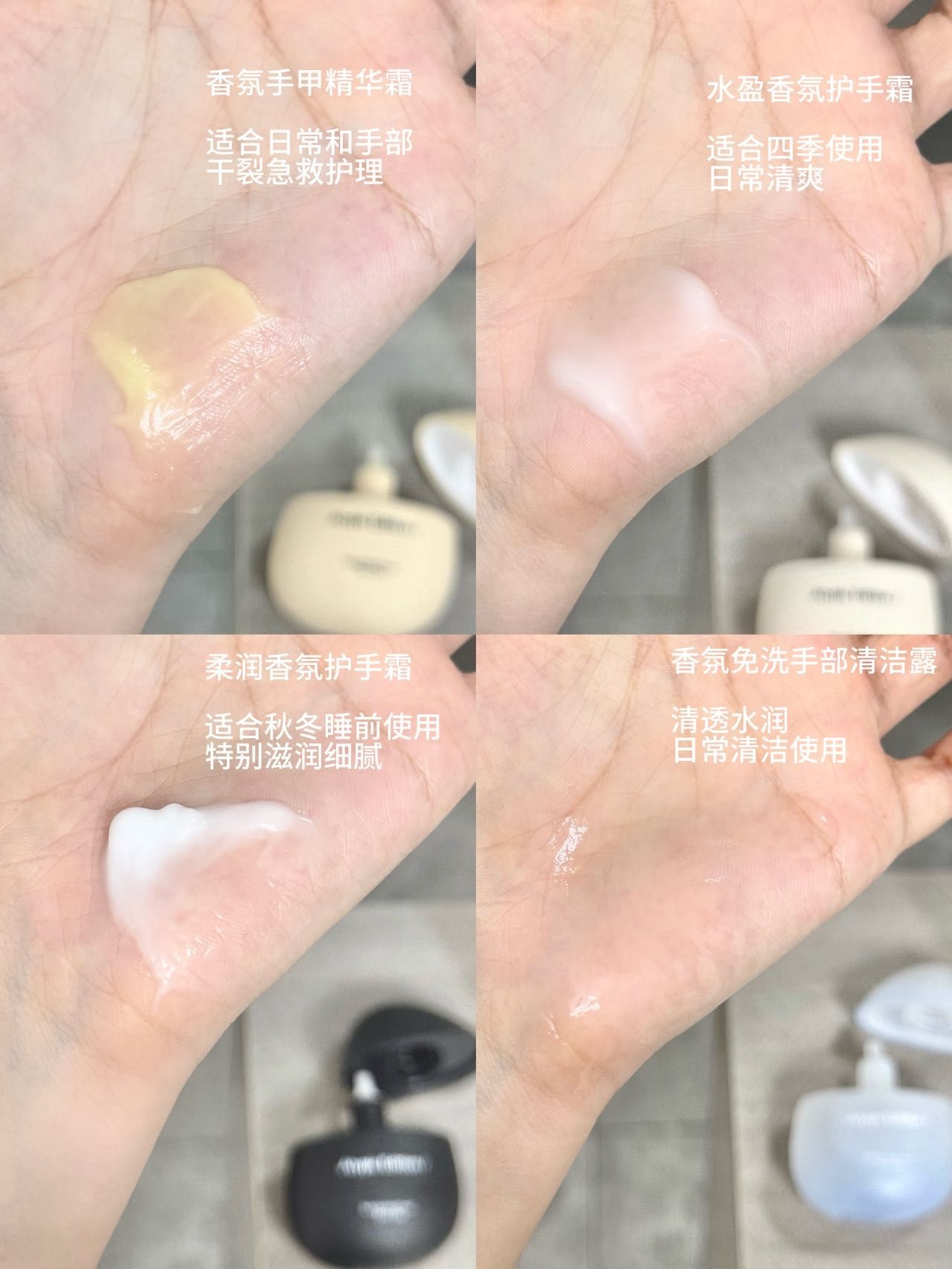 返常这个礼盒真的很精致哇 一盒里都是鹅卵石外观的护手霜➕手部清洁,一个个太精致可爱了吧 就连香味都特别迷人和令人回味 带着出门小巧而且涂着也方便 关键没有一点黏糊糊的感觉 保持手滋润的同时还一下就吸收了 牛的! 1️⃣香氛手甲精华霜(满桂茶尖) 适合日常和手部 干裂急救护理 2️⃣水盈香氛护手霜(冻海蔷薇) 适合四季使用 日常清爽 3️⃣柔润香氛护手霜(暖松化栗) 适合秋冬睡前使用 特别滋润细腻...