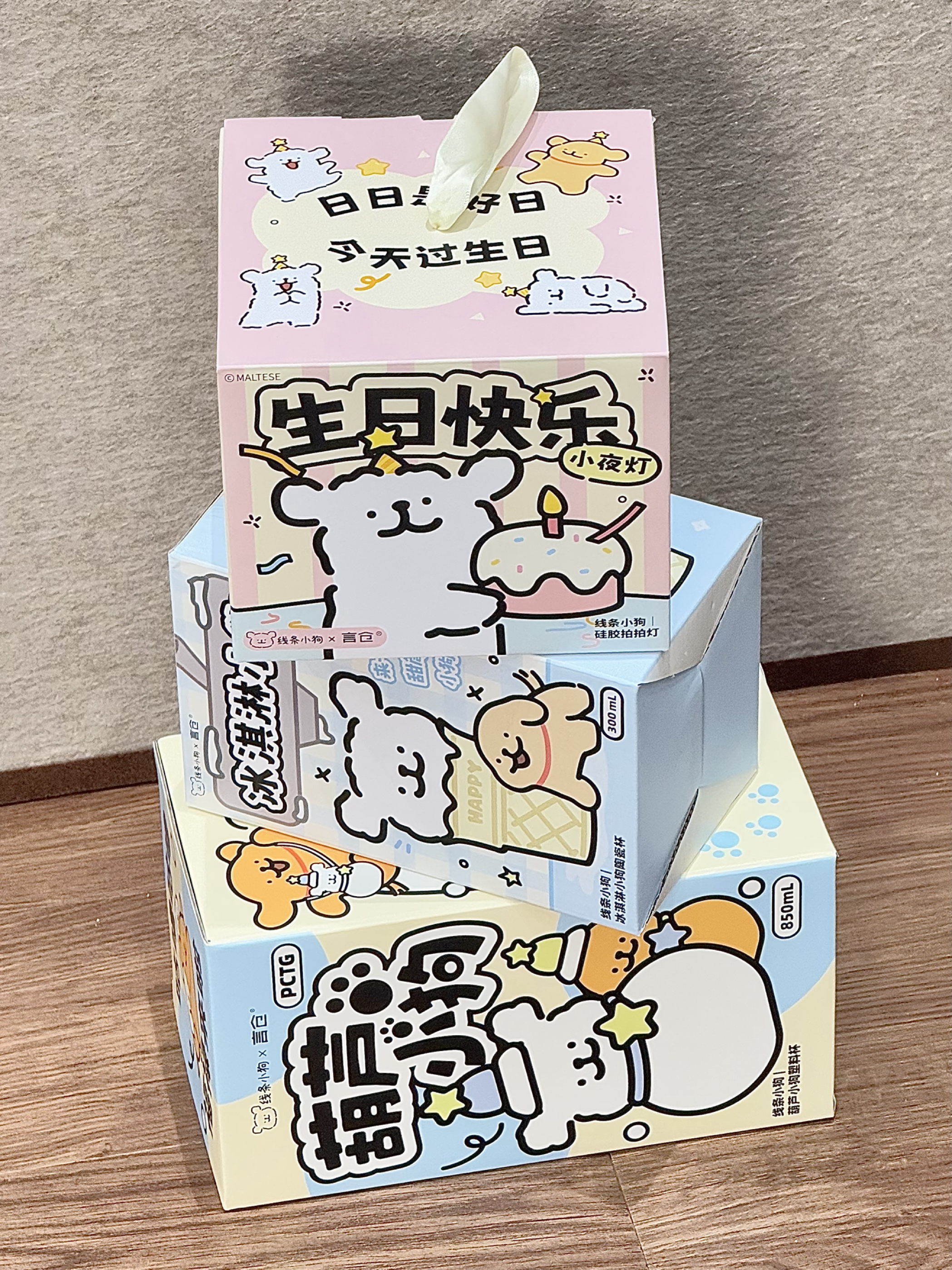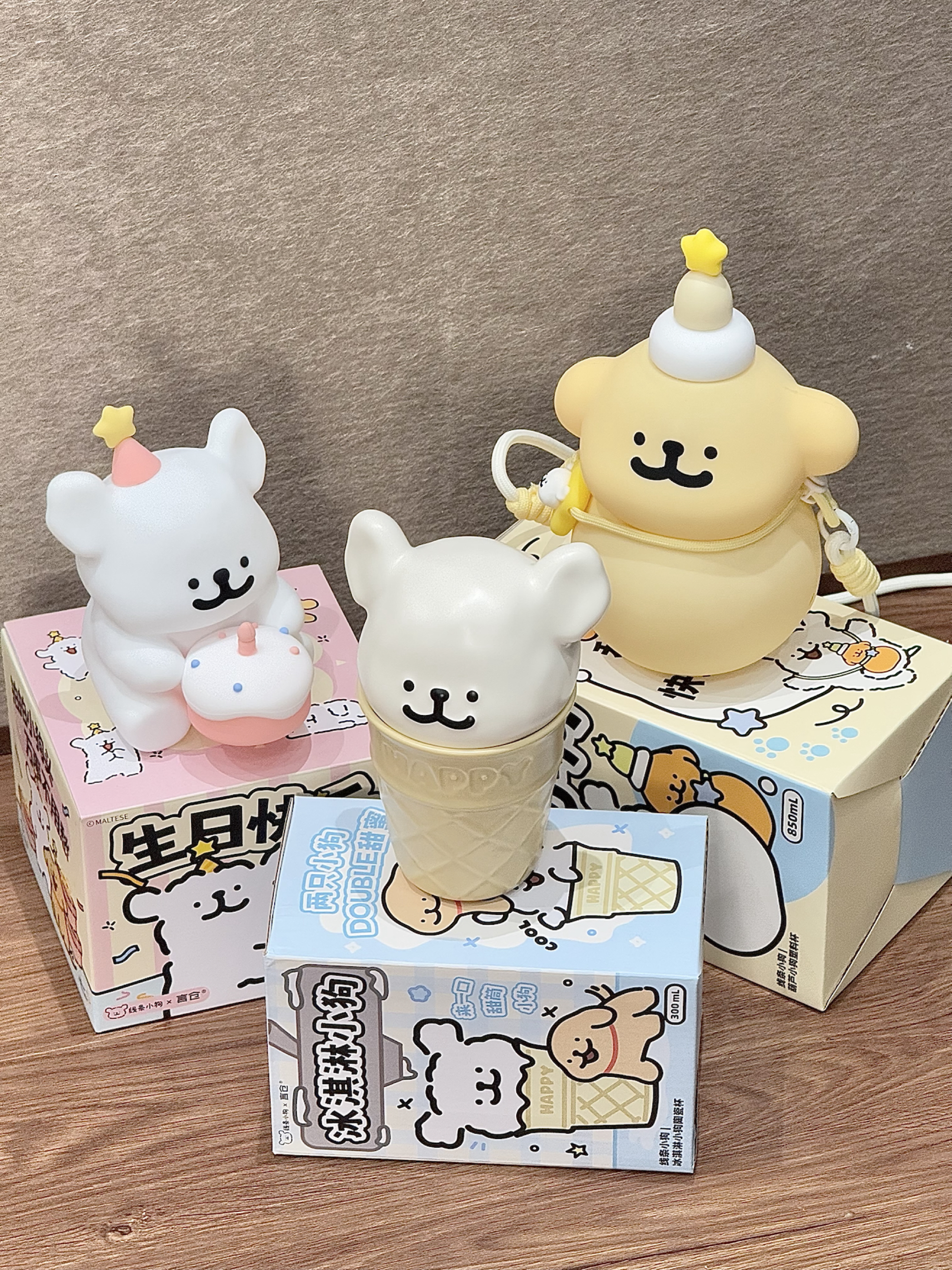 又是被言仓拿捏的一天啊 光是看包装就被可爱到了的程度 有小狗葫芦杯 小狗甜筒杯和小狗拍拍灯 每个都会把我可爱化了 我觉得送人也是嘎嘎有面的!