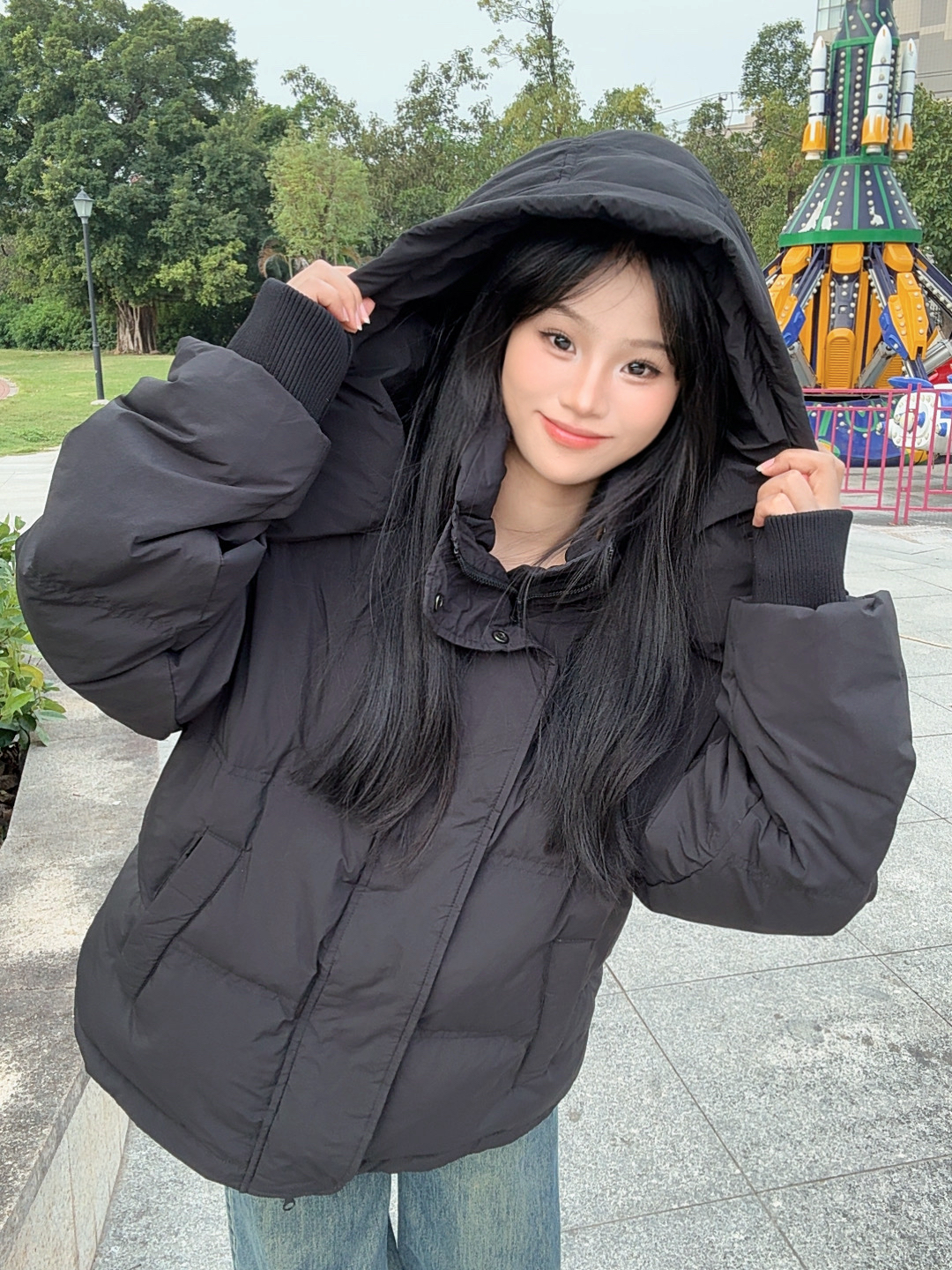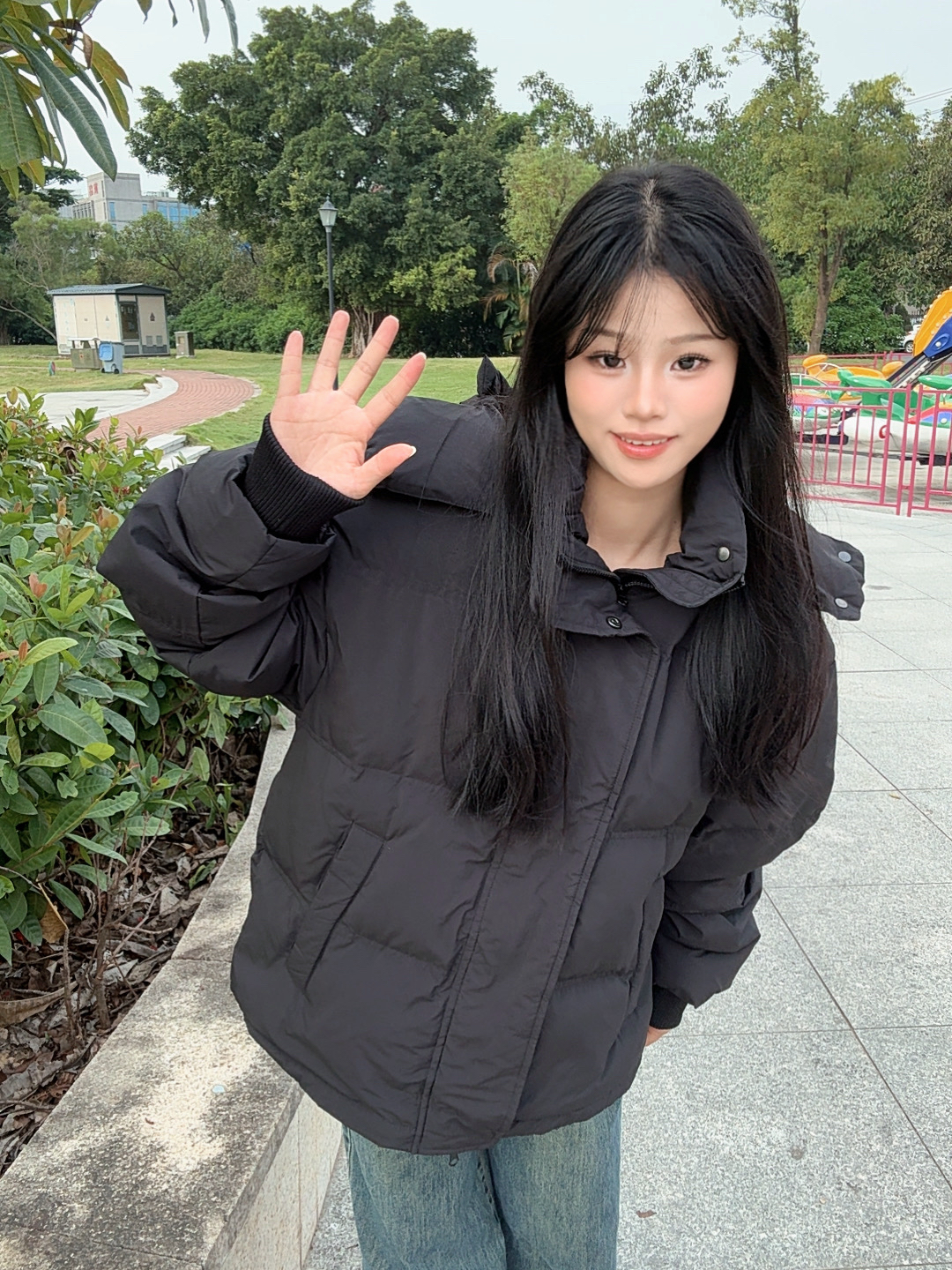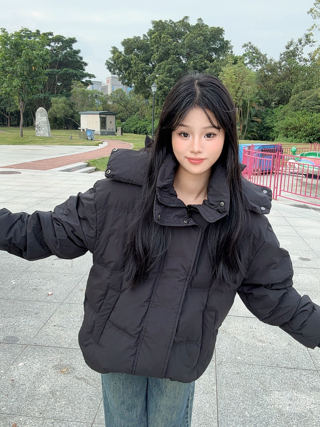 微褶的连帽设计,增加了层次感🤪🤪还让整件羽绒服看起来更有设计感😉😉美式工装风,宽松的版型,不挑身材的🥰🥰而且,它还有个超贴心的设计——帽子可脱卸👍👍里面填充的是蓬松的鹅绒,保暖是真好,穿上看舒服啦😚😚本人160体重96穿m码刚刚好✅✅