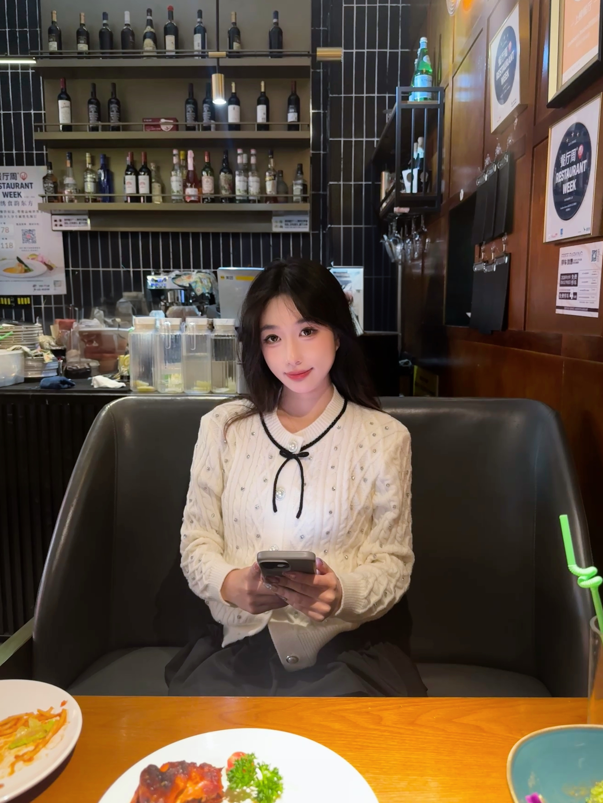 温柔系穿搭的精髓被这件钻饰针织开衫拿捏了,搭配黑纱裙甜妹感拉满,约会穿直接美出圈~
