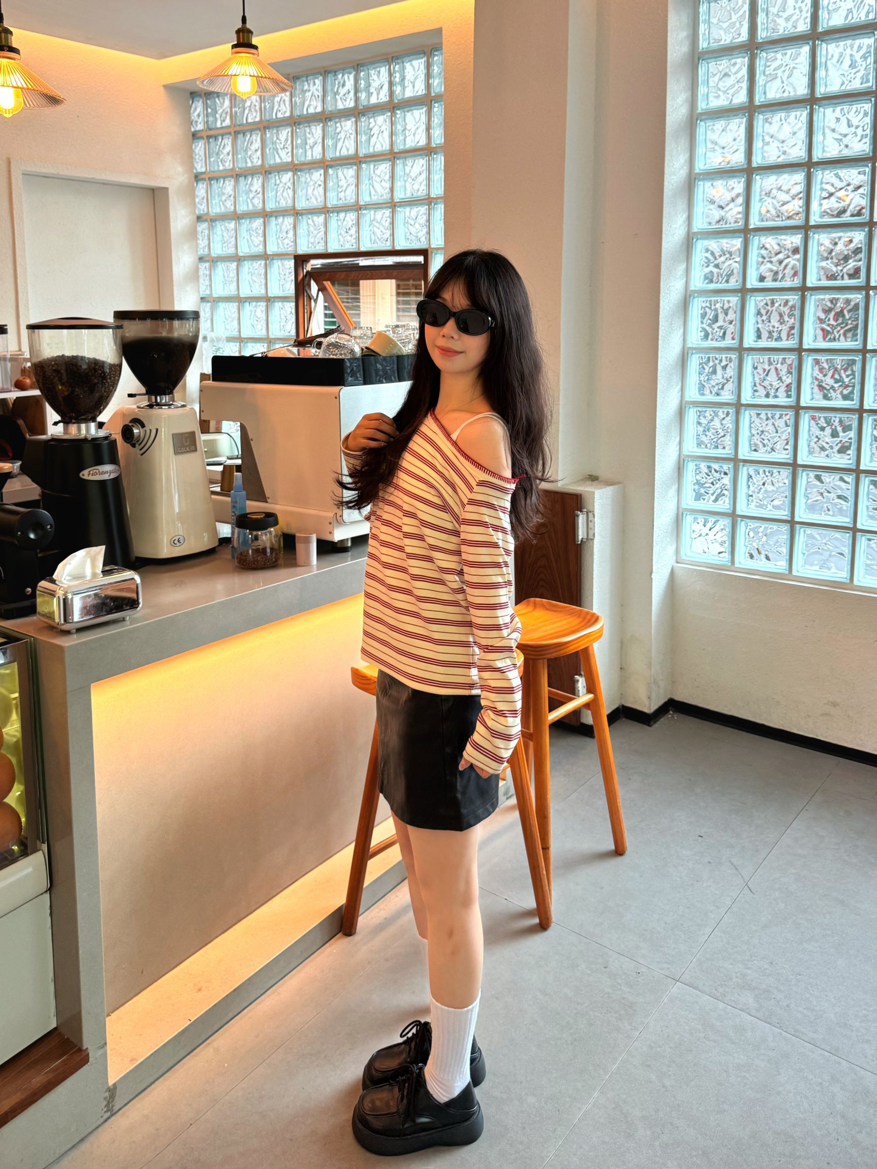 最近爱上的是这一副眼镜😎 这副墨镜简直是素颜星人的本命福音! 加宽的镜框设计,爱了爱了 戴上直接自带美颜滤镜😍😍😍 镜腿的弹性不错 不会夹耳朵,就算戴久了也舒服噢🤗 我搭配了一件露肩上衣,酷酷的嘿嘿嘿