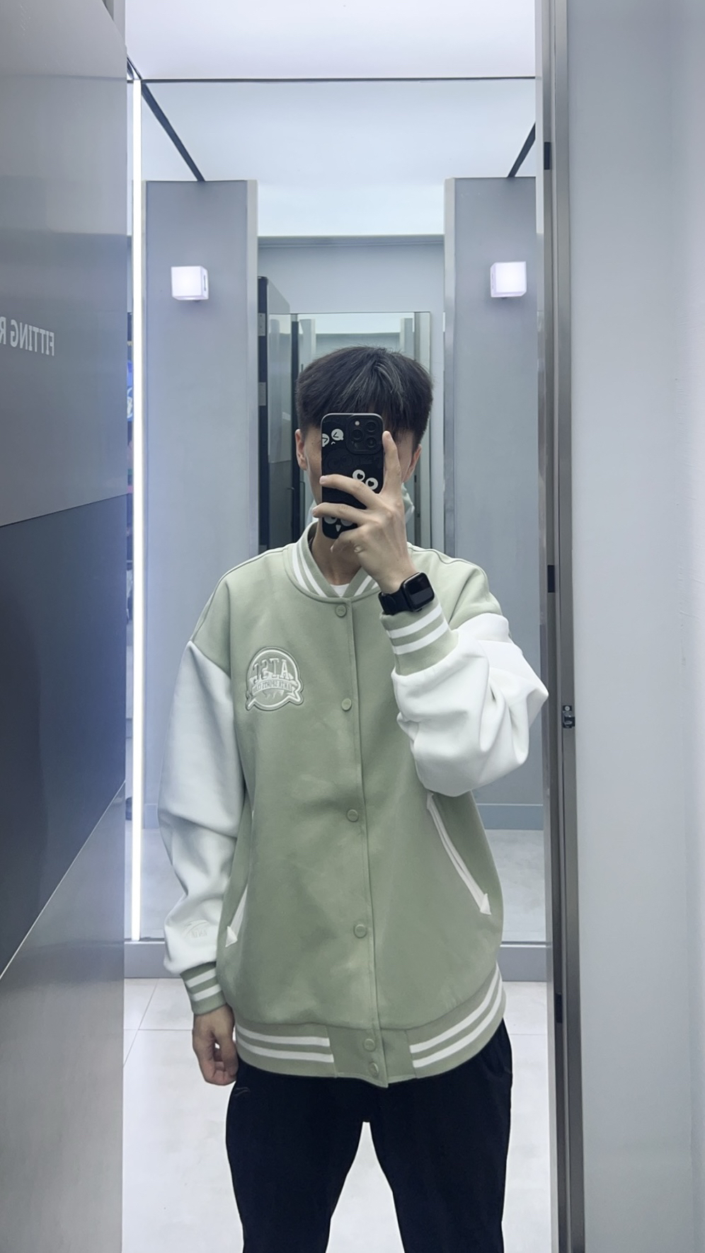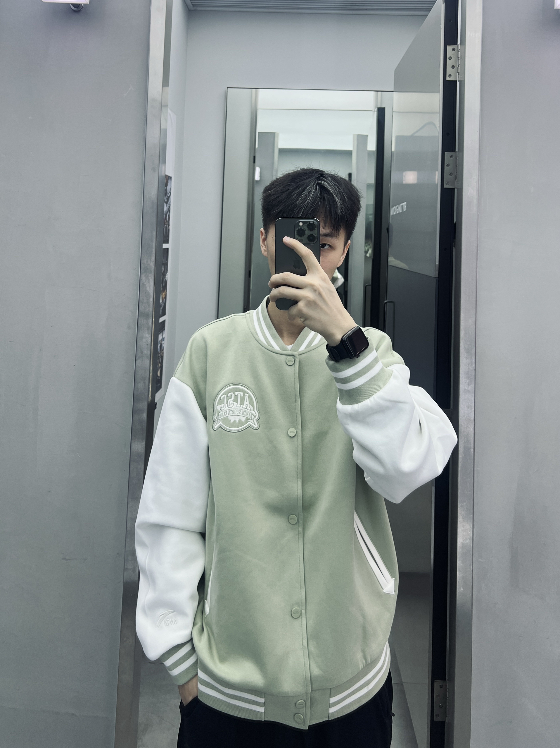 安踏这件棒球服外套不错喔! 配色颜值好看,宽松版型很舒服! 穿衣好搭配👍