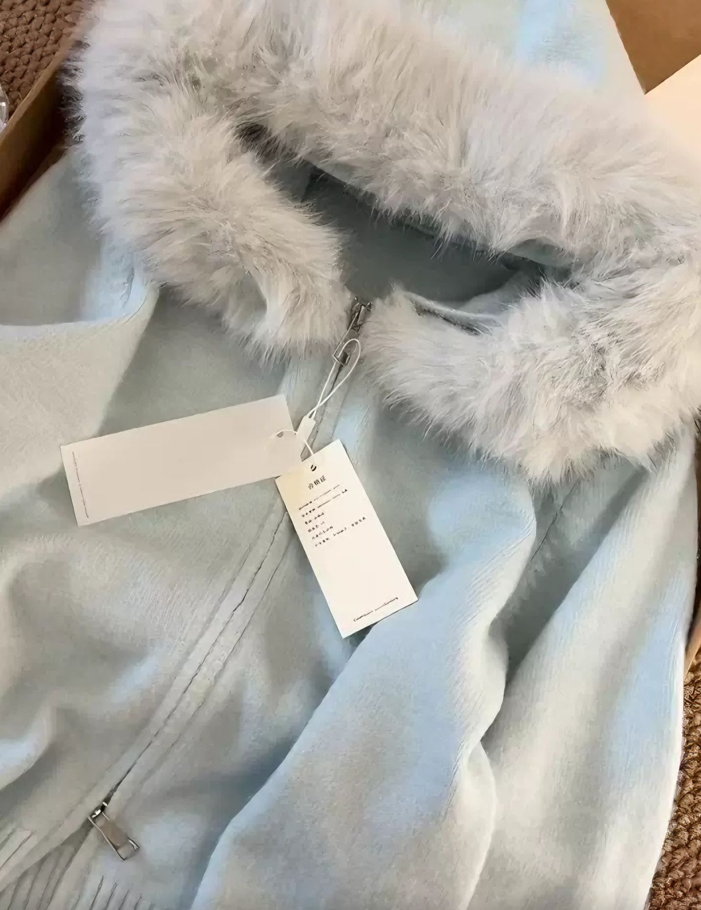 谁懂啊!这款baby蓝毛领针织开衫直接把冬日温柔感拉满了✨ 第一眼就被这个奶fufu的baby蓝戳中,不是那种俗气的浅蓝,而是自带柔光滤镜的清新色调,黄皮穿也巨显白,素颜出门都能扛住镜头! 领口的毛绒装饰是点睛之笔,软乎乎的仿毛材质摸起来超舒服,不会扎皮肤,还能悄悄修饰脖颈线条,让整体造型更有层次感。针织面料选的是软糯的亲肤款,厚度适中,秋冬内搭叠穿大衣、羽绒服,或者直接外穿配牛仔裤、小裙子都超...