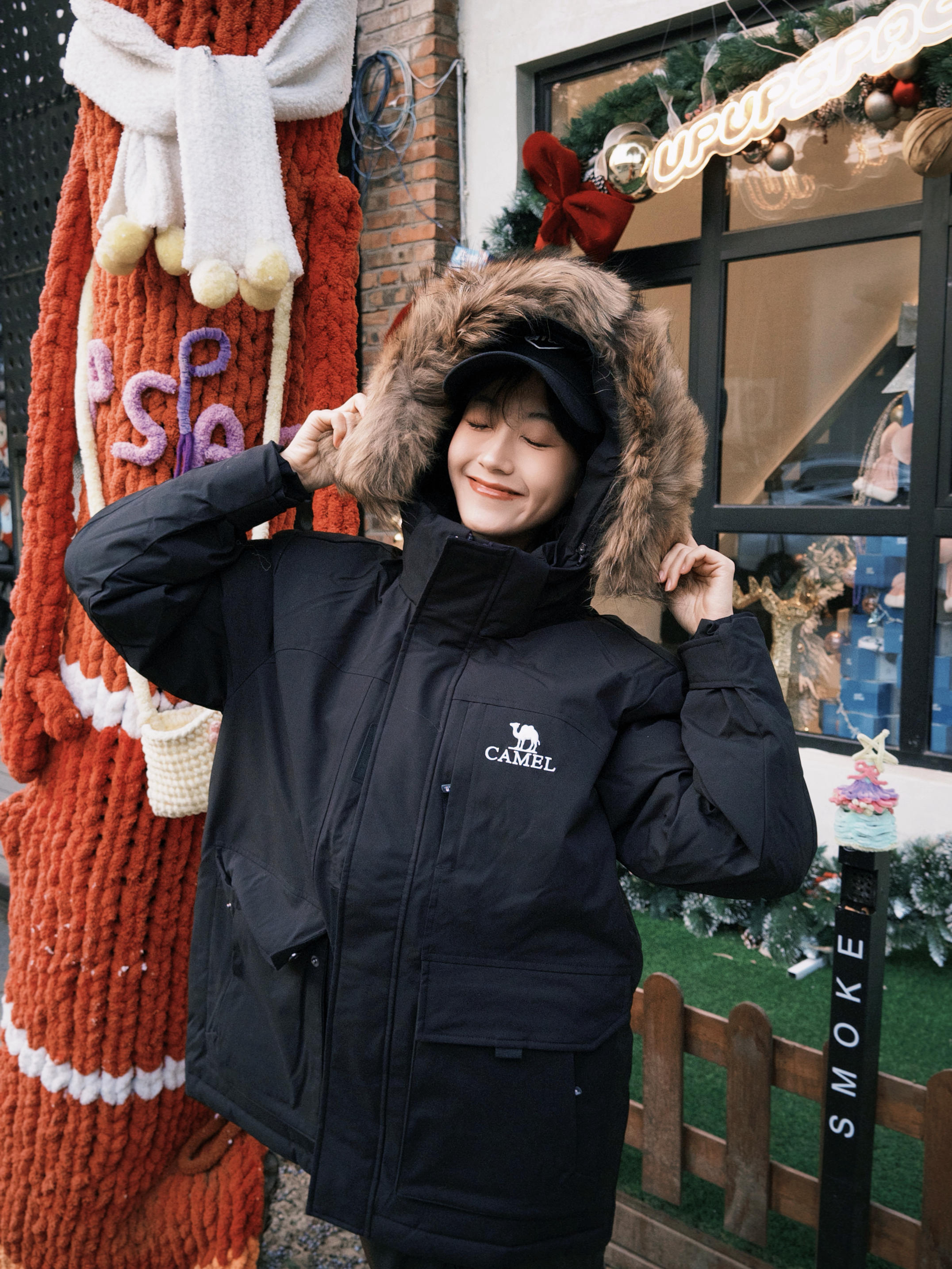 本篇笔记关联了Camel/骆驼 暖绒系列防泼水大口袋工装加厚防寒保暖貉子大毛领700蓬脱卸帽羽绒服 女装 734CF09617 幻影黑等商品,为用户提供真实的使用体验和购买参考。