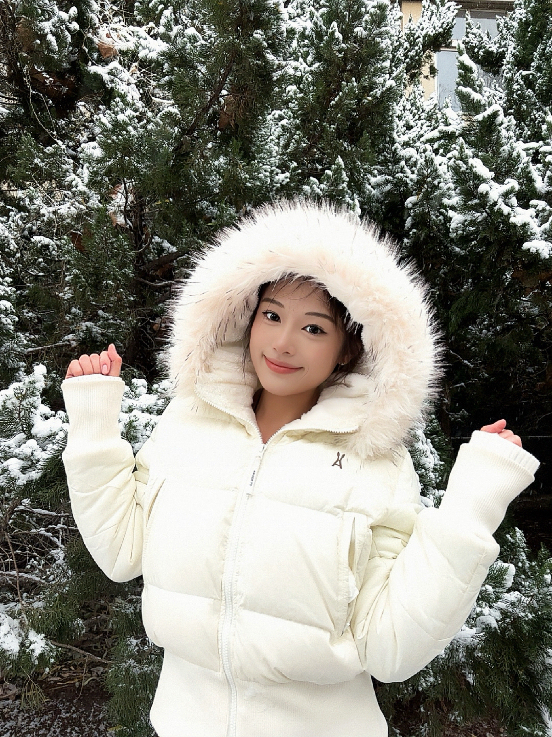 雪天穿这件白色羽绒服也太绝了!大毛领设计自带氛围感,充绒量足保暖又不臃肿,亮白色在雪景里超出片。宽松版型不挑身材,搭配围巾帽子就能解锁冬日甜妹风~