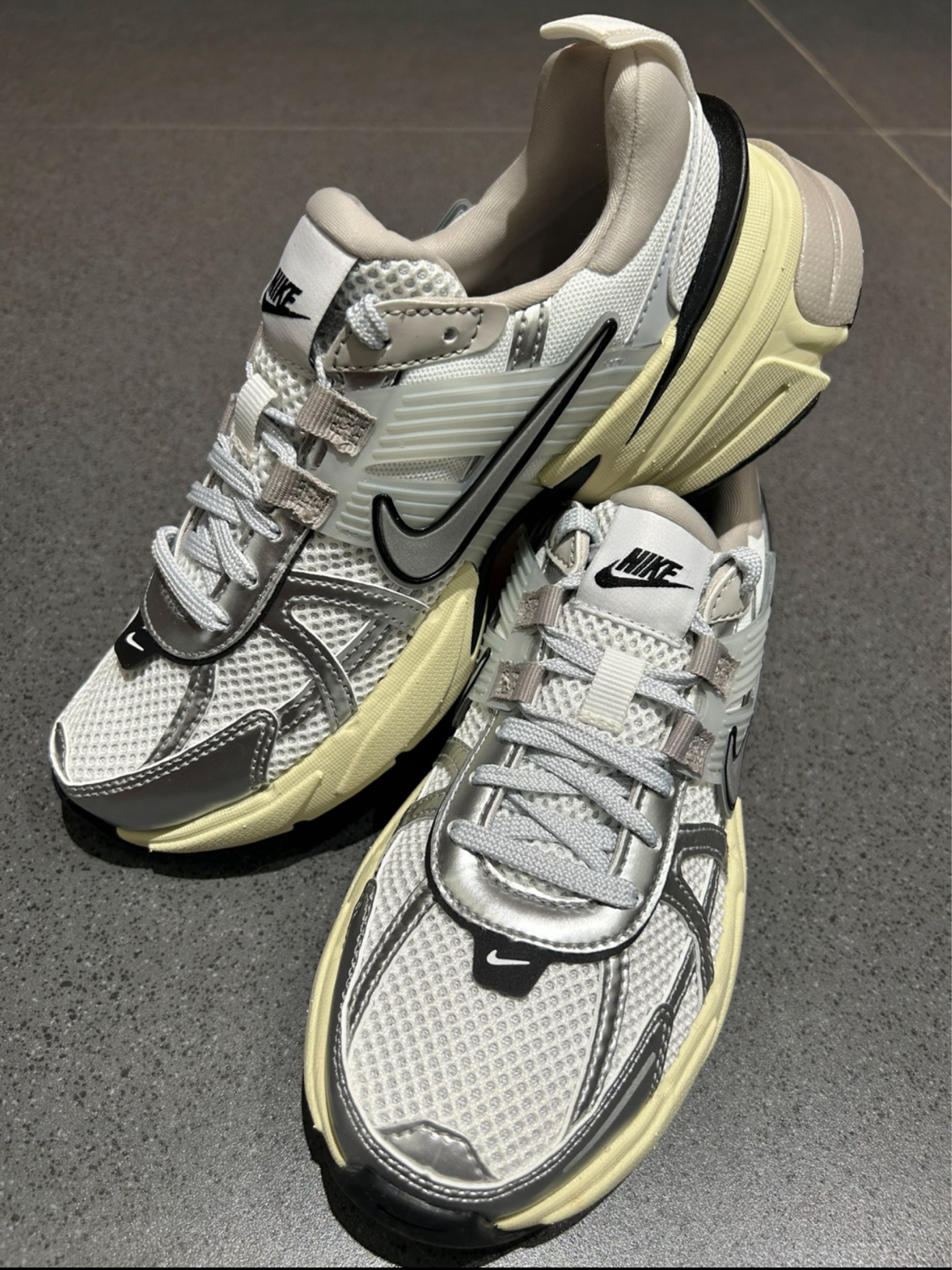 今天拍摄分享的是复古跑鞋Nike V2K Run Runtekk 第一眼的颜值就足够吸引人 鞋子以金属银为主色 Swoosh也是用金属银色来呈现 极具未来感 但鞋子的设计又十分复古 大面积网眼设计 鞋子中底处由做旧氧化设计的Cushlon 泡绵打造 不但个性十足而且还有增高效果 是近年难的Nike非常成功的人气复古鞋款之一