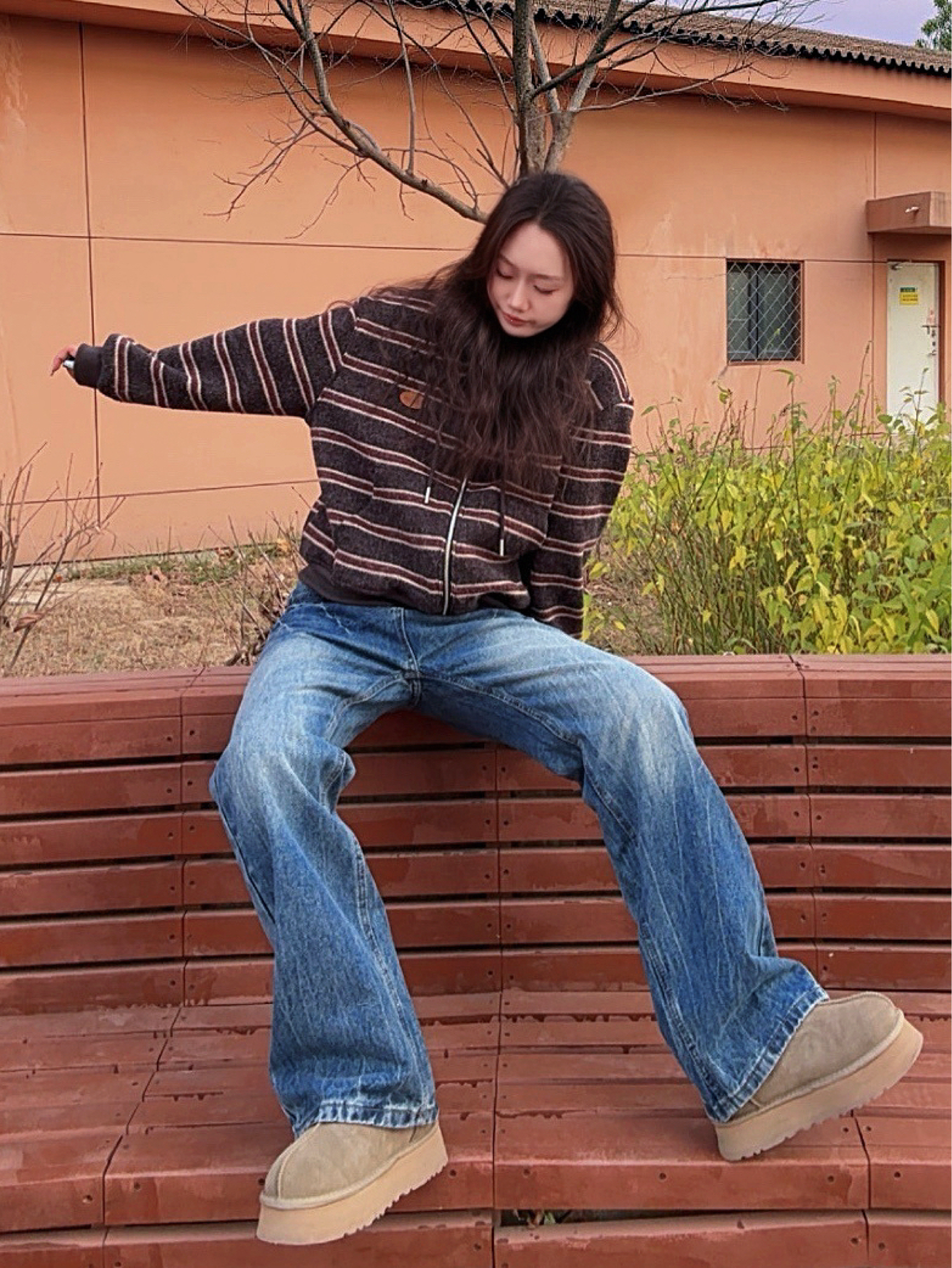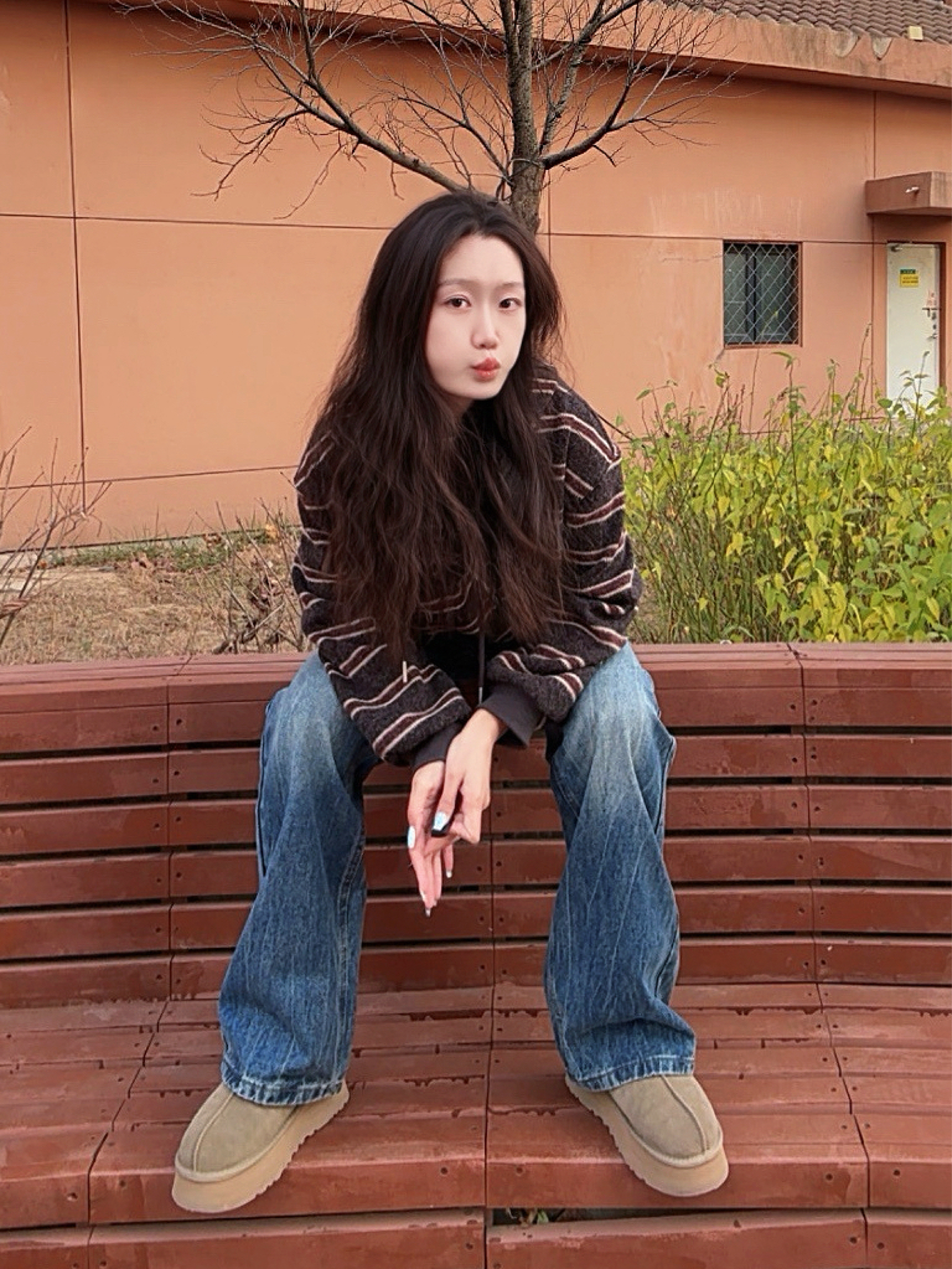 Get一件韩里韩气的条纹上衣👔 红棕配色条纹真的很适合秋冬❄️ 而且衣服很厚实 面料超级抗风🌬️ 搭配牛仔裤、休闲裤都可以哦 可以轻松出片📸