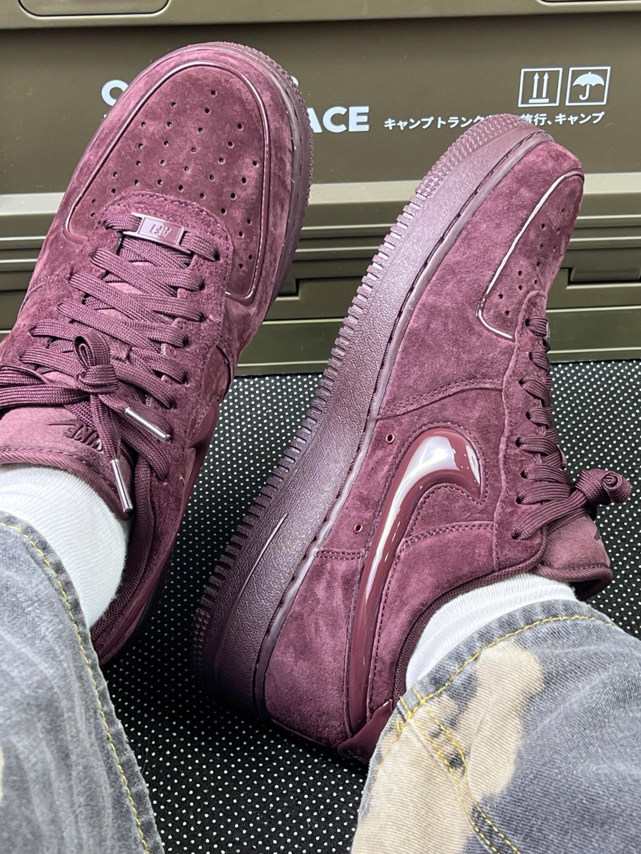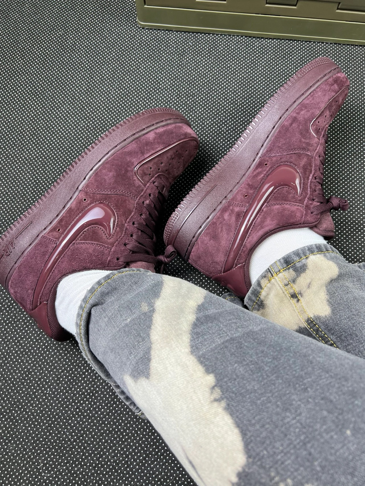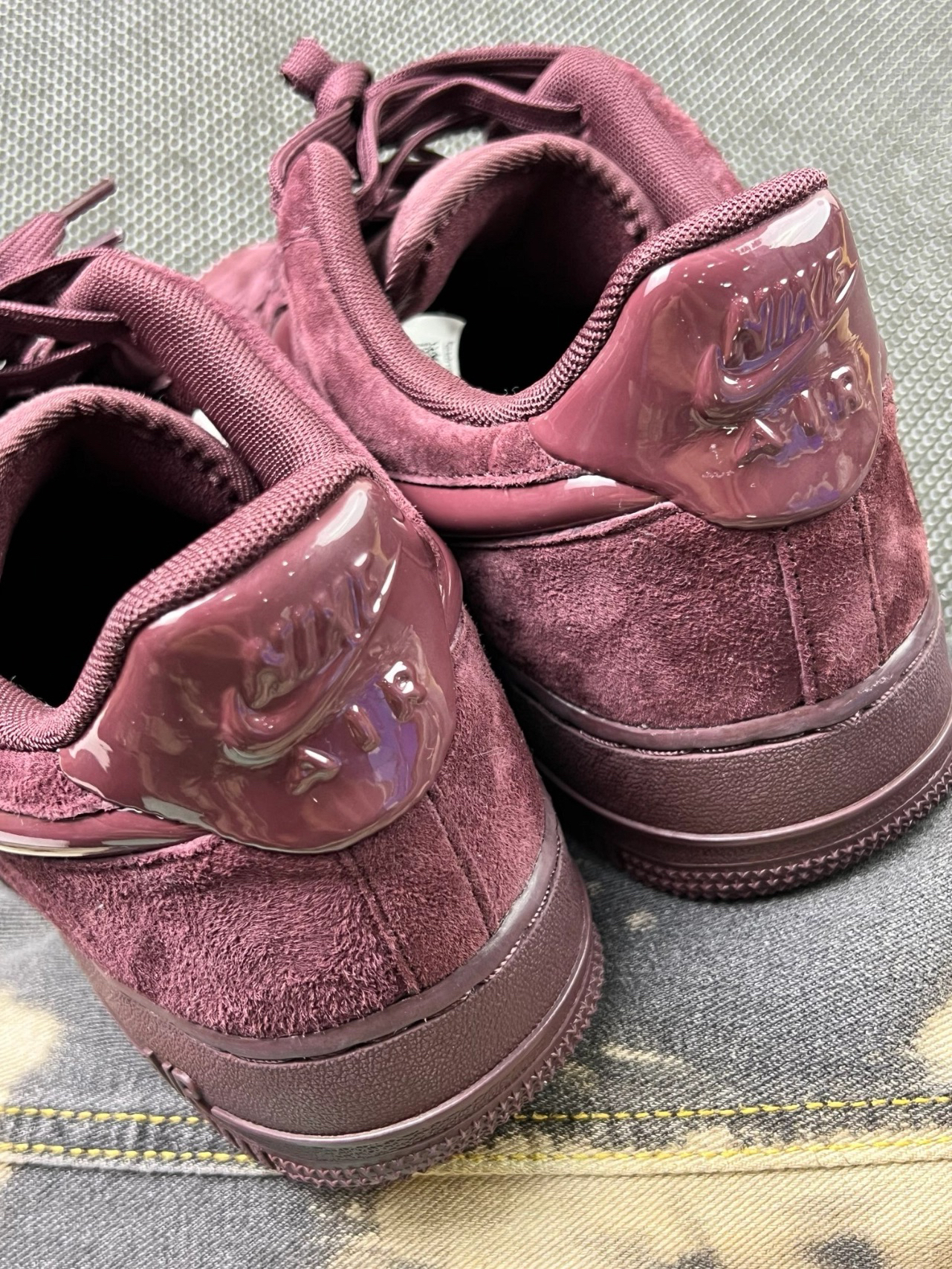 这双酒红色的AF1,整体质感很稳[爱心_blue][爱心_blue],鞋面的翻毛皮手感不错,摸起来很舒服。[机智_blue]鞋身的漆皮部分挺有光泽,和翻毛皮的搭配让整体风格很特别。穿上去包裹感还可以,走路也比较稳,中底的缓震表现也算合格,日常通勤足够用了 不过,它的缺点也很明显:翻毛皮很容易脏,尤其是这种深色,一点灰尘都看得清清楚楚,打理起来挺麻烦。而且漆皮部分时间长了容易有划痕,光泽感会下降。尺...