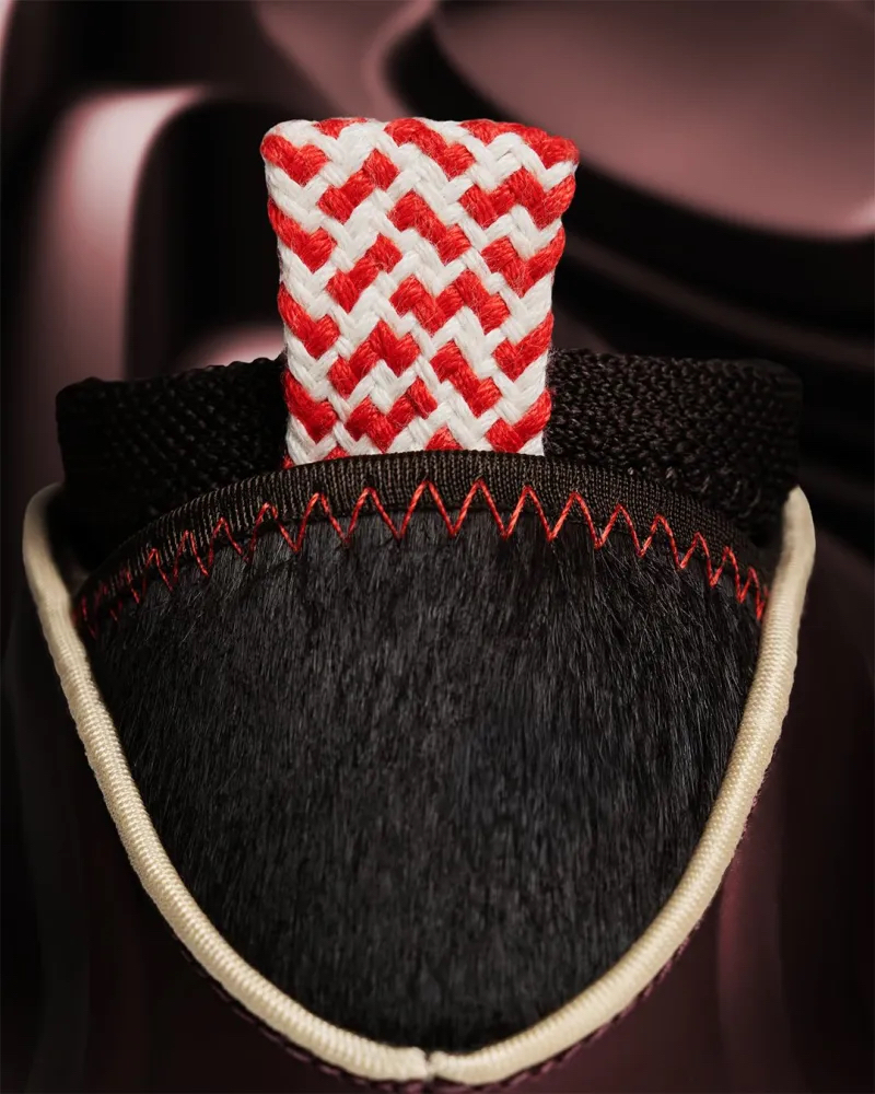 这双的配色简直是为新年量身打造!鞋身以深邃酒红为基底,Primeknit 360 编织鞋面呈现 “年轮” 般的独特纹路,光线底下泛着温润光泽,鞋跟处点缀的马毛材质,瞬间让人联想到赤兔马的飘逸鬃毛,质感直接拉满。酒红主色搭配金属金色细节点缀,既显贵气又不浮夸,春节穿搭氛围感直接拉满,日常穿也沉稳耐看。
