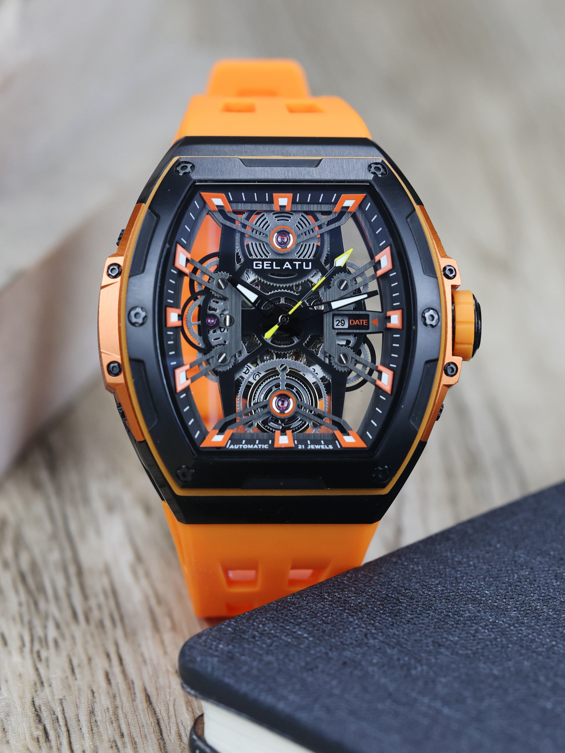 本篇笔记关联了GELATU格拉图 大黄蜂系列 镂空运动潮酷全自动机械男士手表 橙等商品,为用户提供真实的使用体验和购买参考。