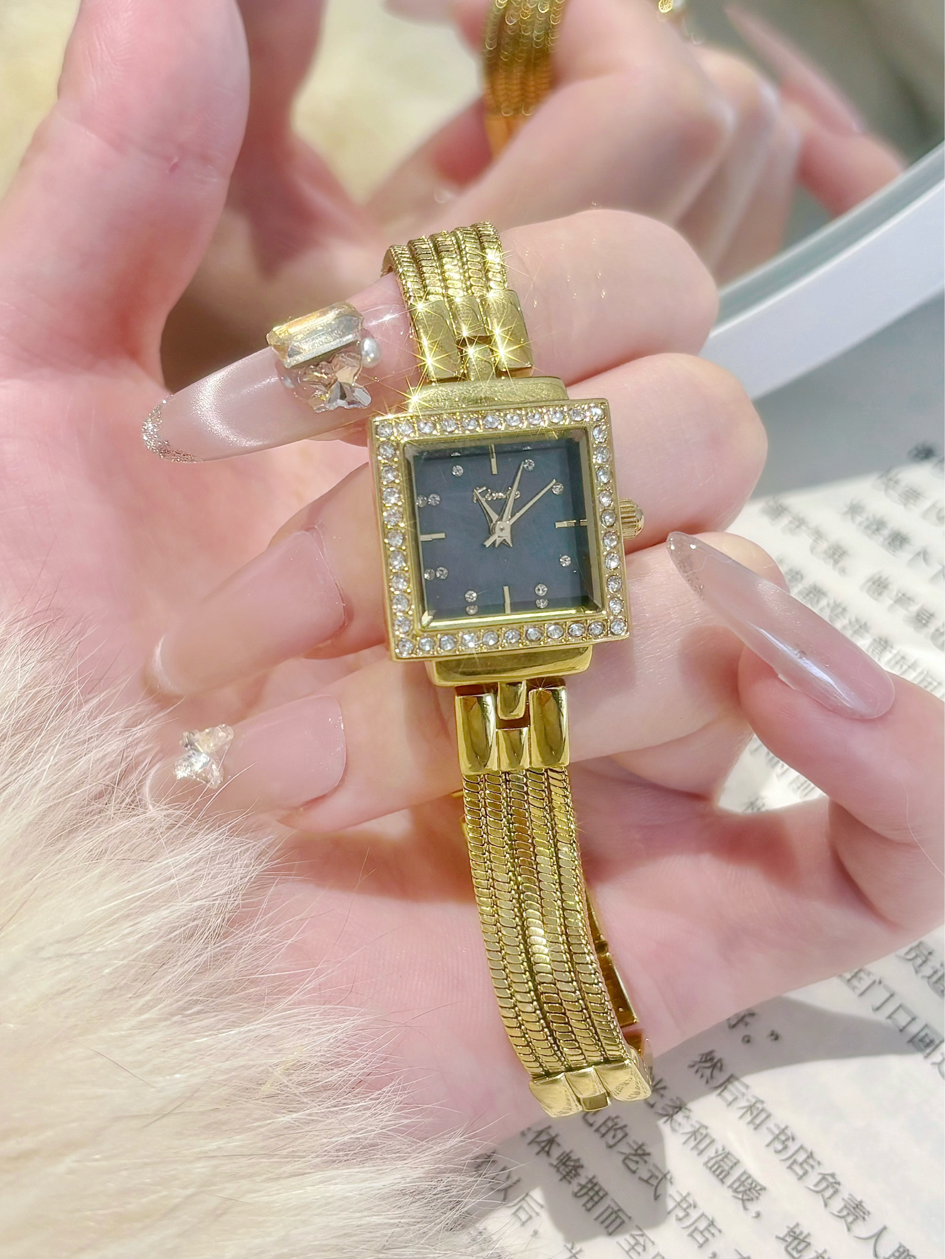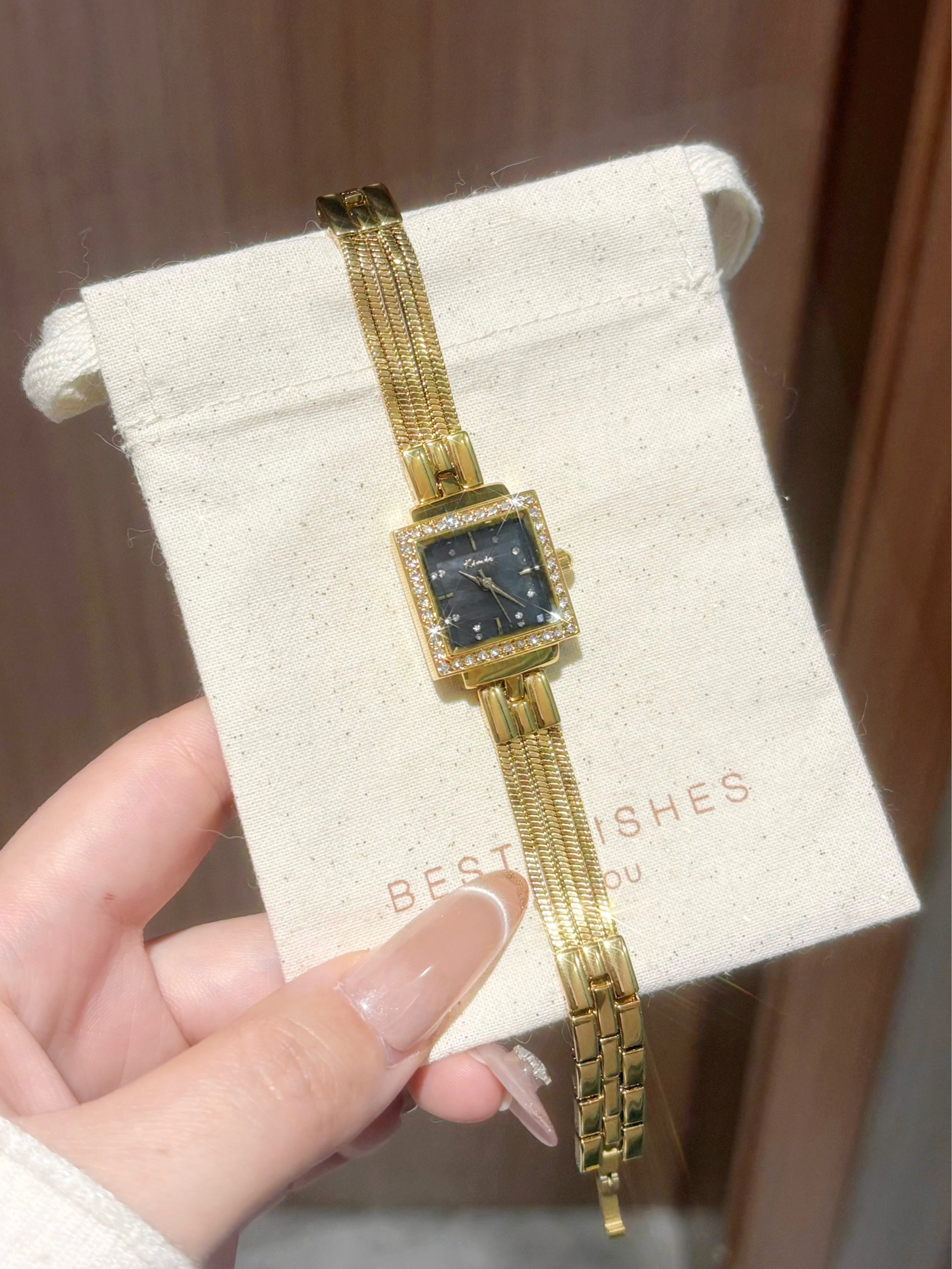 本篇笔记关联了Kimio/金米欧 小金砖镶钻复古小方表经典时尚高级感百搭闪耀小众满天星防水石英女士手表 黑金等商品,为用户提供真实的使用体验和购买参考。