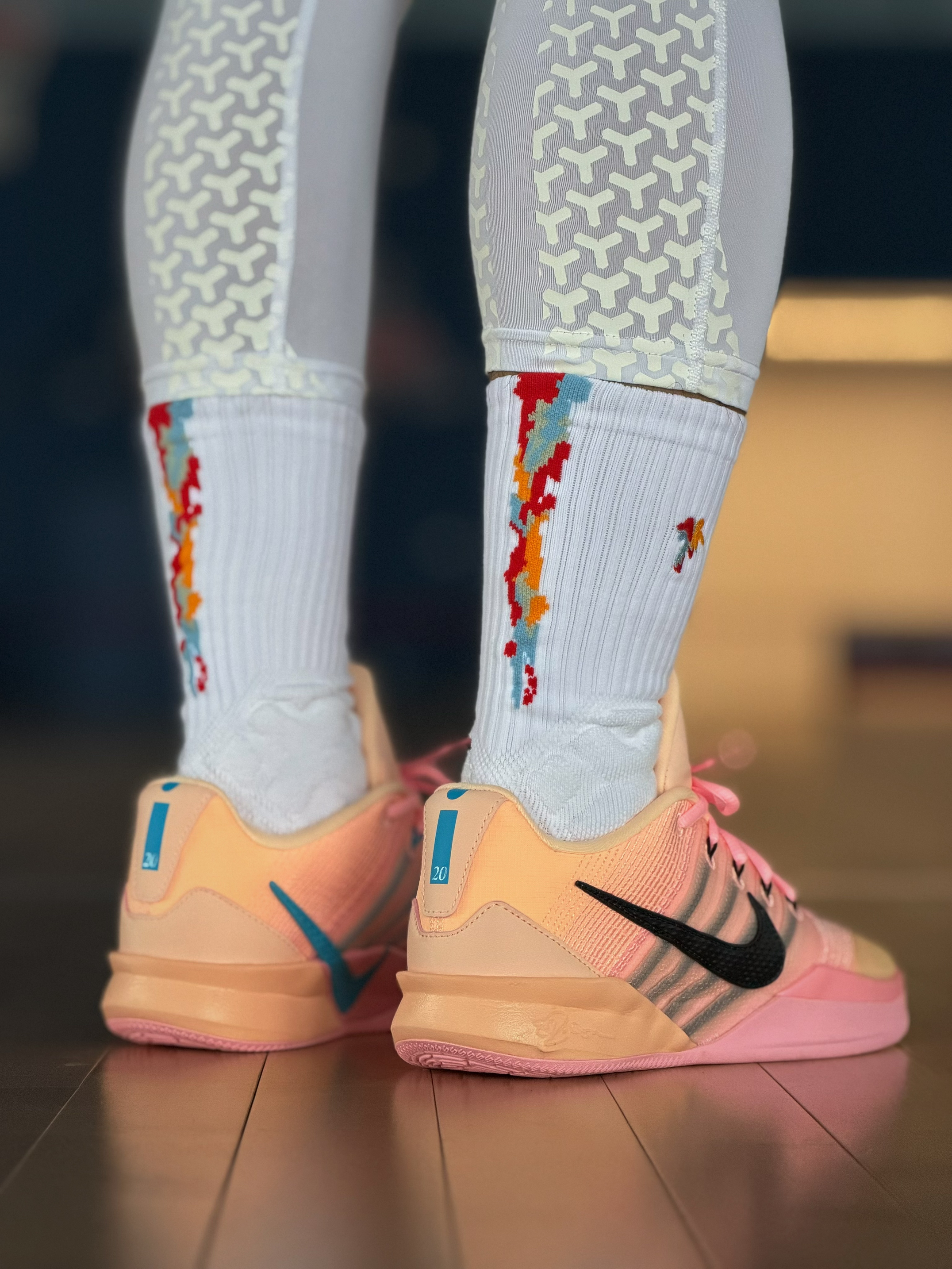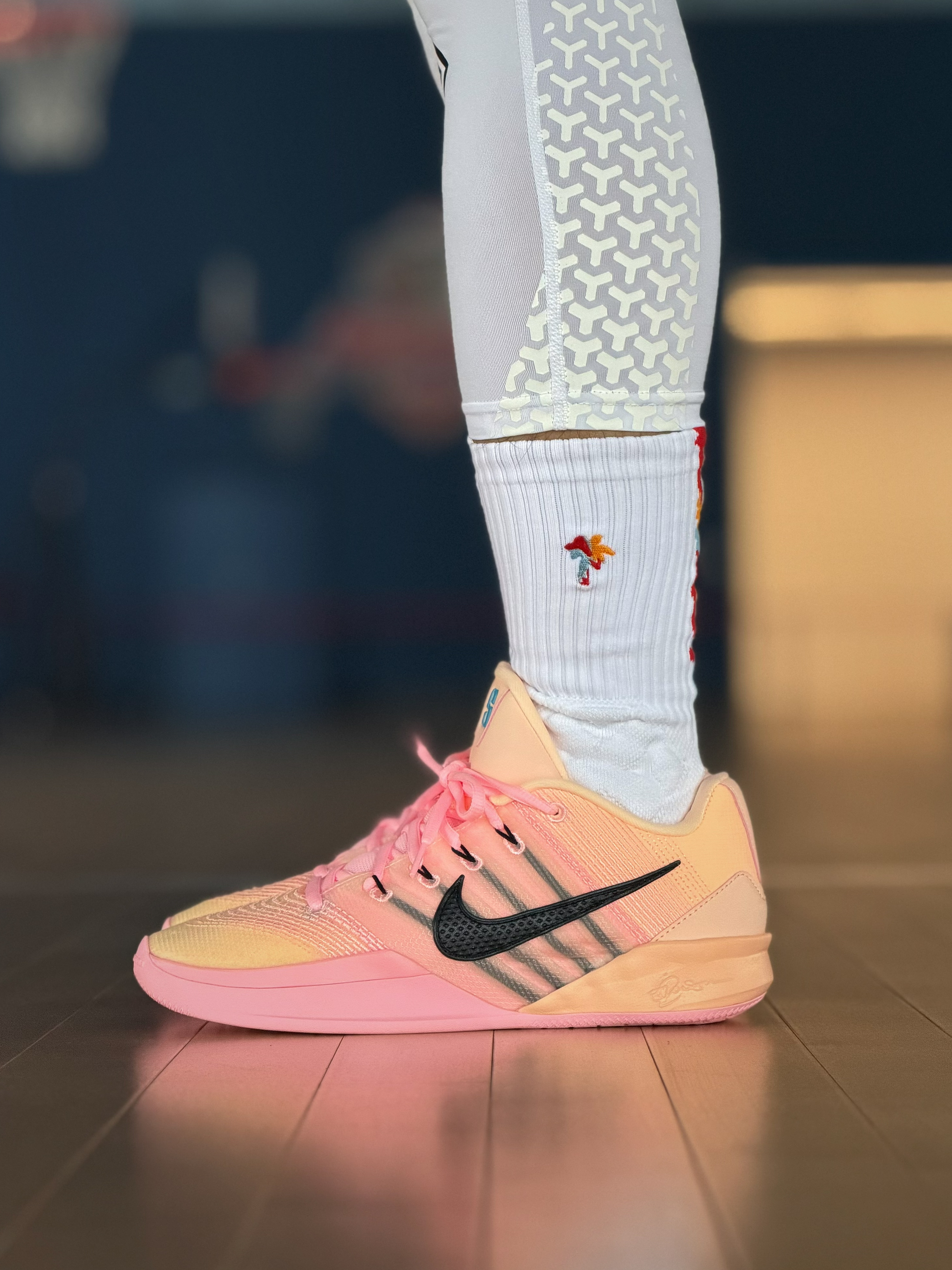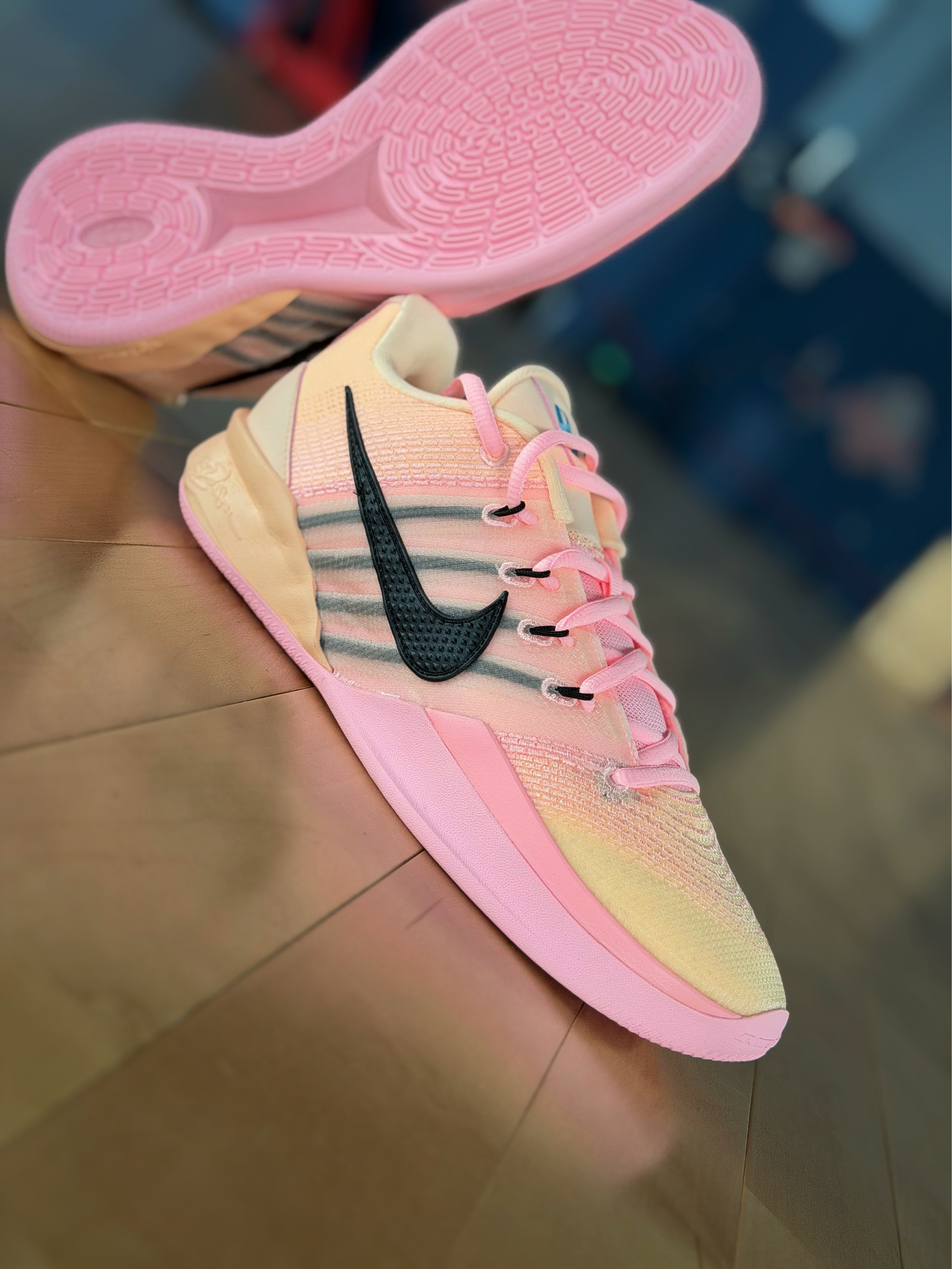 这双Sabrina3篮球鞋,粉色配色,颜值确实好看的!鞋面有动态飞线,实战的时候,变向或者突破,鞋面很稳定,没有产生大的形变! 前掌气垫响应干脆,起跳落地不震脚 橡胶外底,纹路清晰,耐磨和防滑效果不错!