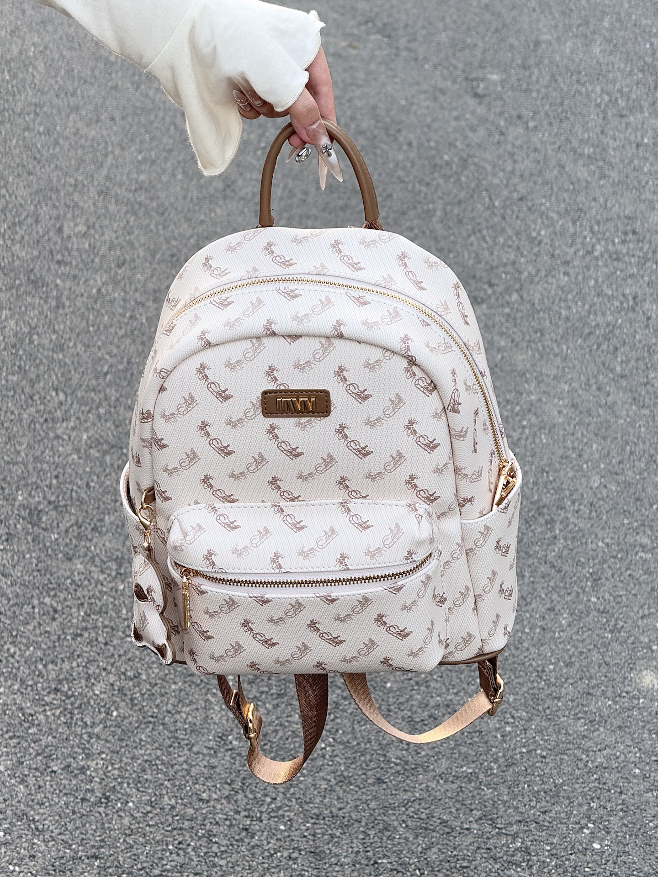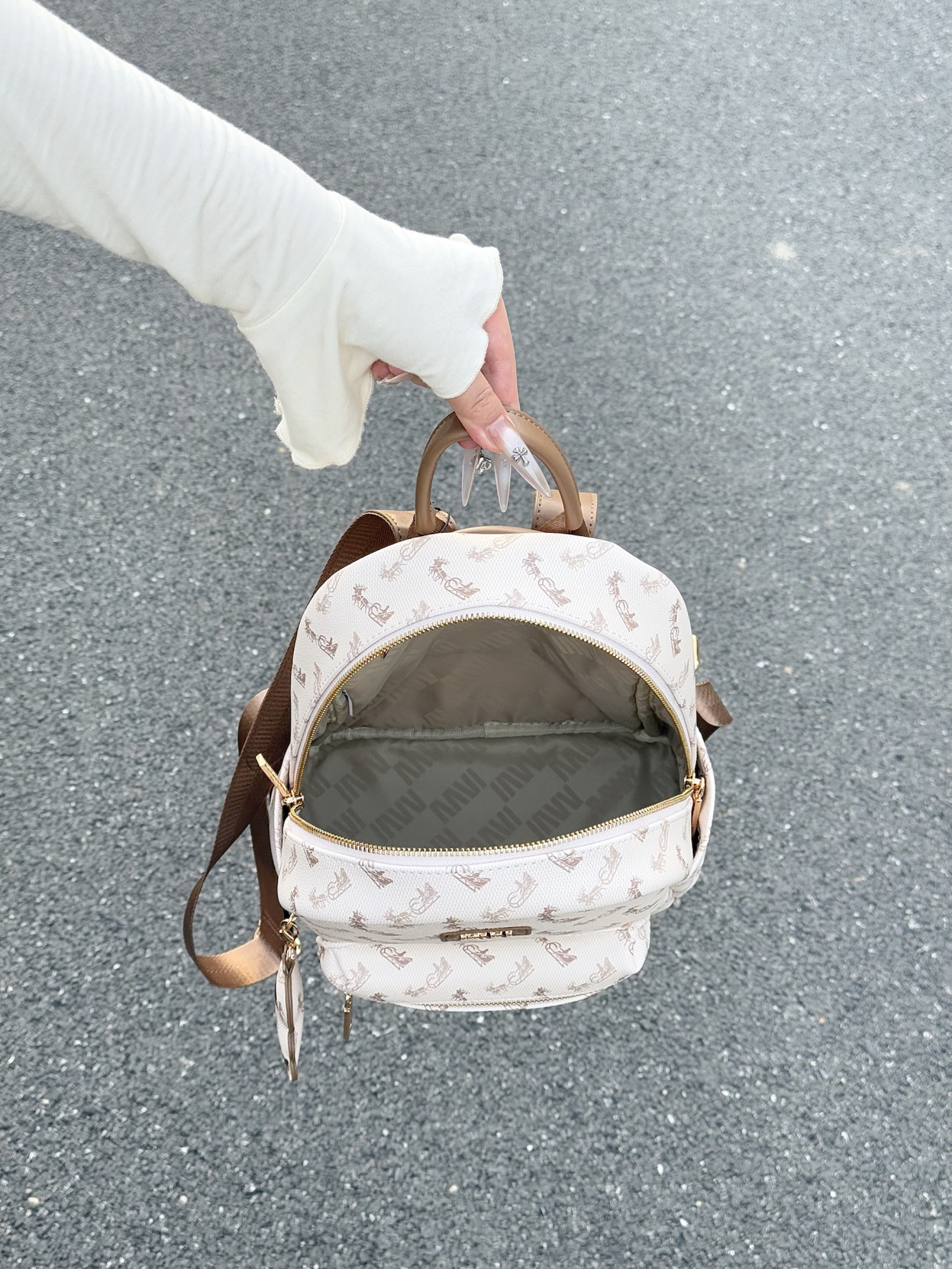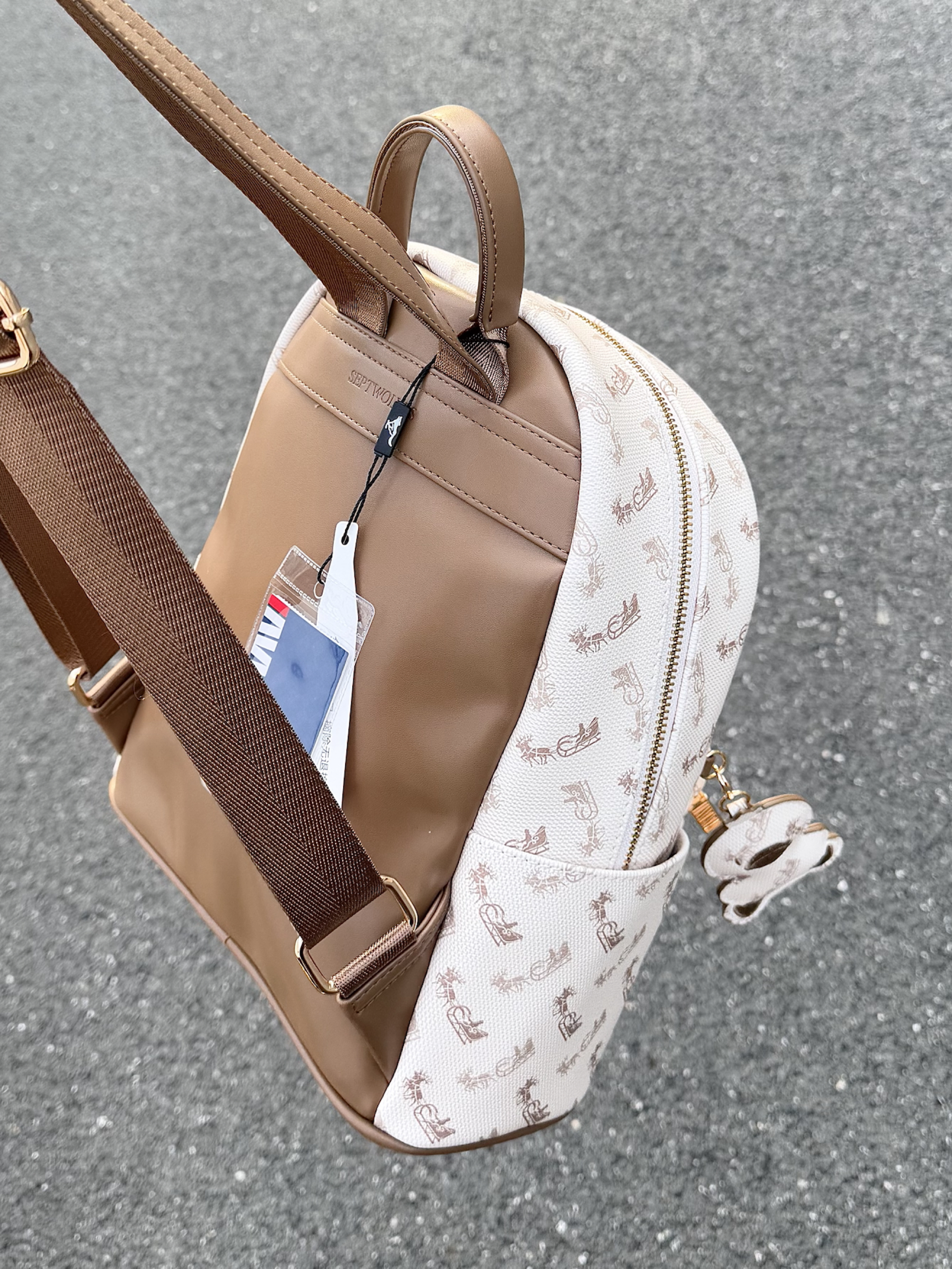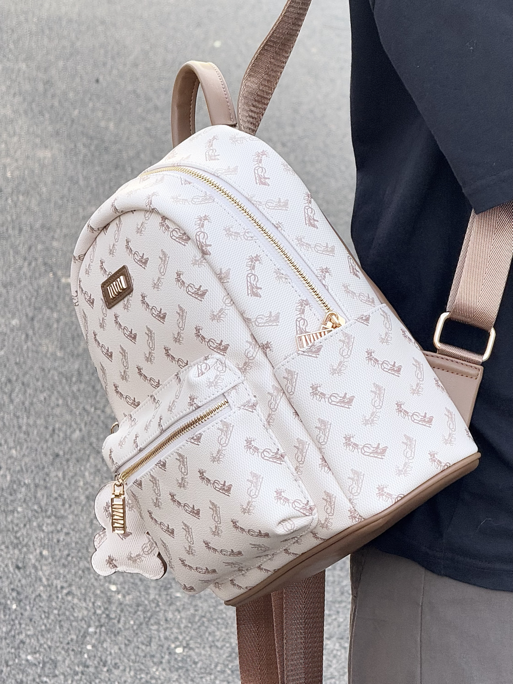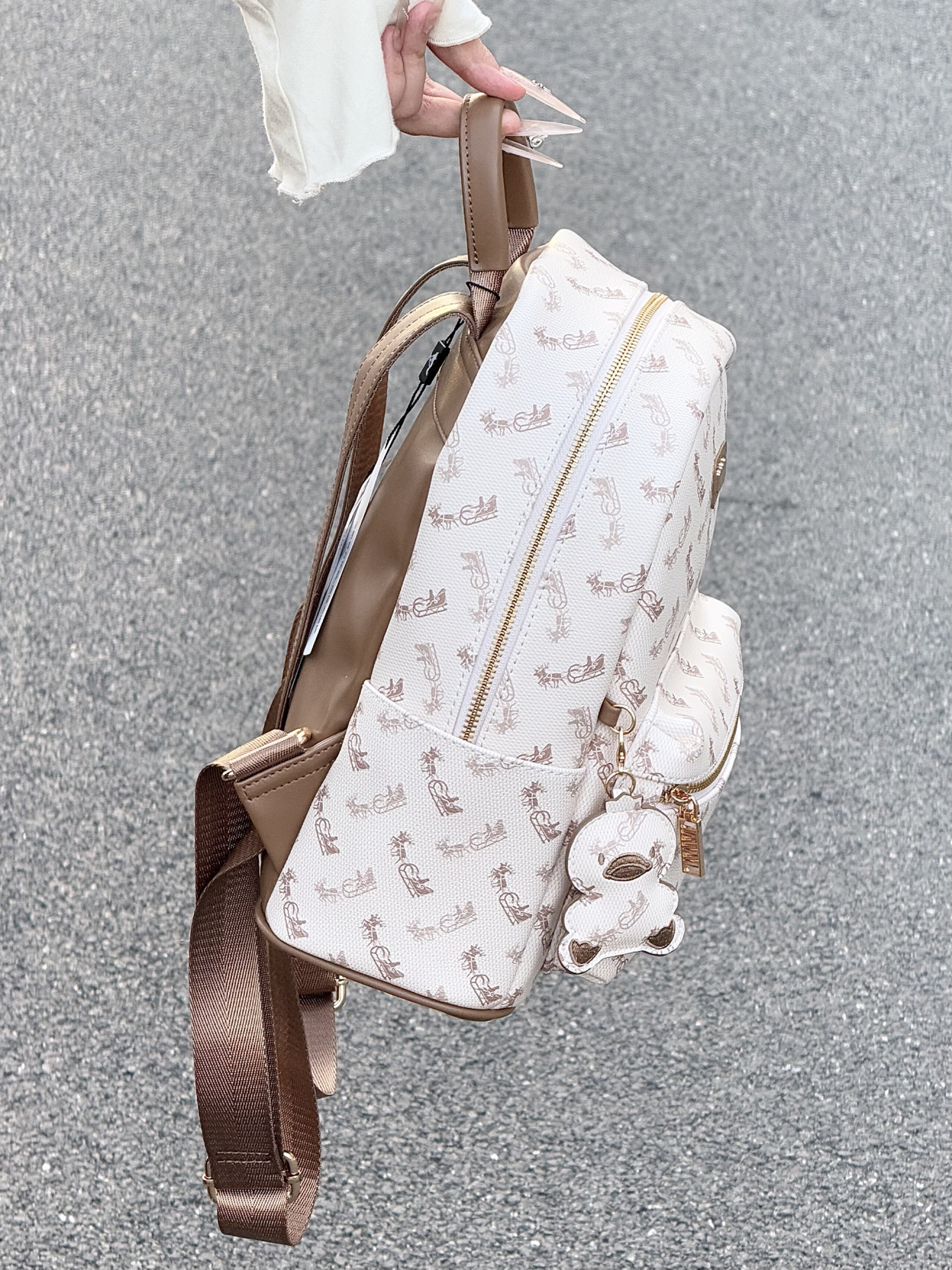 介个美拉德配色的双肩包我可太爱了 包身的皮质也是质感满满 满印的图案也很高级 我觉得通勤或者约会背都好百搭!