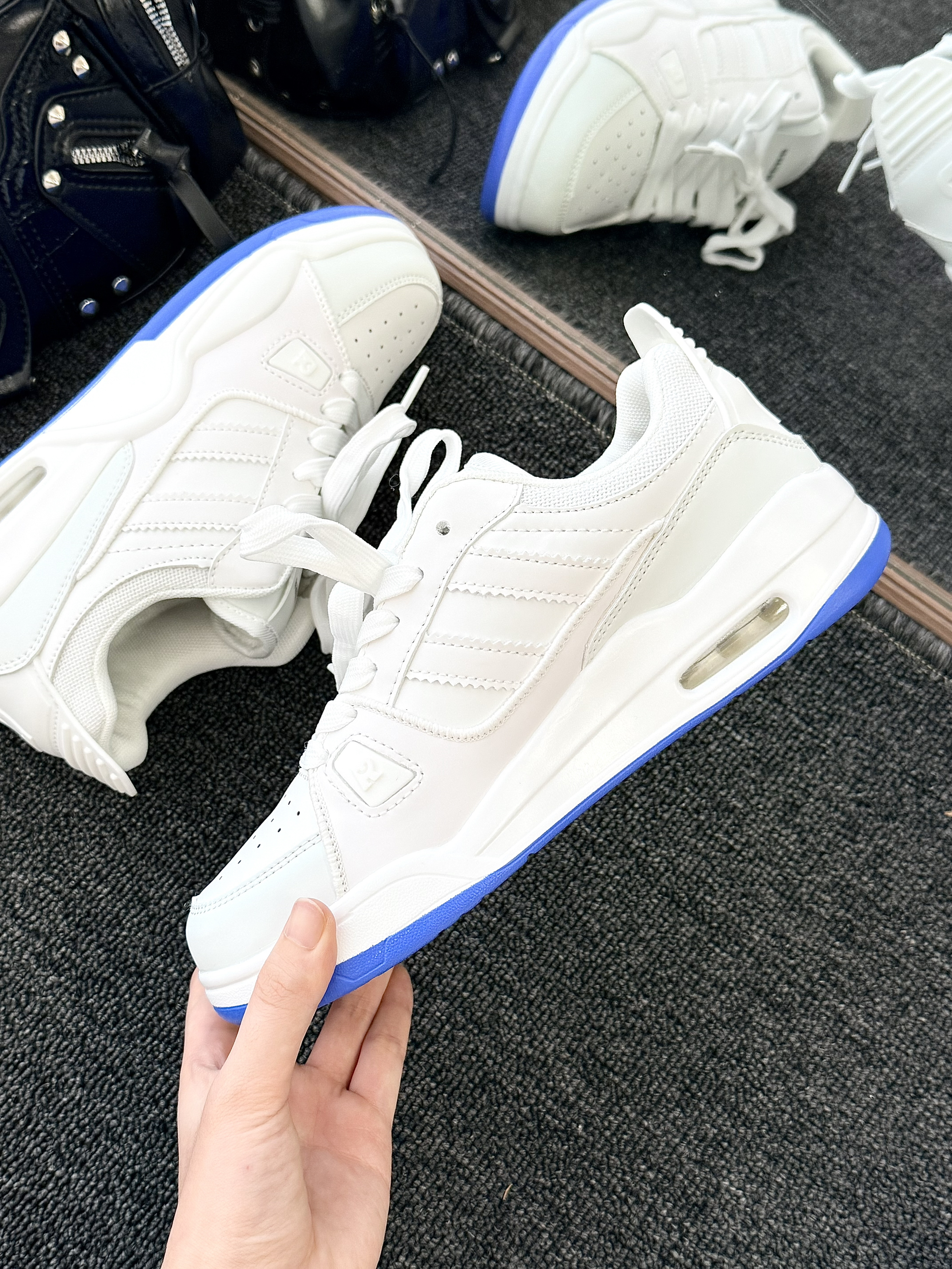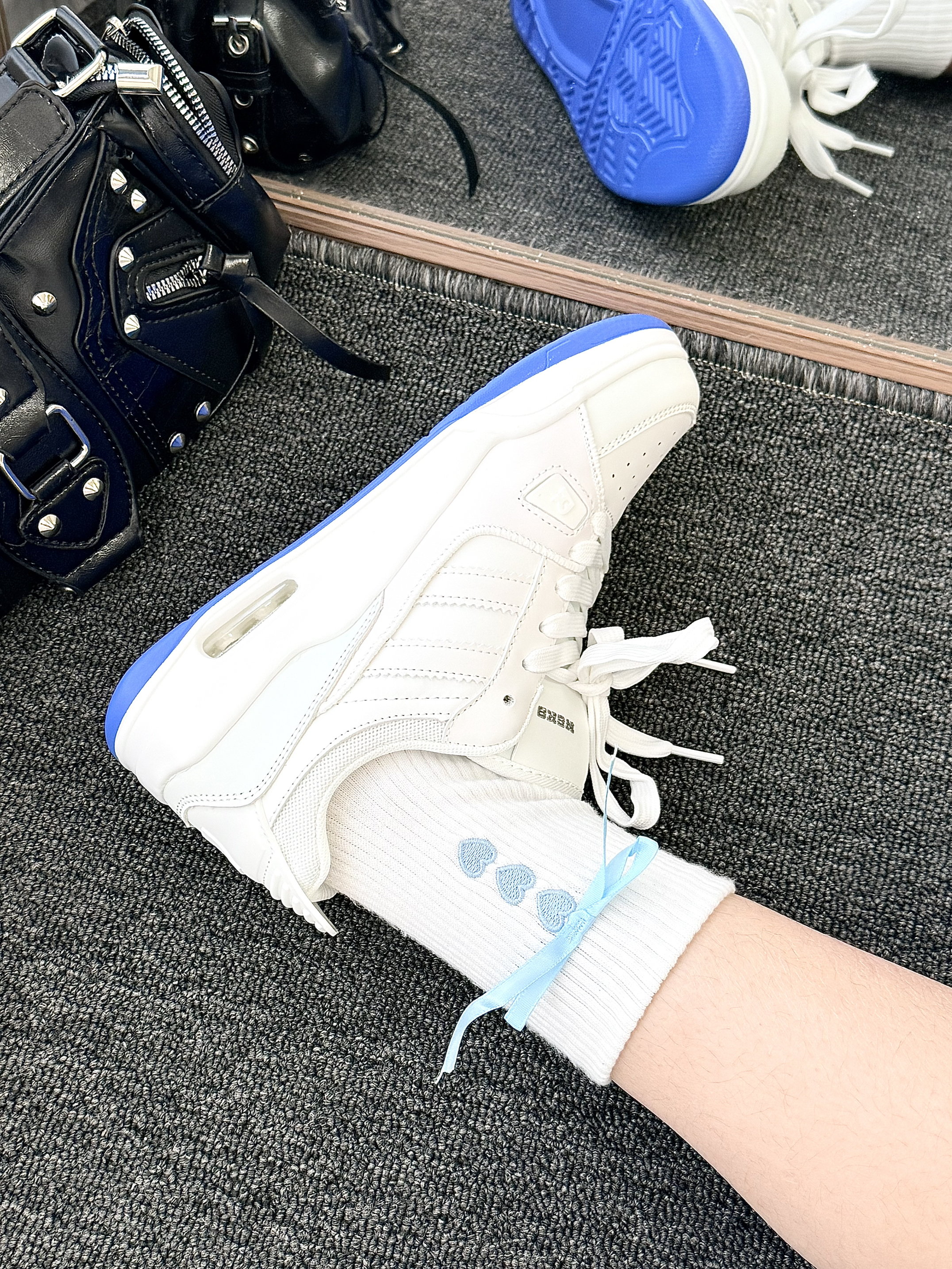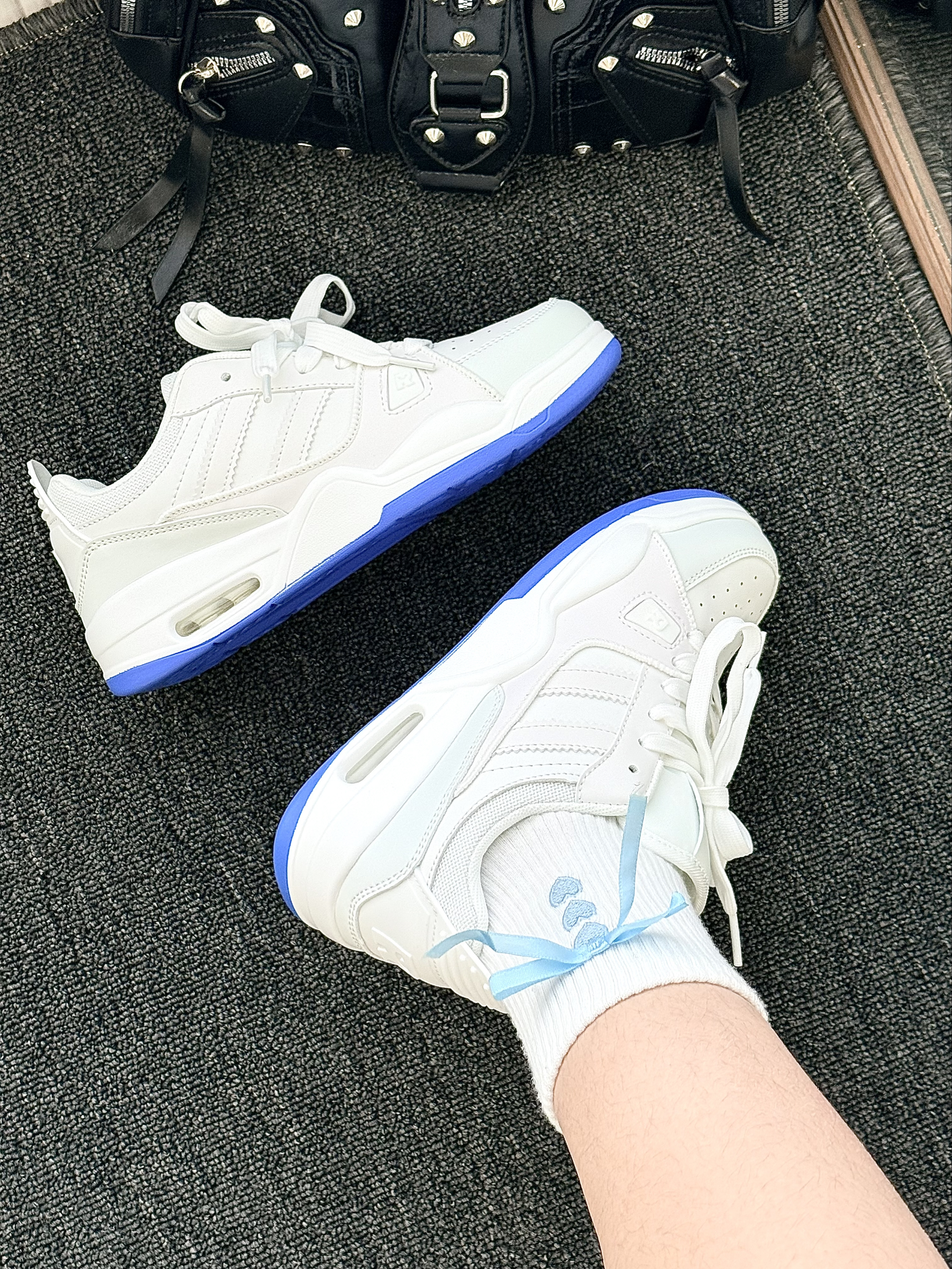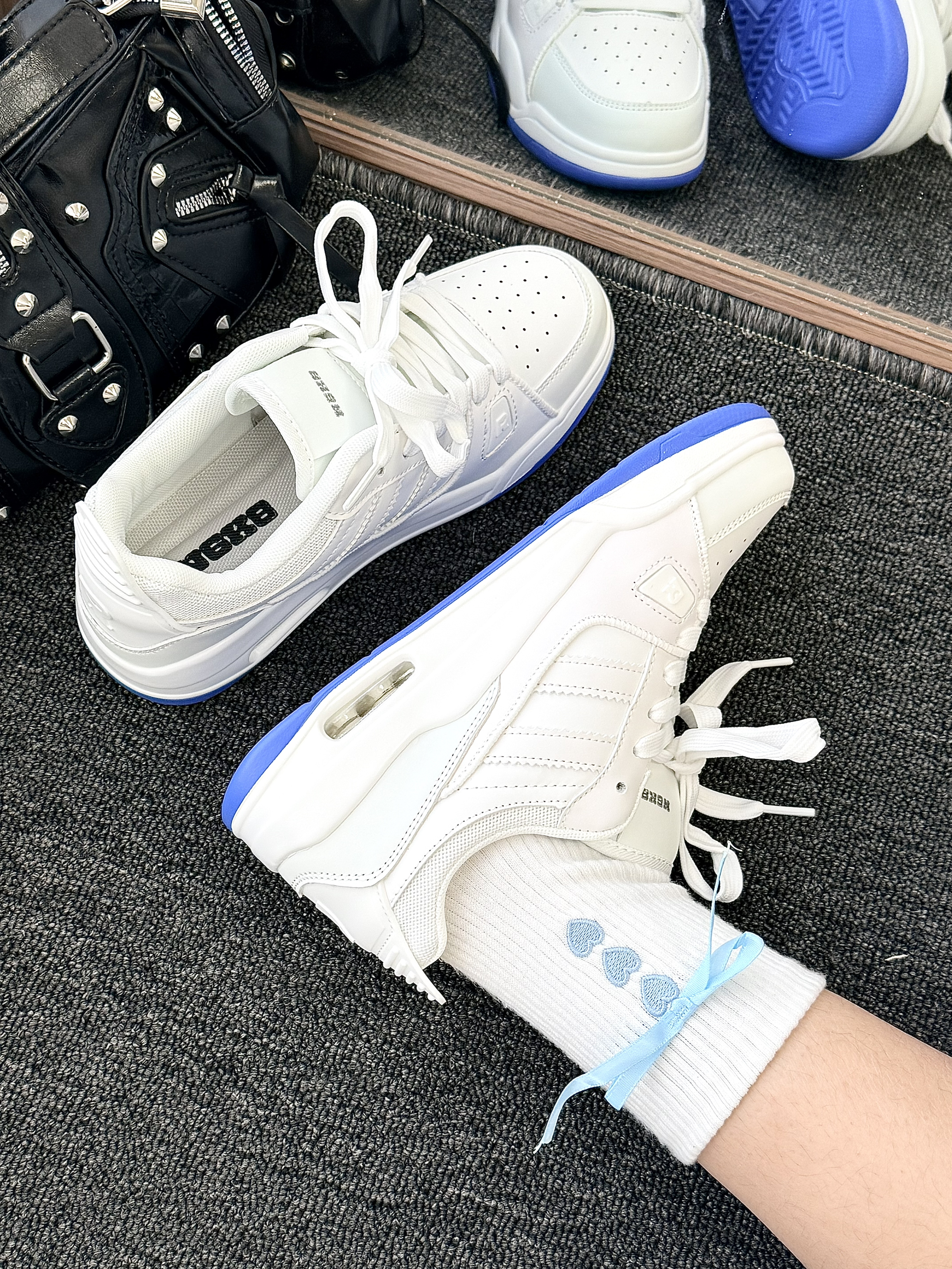这双白蓝撞色老爹鞋美到我心坎~ 宝蓝色鞋底撞色超亮眼 比一般的小白鞋更加的有设计感 瞬间打破单调~显得青春又靓丽 鞋型带点老爹鞋的厚底设计 悄悄增高还显腿细hhhha 脚感也很软 走路久了也不累 搭配运动裤、百褶裙都合适 我搭了带蓝丝带的白袜子 和鞋底呼应超有细节感